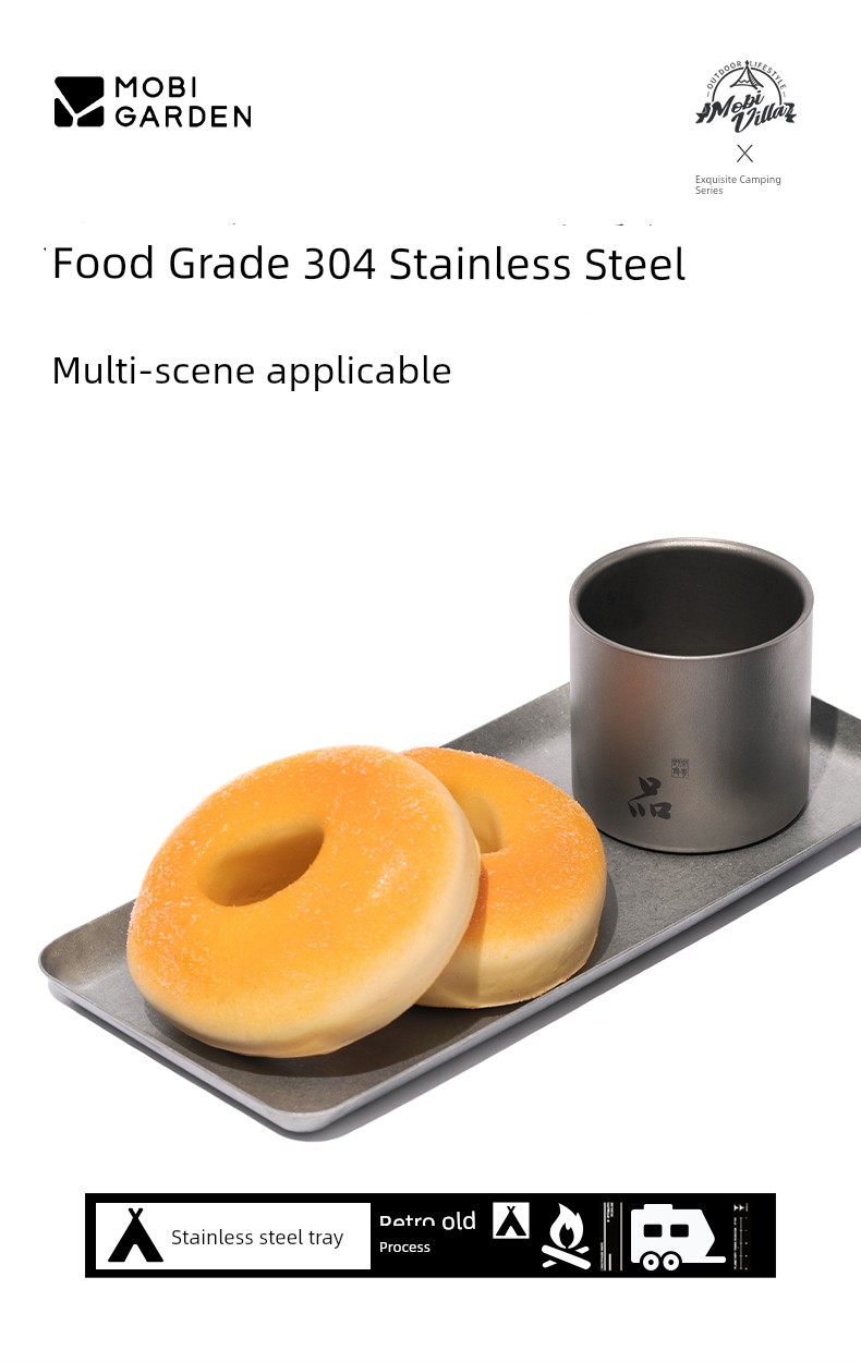 Mobi Garden Exquisite Camping 304 Stainless Steel Tray Multi-Purpose Rectangular Storage Tray Picnic Household Plate Sy
