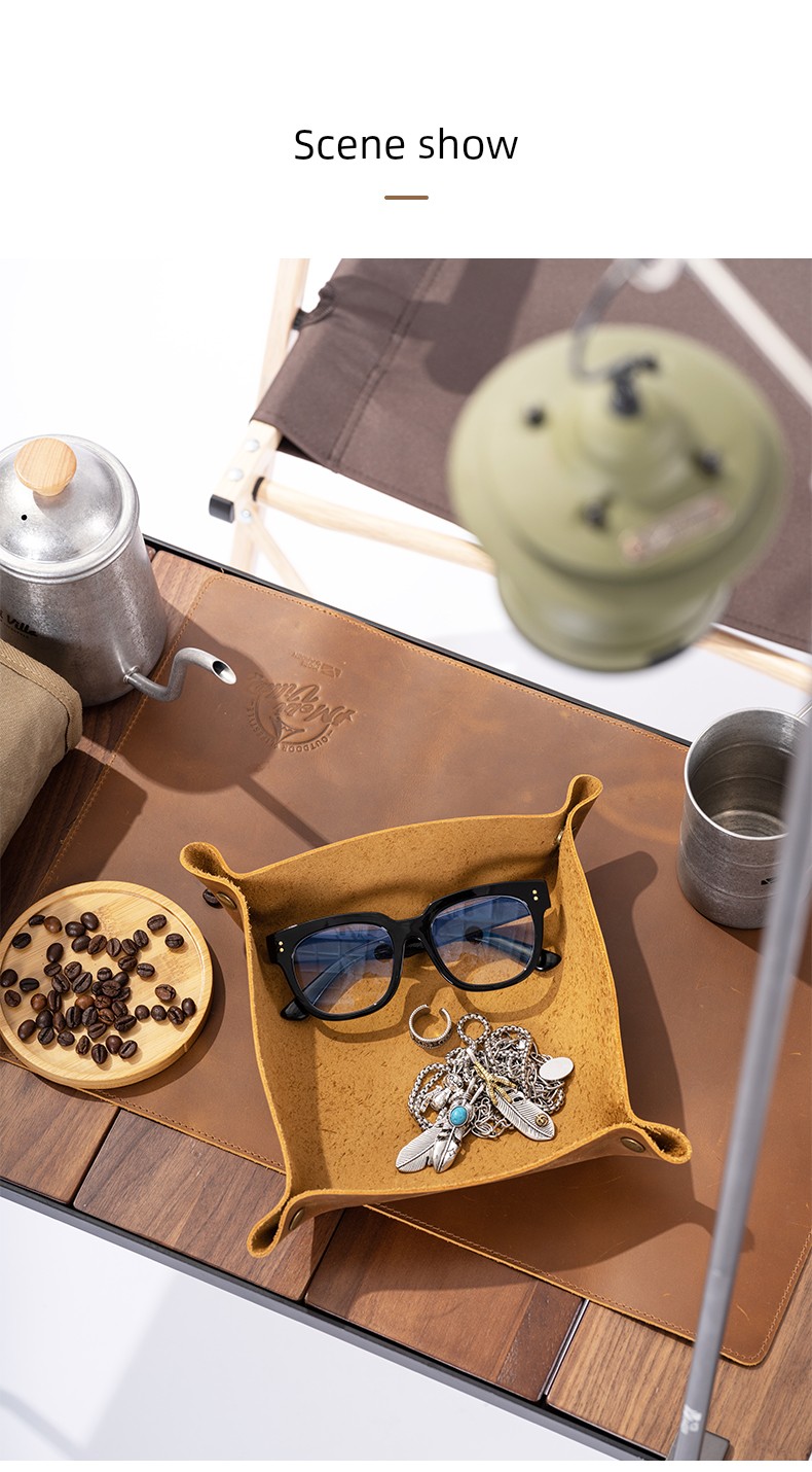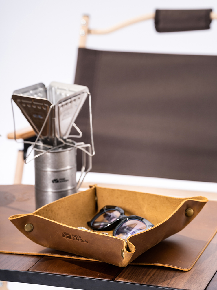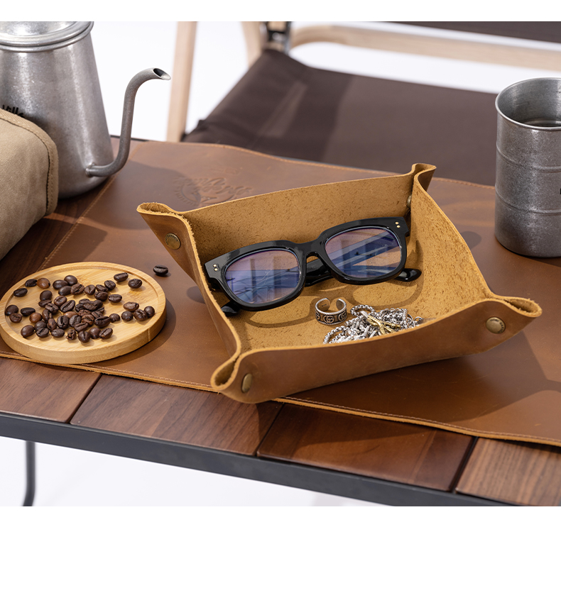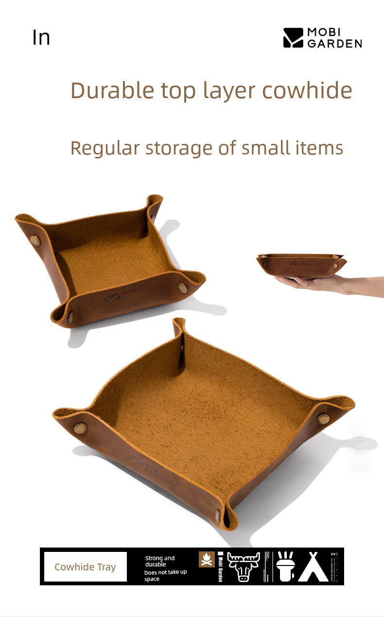 Mobi Garden Exquisite Camping Cowhide Tray Camping Picnic For Home Daily Necessities Storage Box Desktop Sundries Organizer