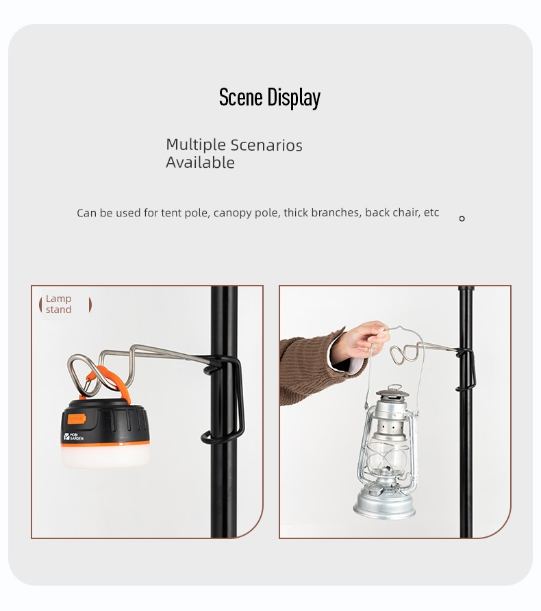 Mobi Garden Exquisite Camping Stainless Steel Lamp Holder Outdoor Camping Light Multi-Function Lamp Holder Shelf Hanging Rack