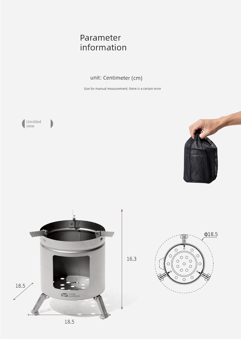 Mobi Garden Firewood Stove Mini Lightweight Pure Titanium Camping