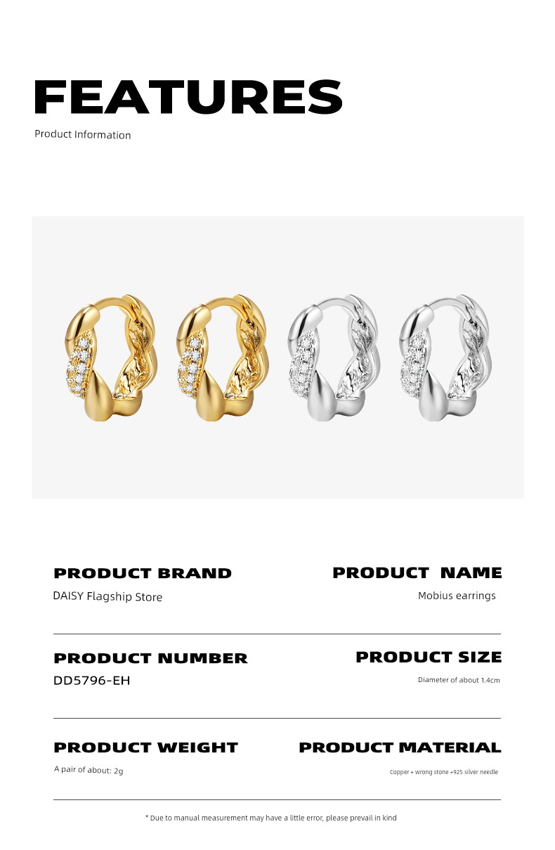 Mobius French Style Women's Niche Style Classy 925 Silver Needle