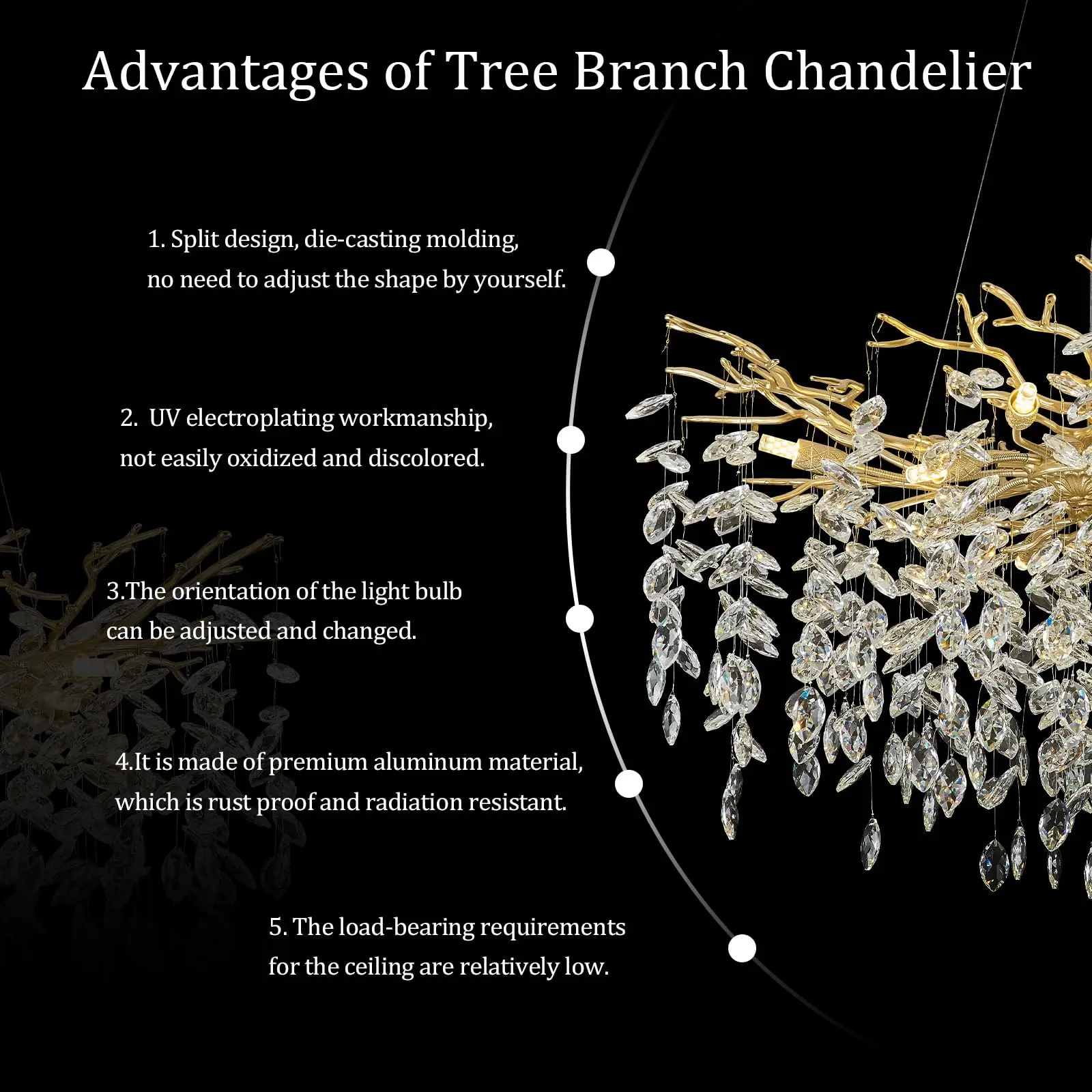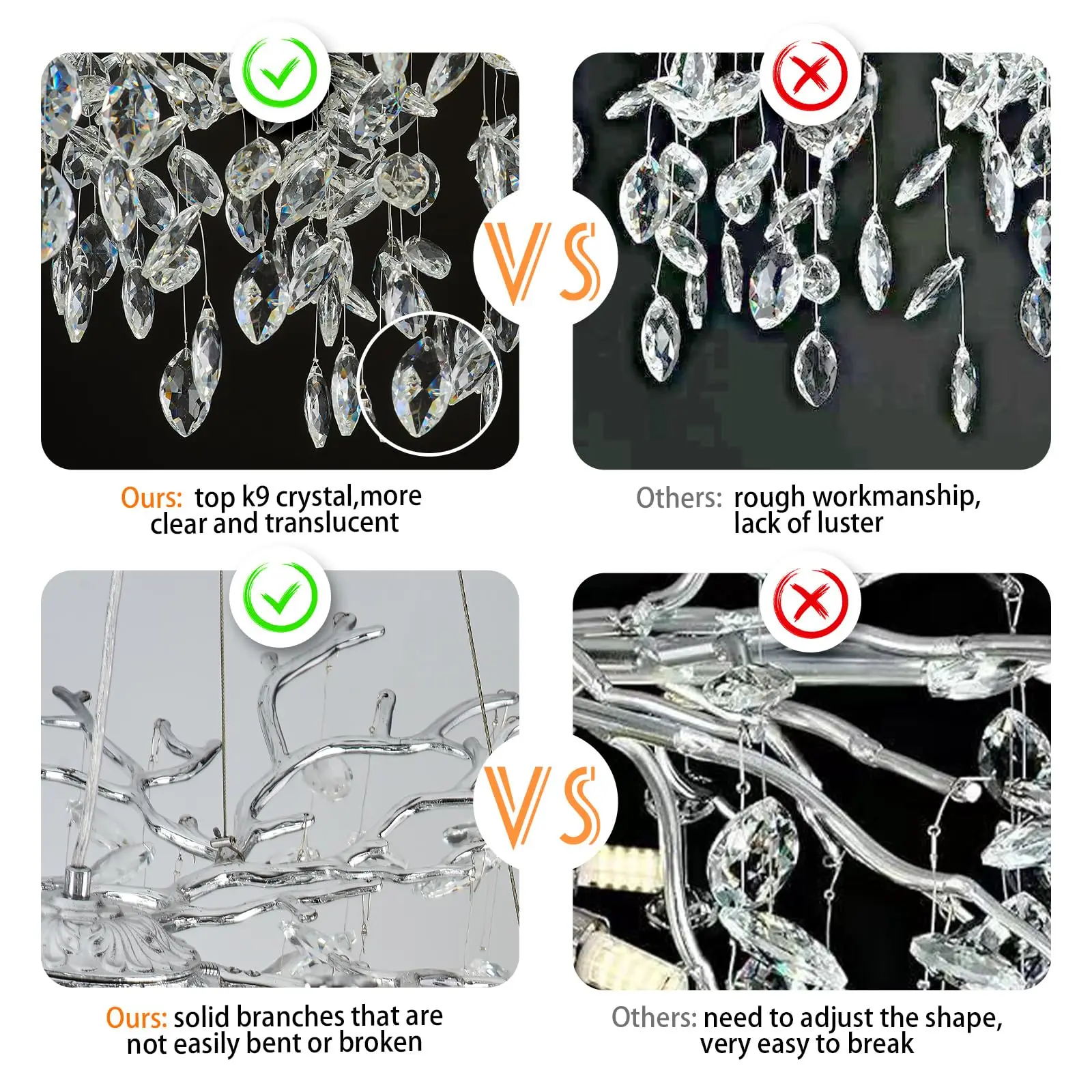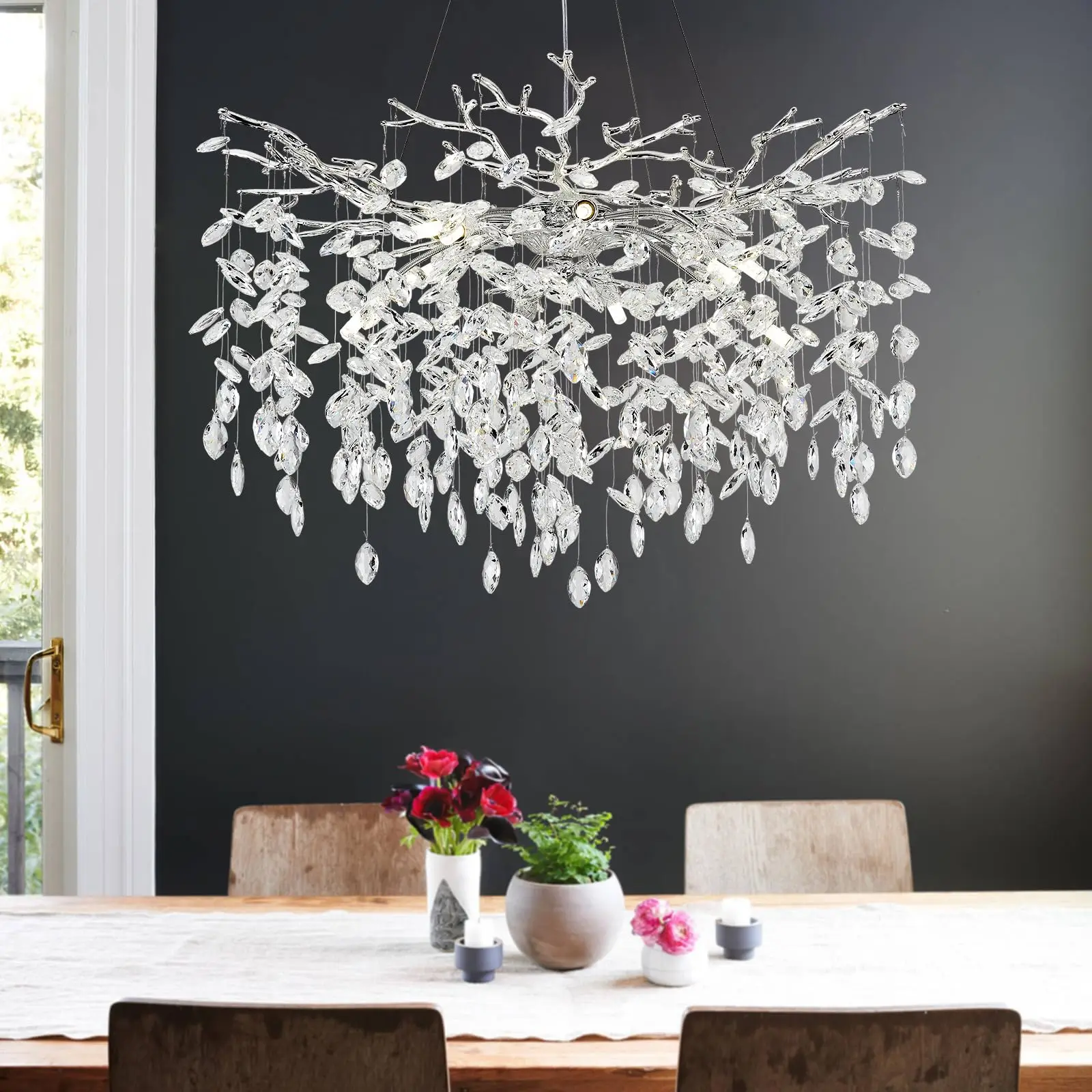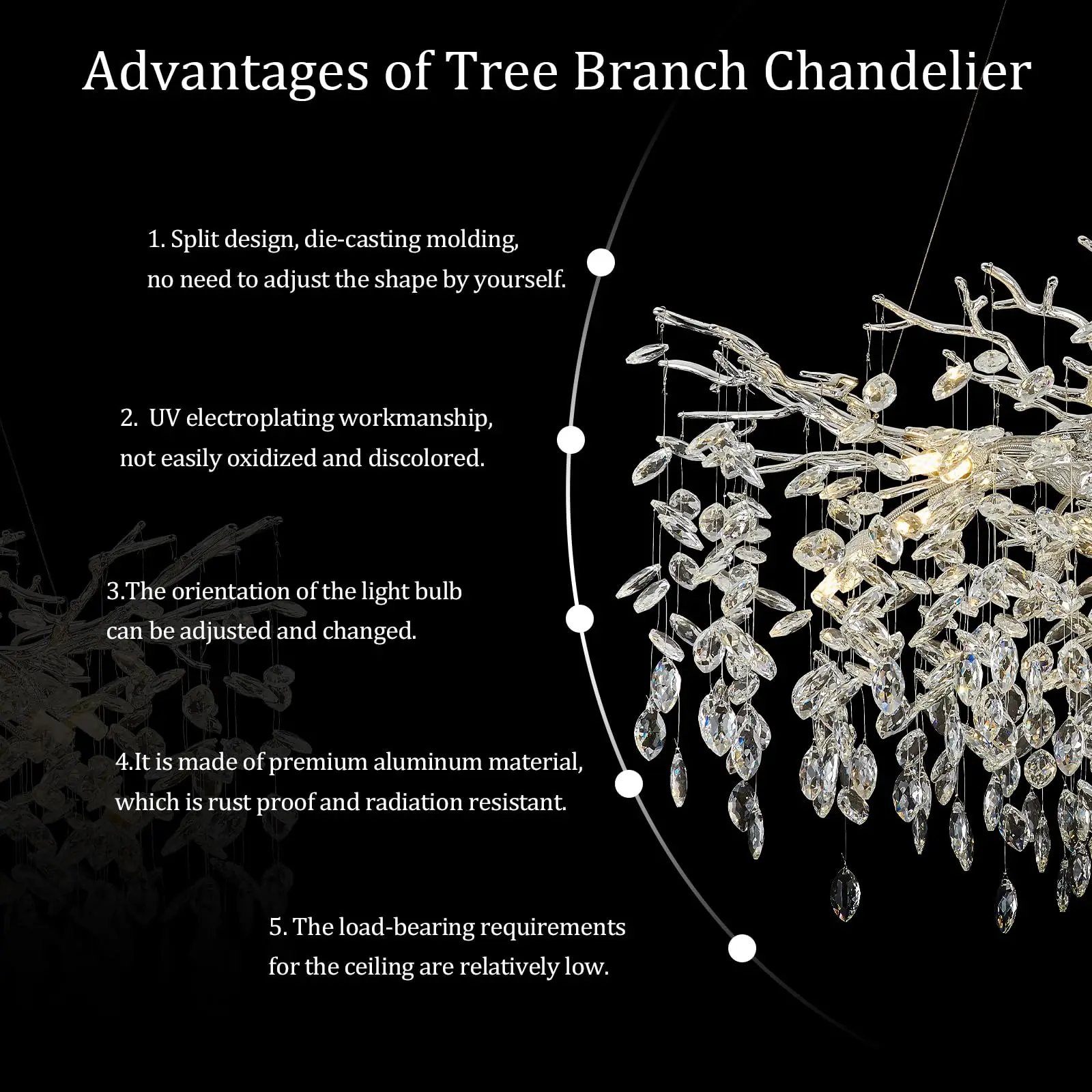 Modern Crystal Chandeliers Tree Branch Chandelier Round Raindrop Chandeliers for Dining Room, Living Room Bedroom Foyer Entryway