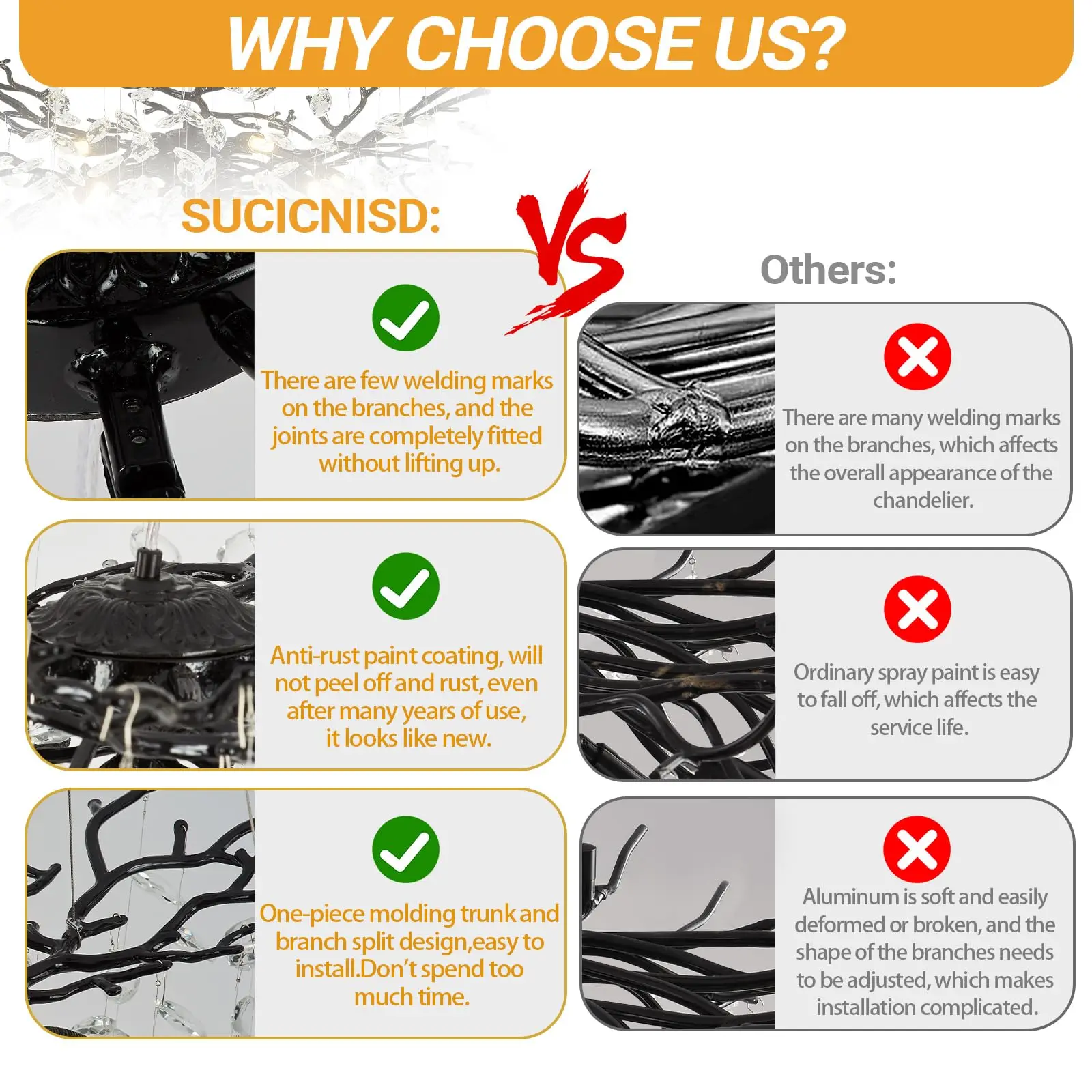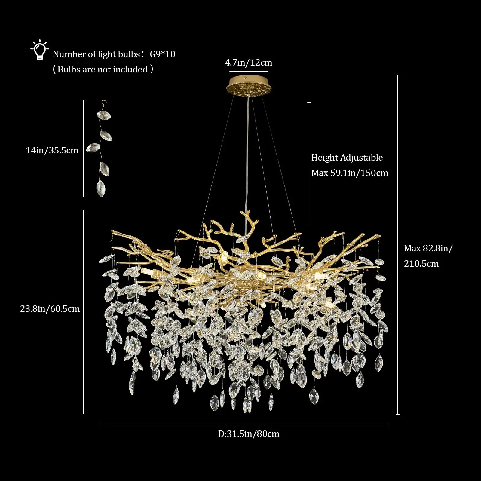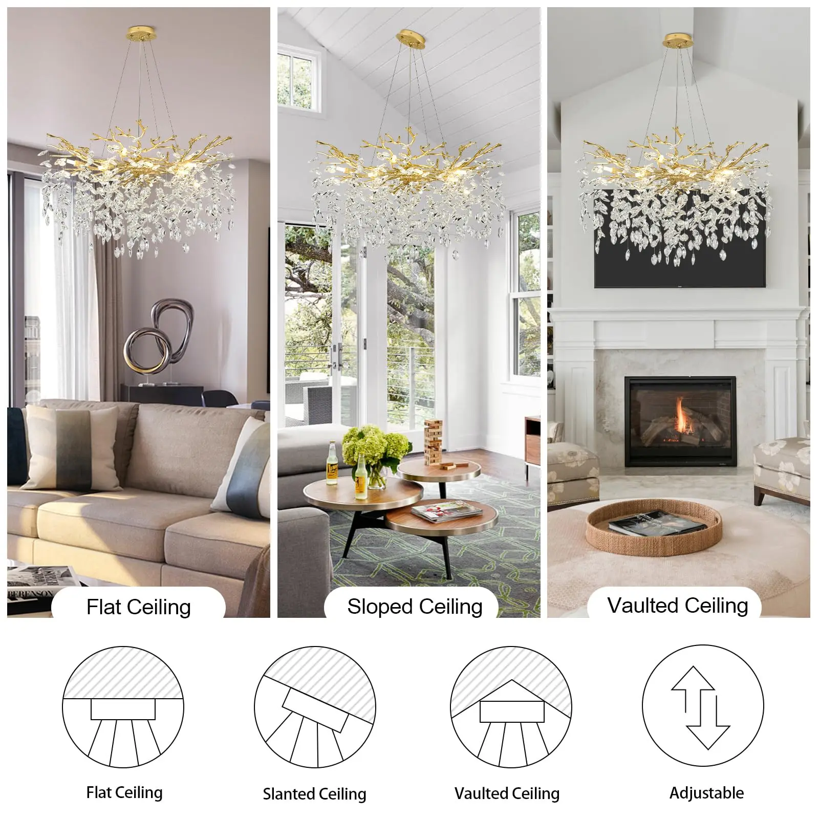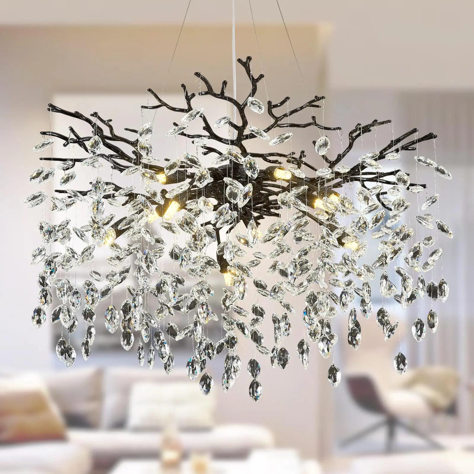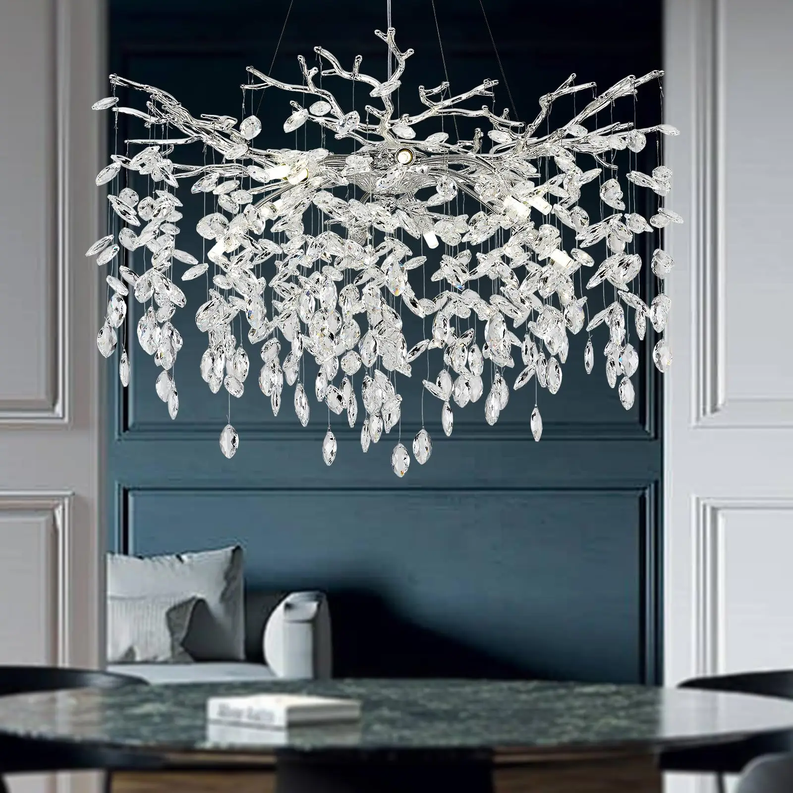 Modern Crystal Chandeliers Tree Branch Chandelier Round Raindrop Chandeliers for Dining Room, Living Room Bedroom Foyer Entryway