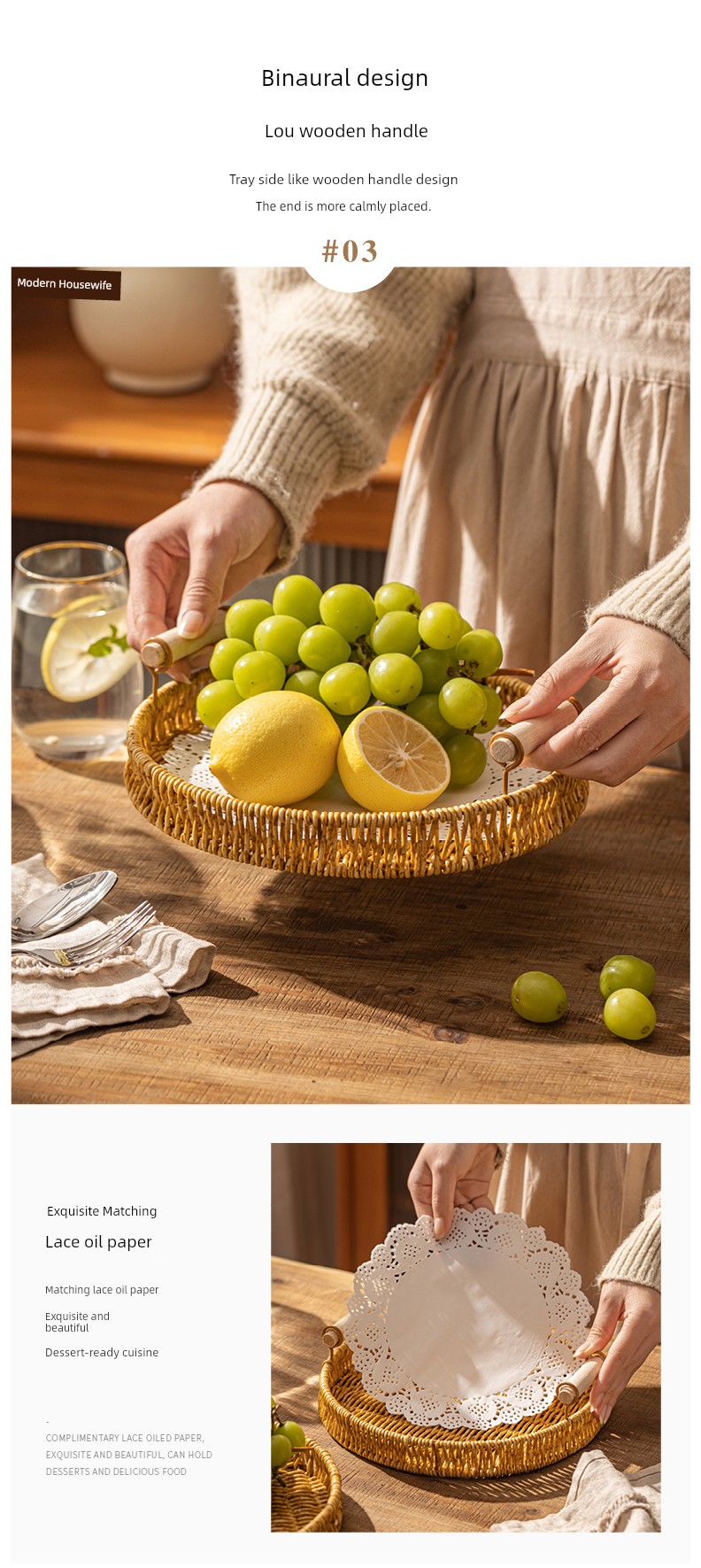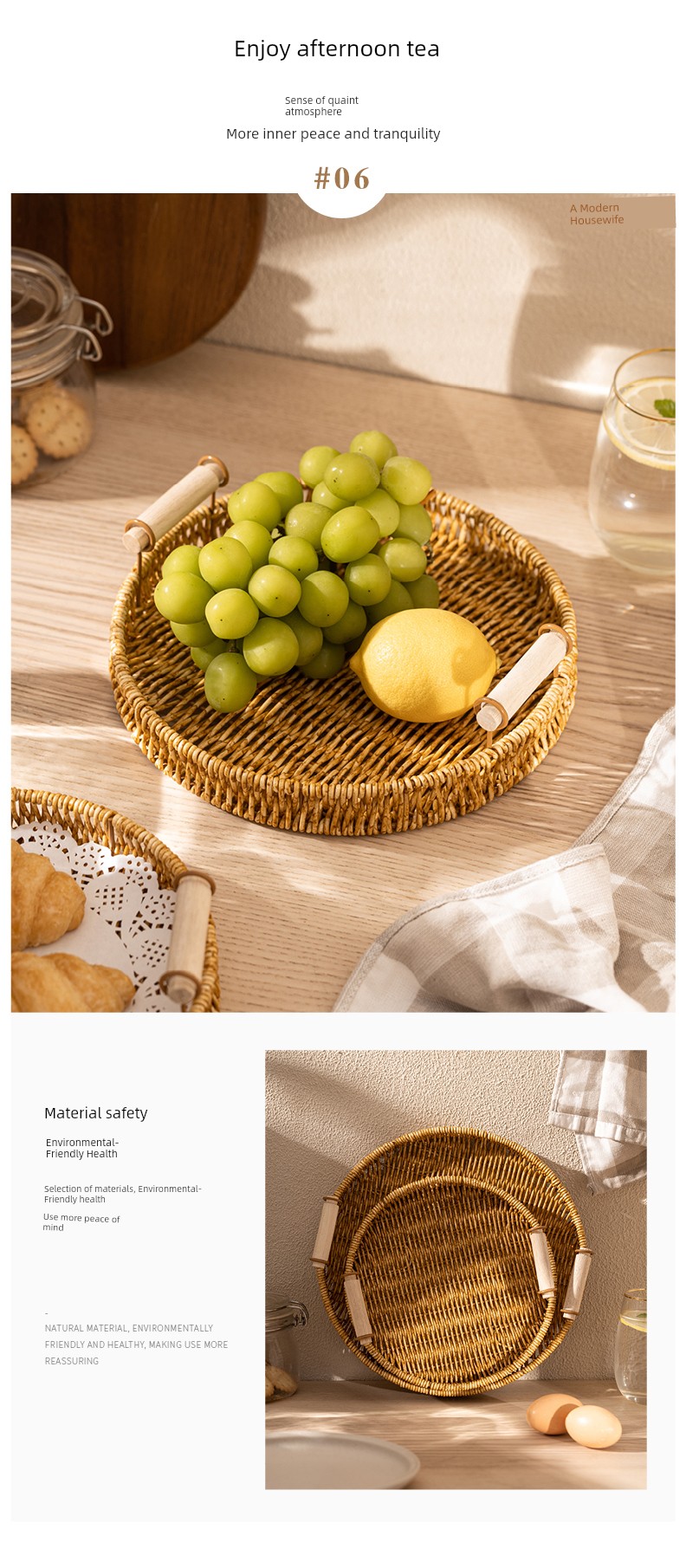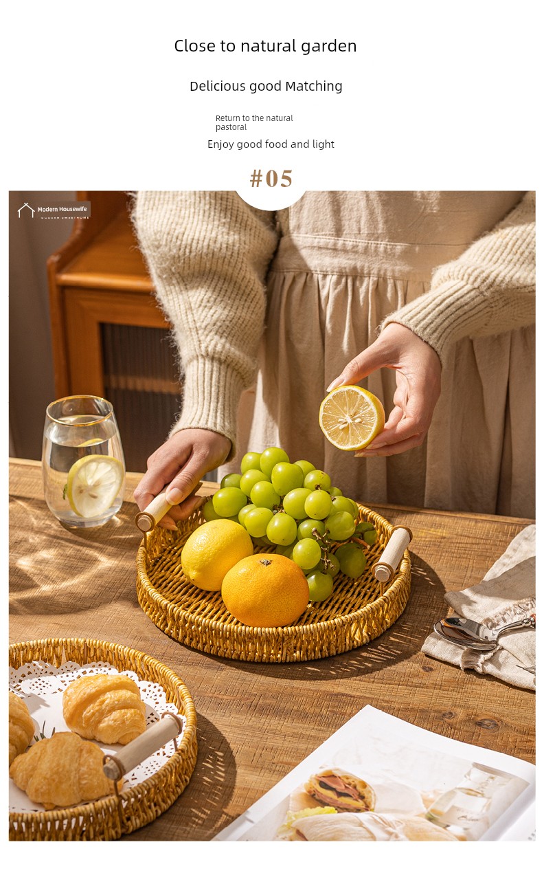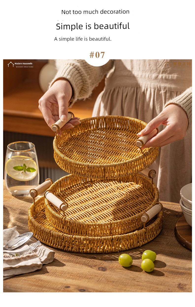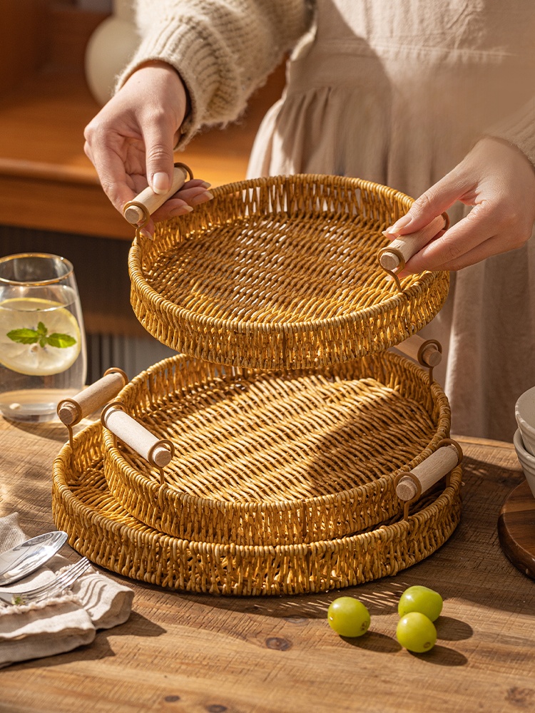 Modern Housewife Afternoon Tea Snack Decoration Plate Storage Imitation Rattan