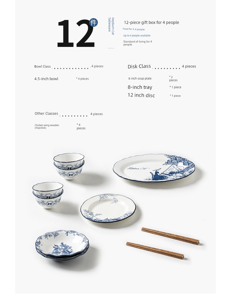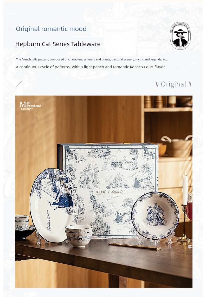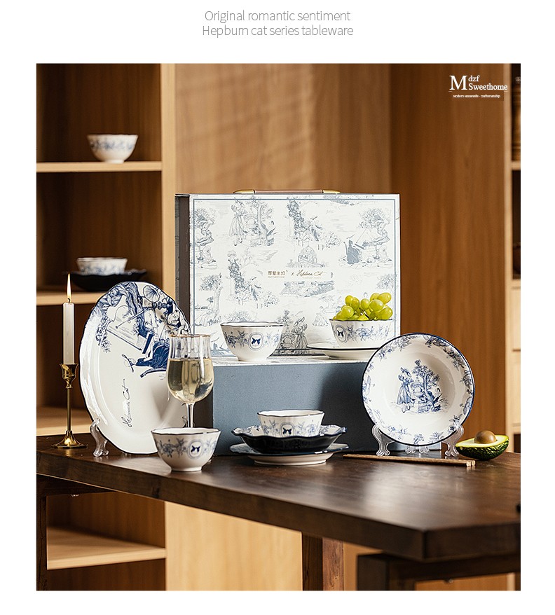 [Modern Housewife & Hepburn Cat Joint Name] Ceramic Cutlery Bowl Sets Plate Fancy Gift Box Housewarming Gift