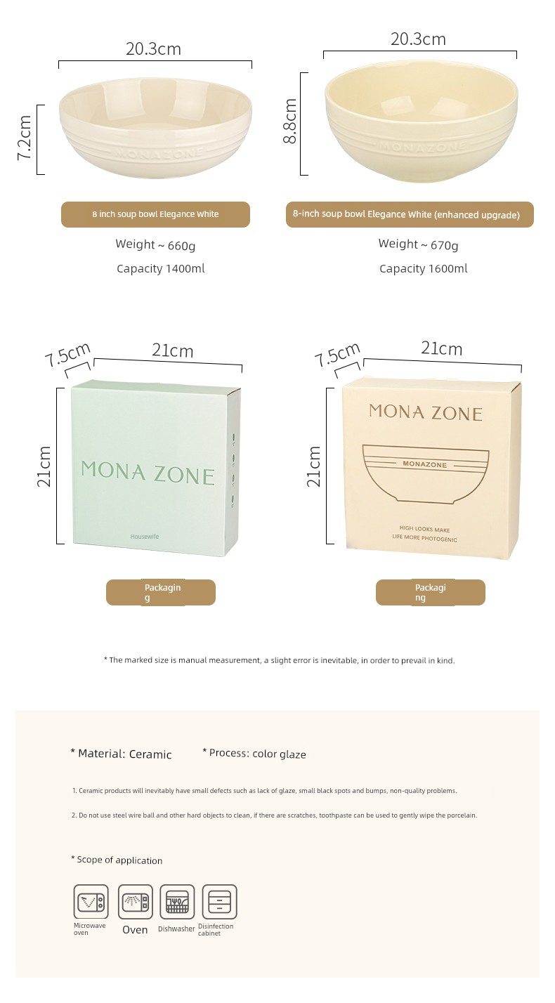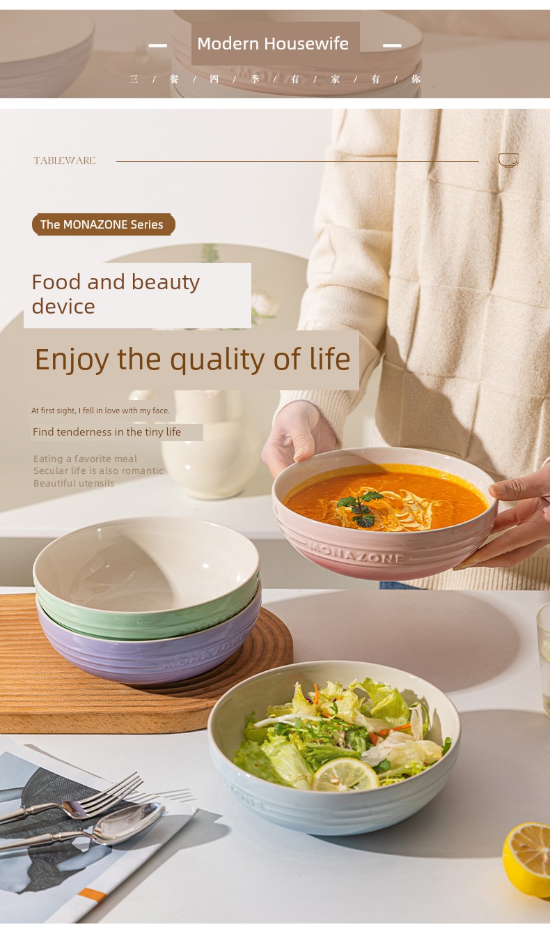 Modern Housewife Monazone Soup Bowl Large Size Good-looking Stoneware Tableware Large Noodle Bowl Home Instant Noodle Bowl Noodle Bowl