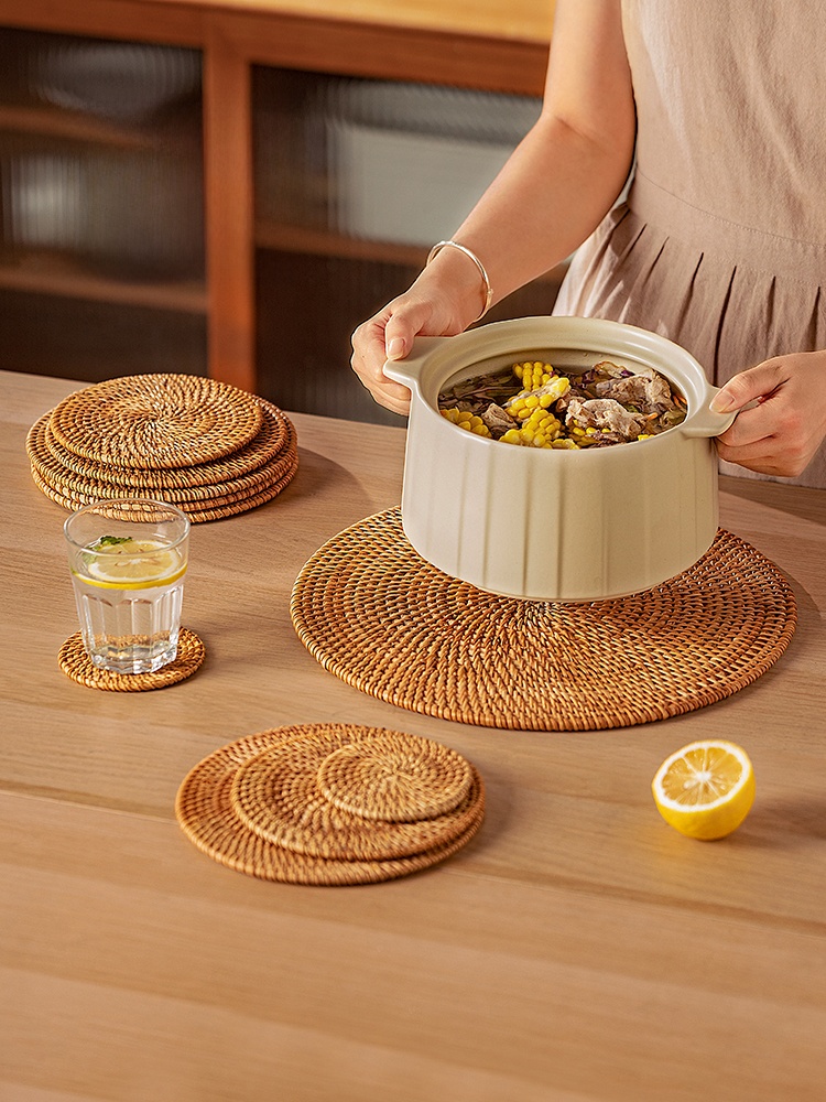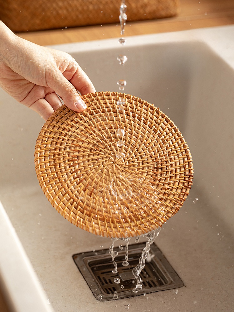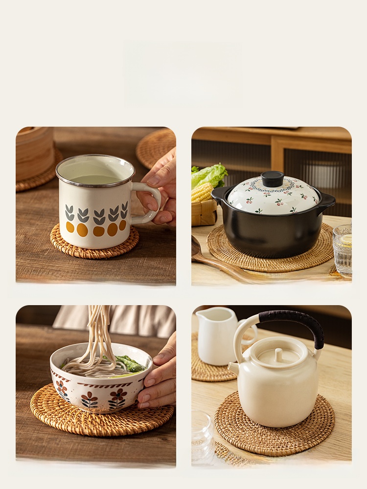 Modern Housewife Rattan Heat Proof Mat Table Mat Anti-Scald Pan Mat Teacup Mat For Home High Temperature Resistance Heat-Resistant Bowl Mat Plate Mat