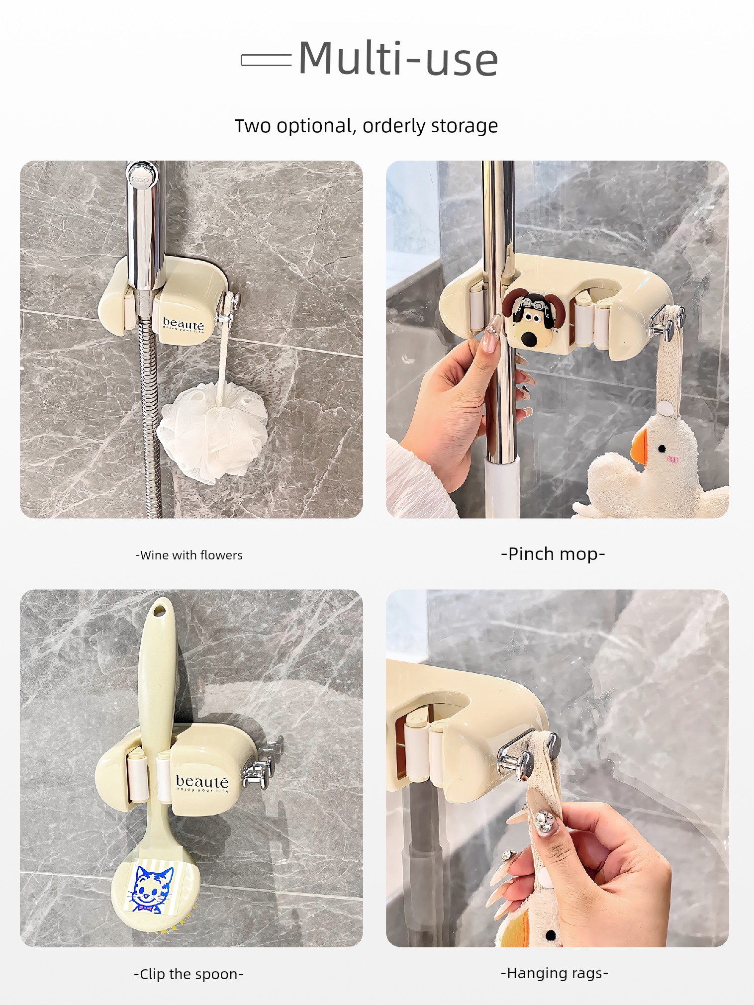 Mop Wall Hanging Clip Punch-Free Bathroom Bathroom Storage Mop Clip Toilet Mop Hook Holder Sticky Hook