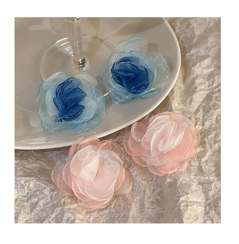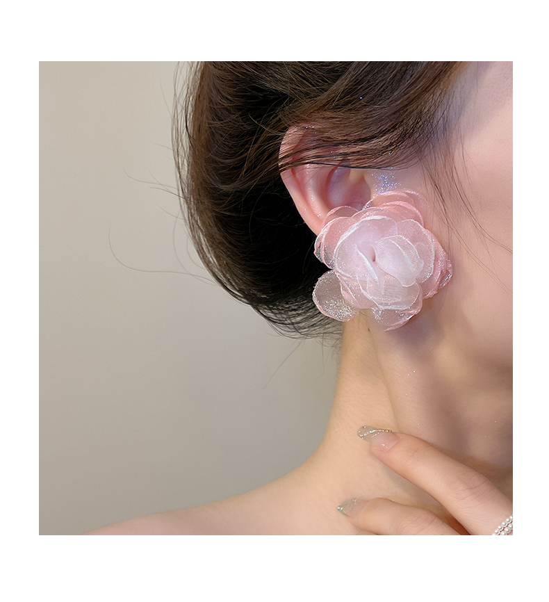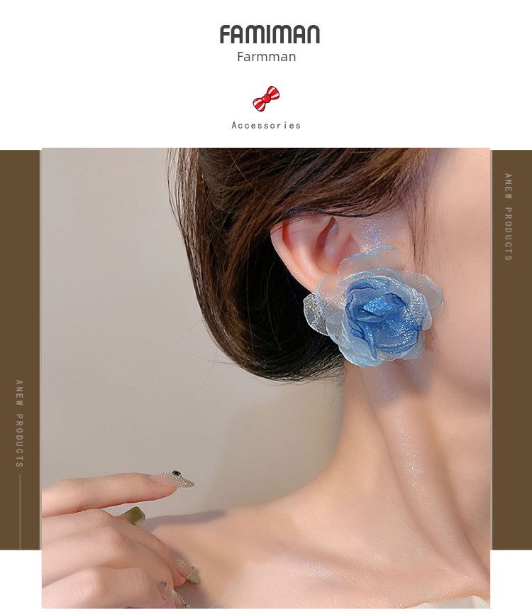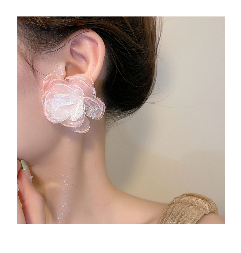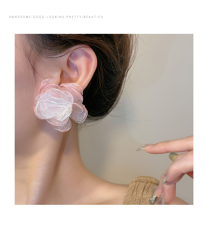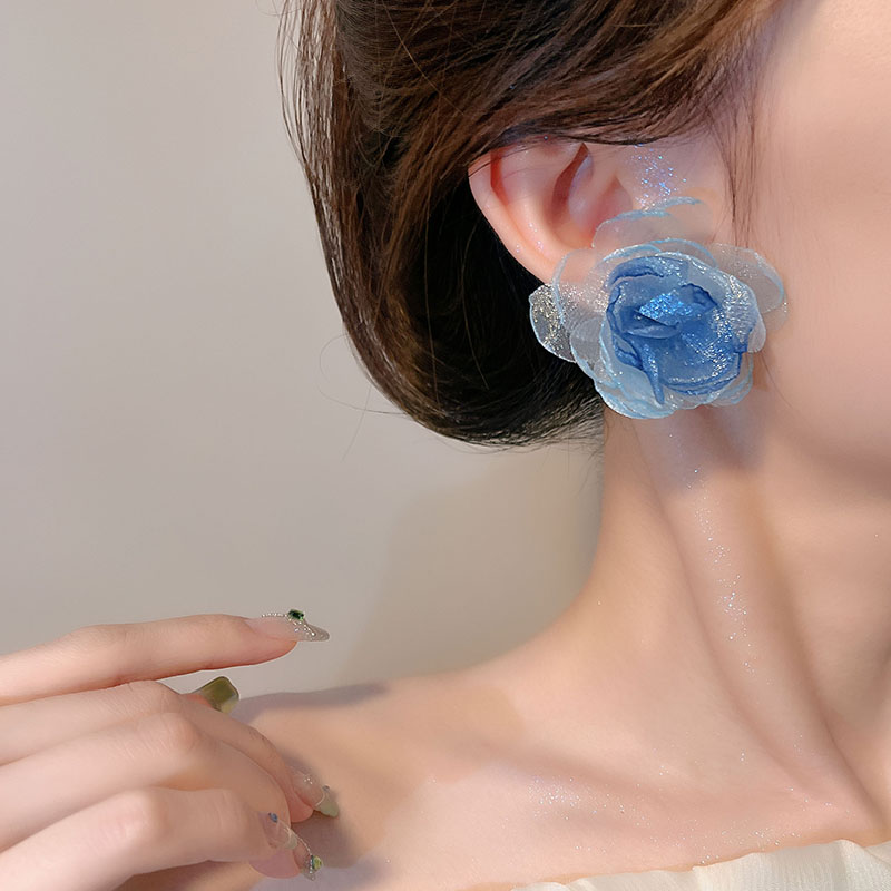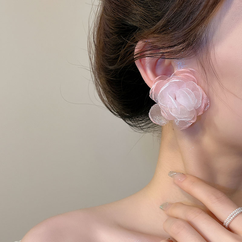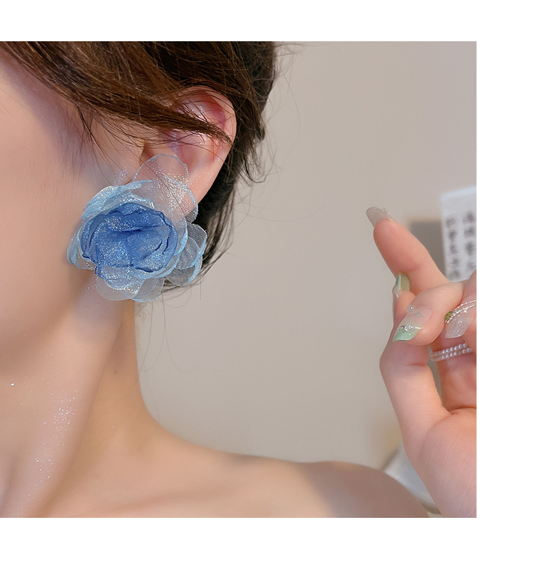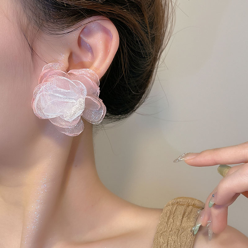 Mori Fairy Beautiful Net Yarn Flowers Earrings Female Special-Interest Design Fancy Earrings 2023 New Arrival Tide Graceful Earrings