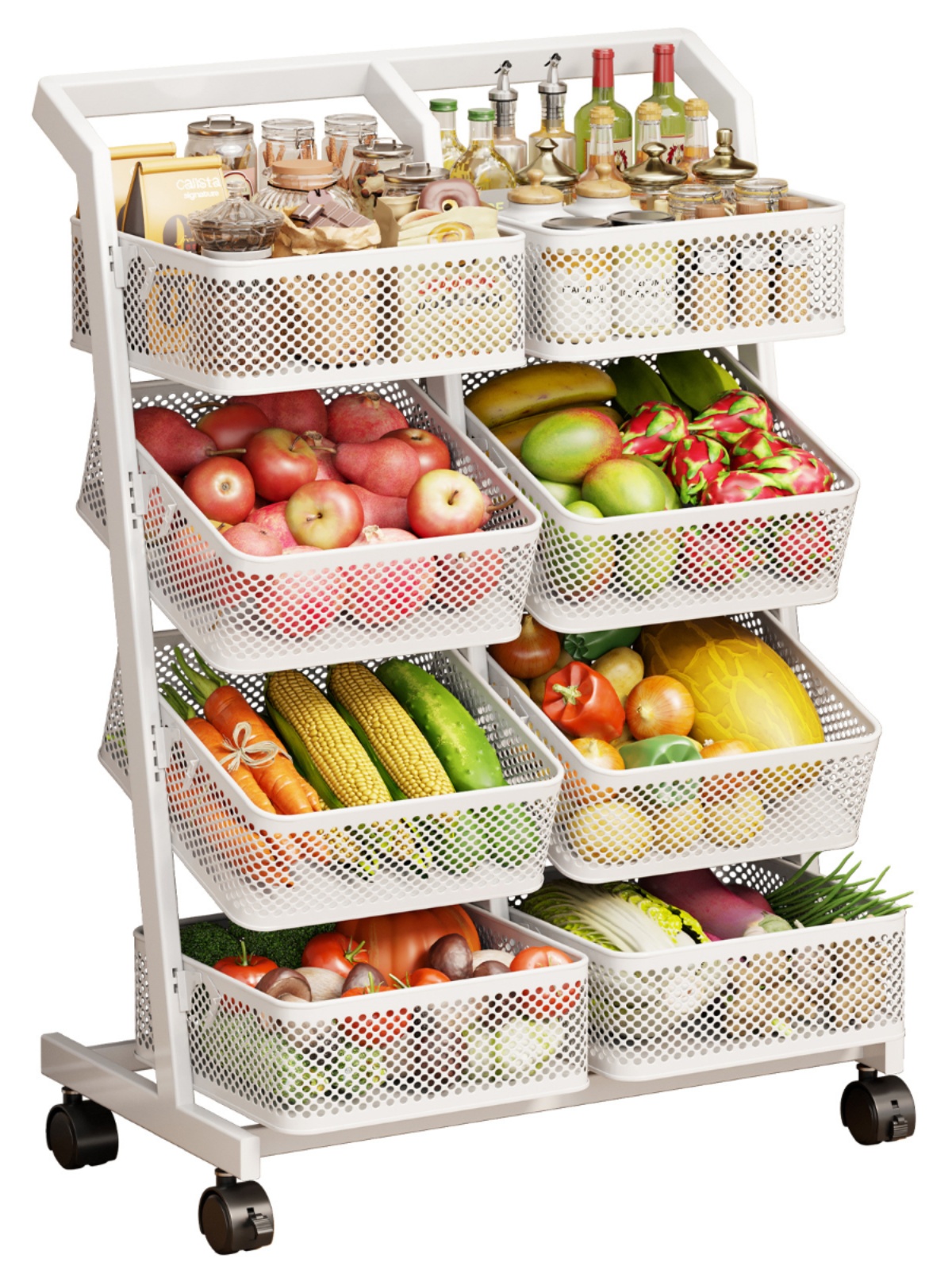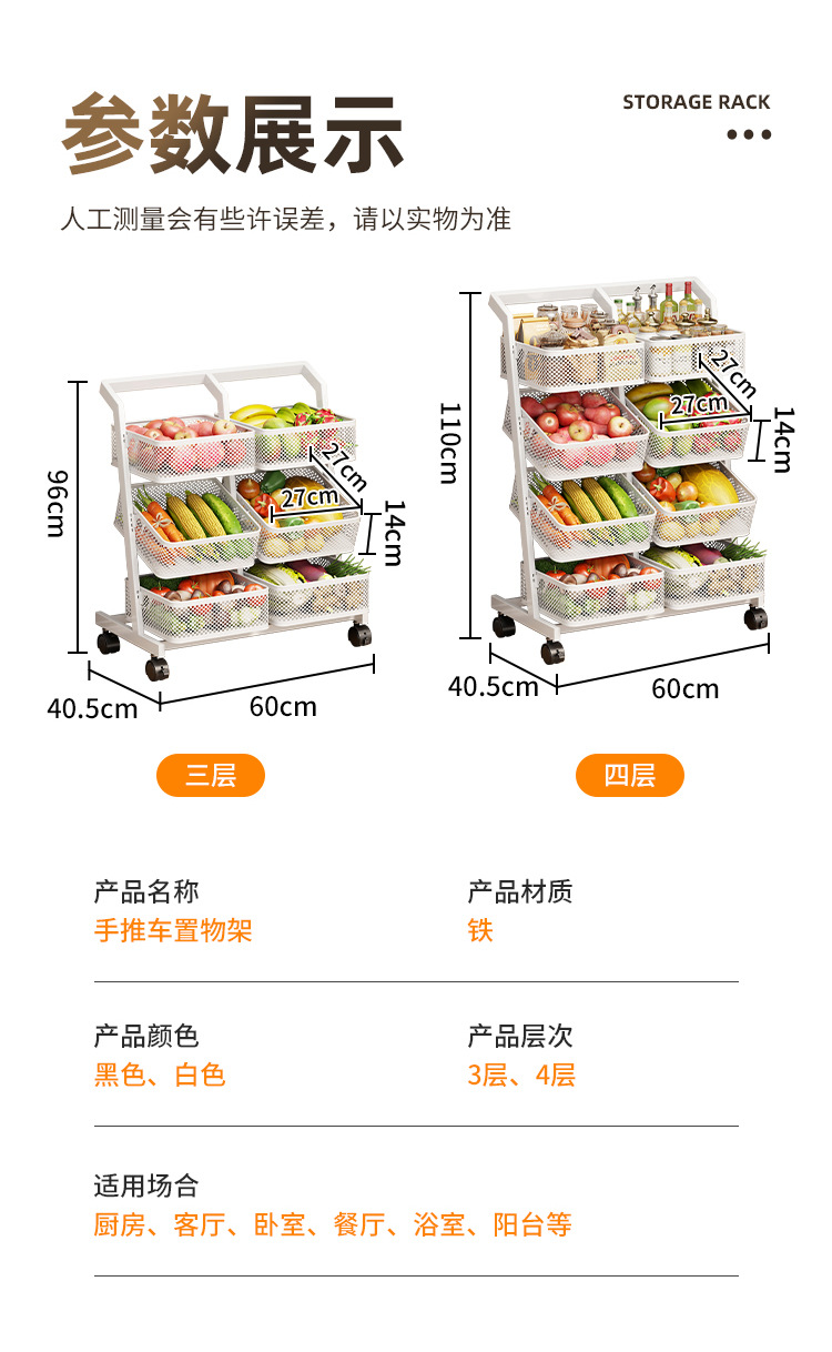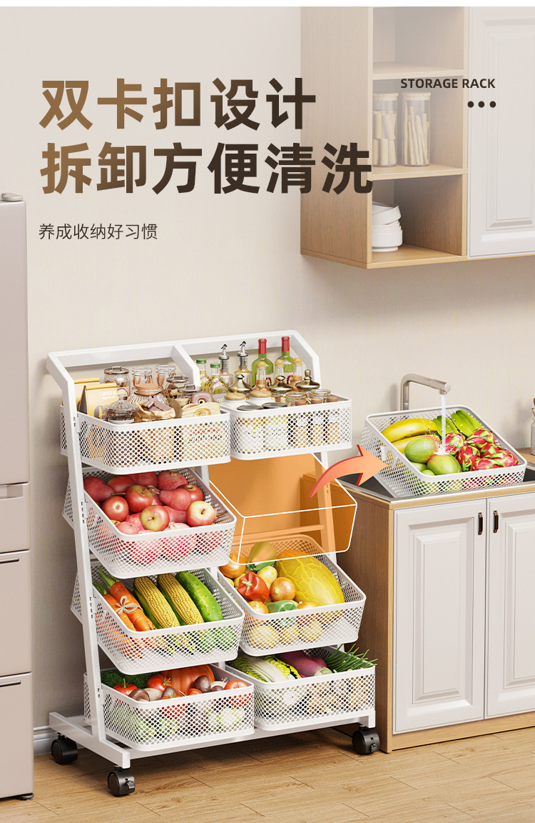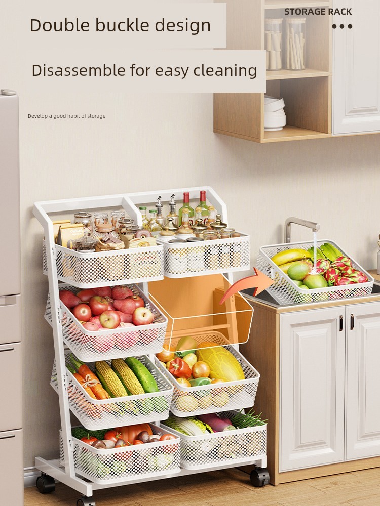 Movable For Home Kitchen Floor Multi-Layer Storage Rack Bathroom Multifunctional Storage Rack Trolley Snack Storage Rack