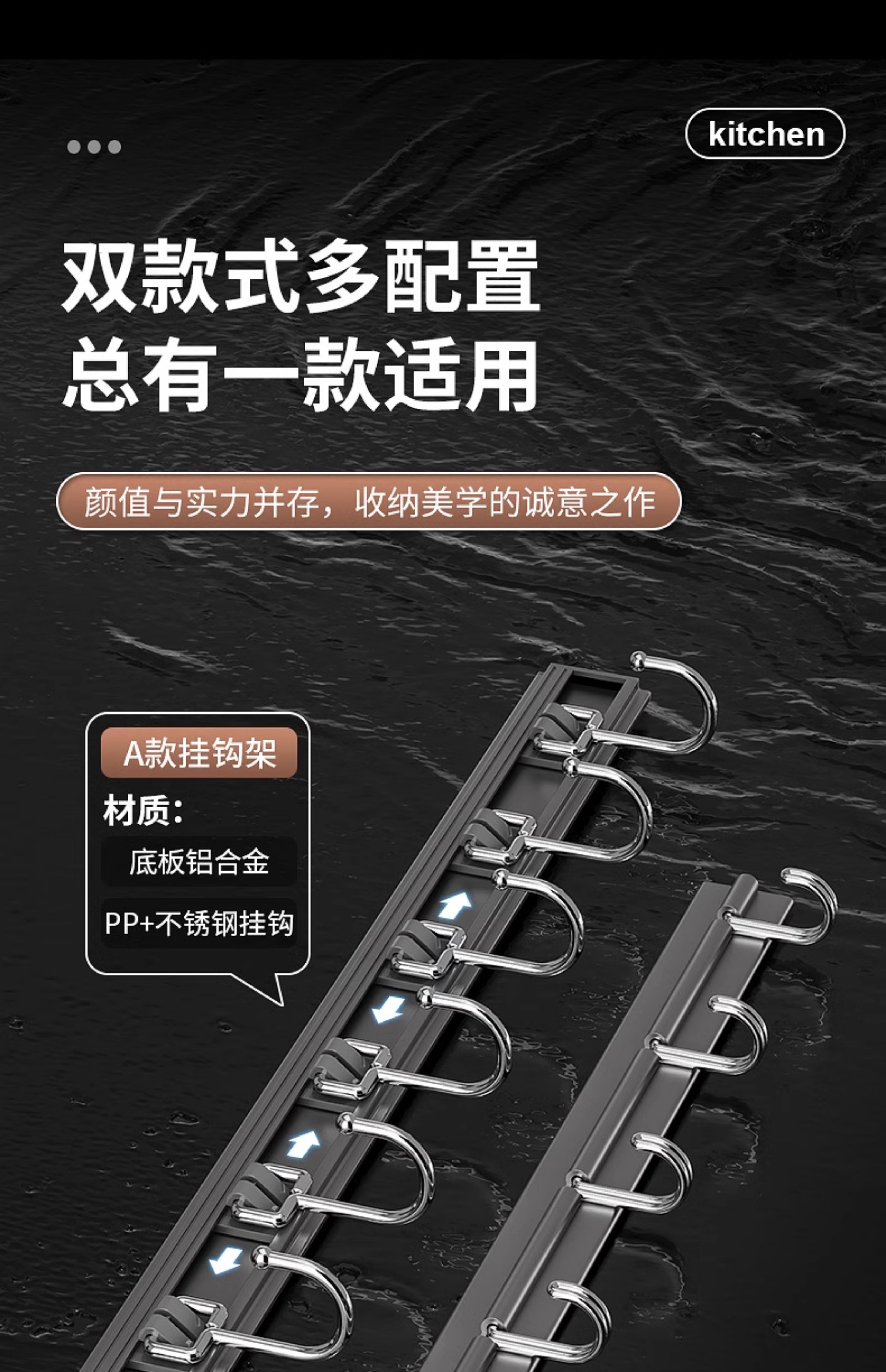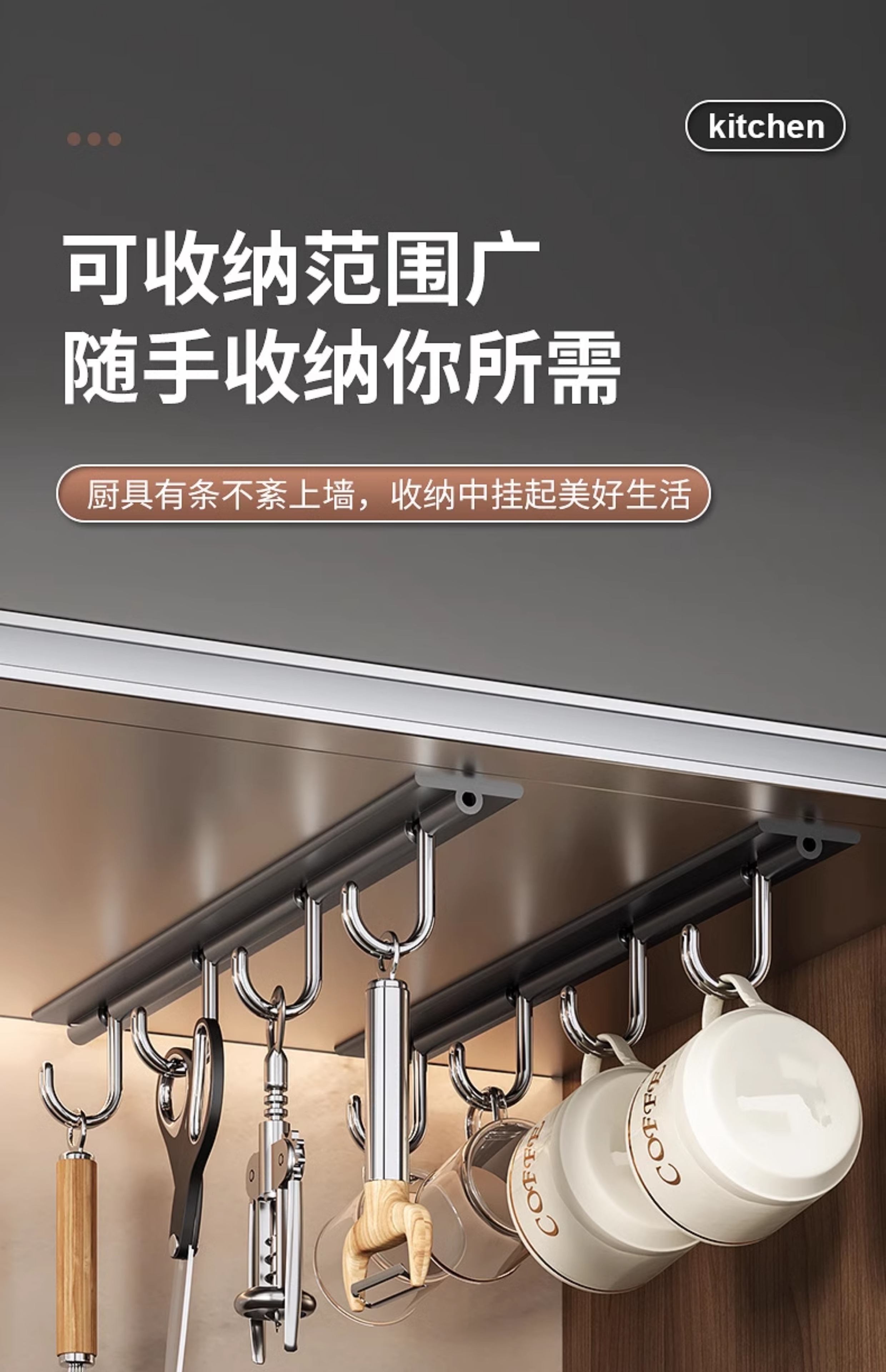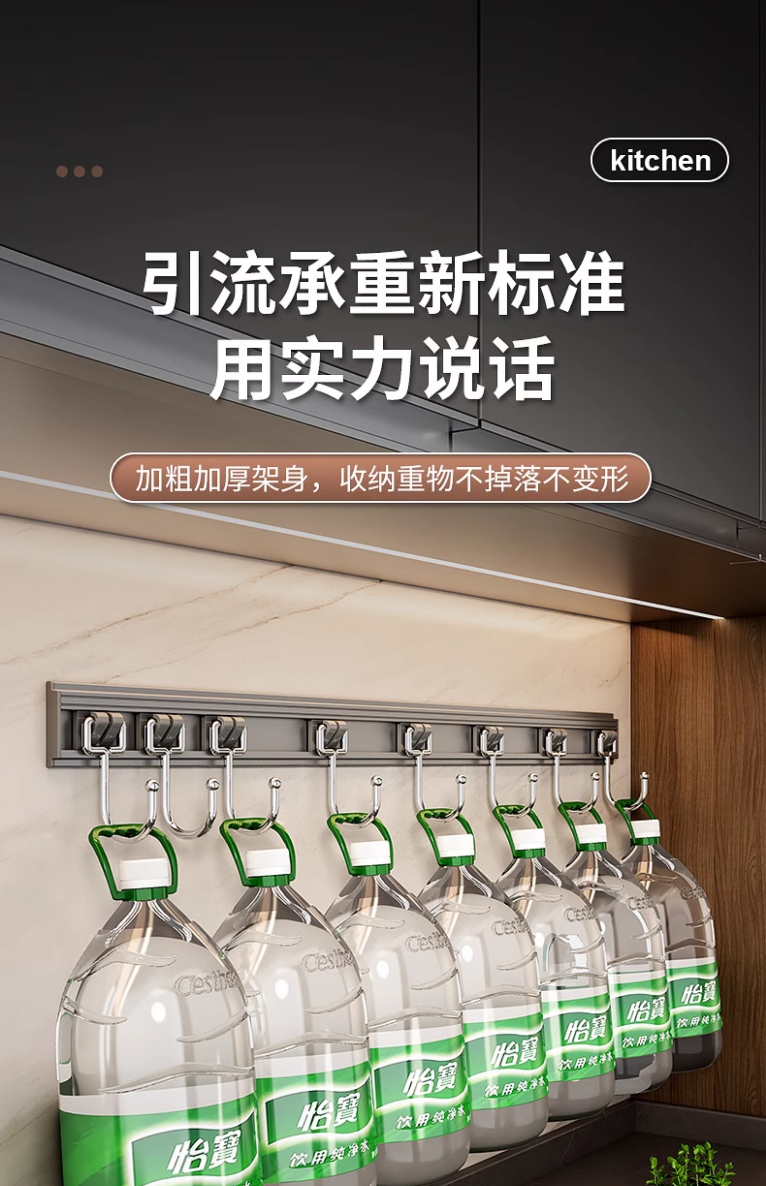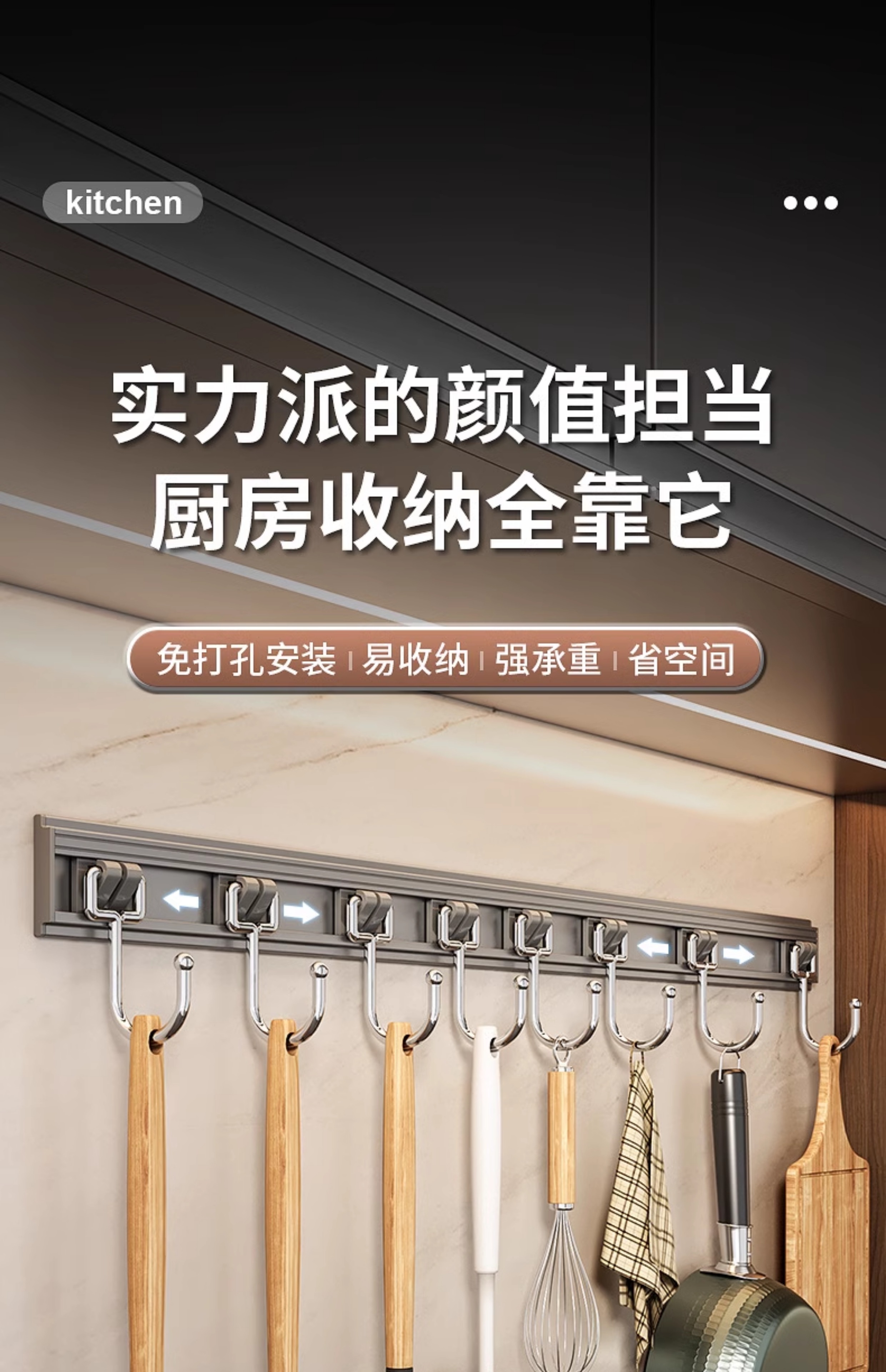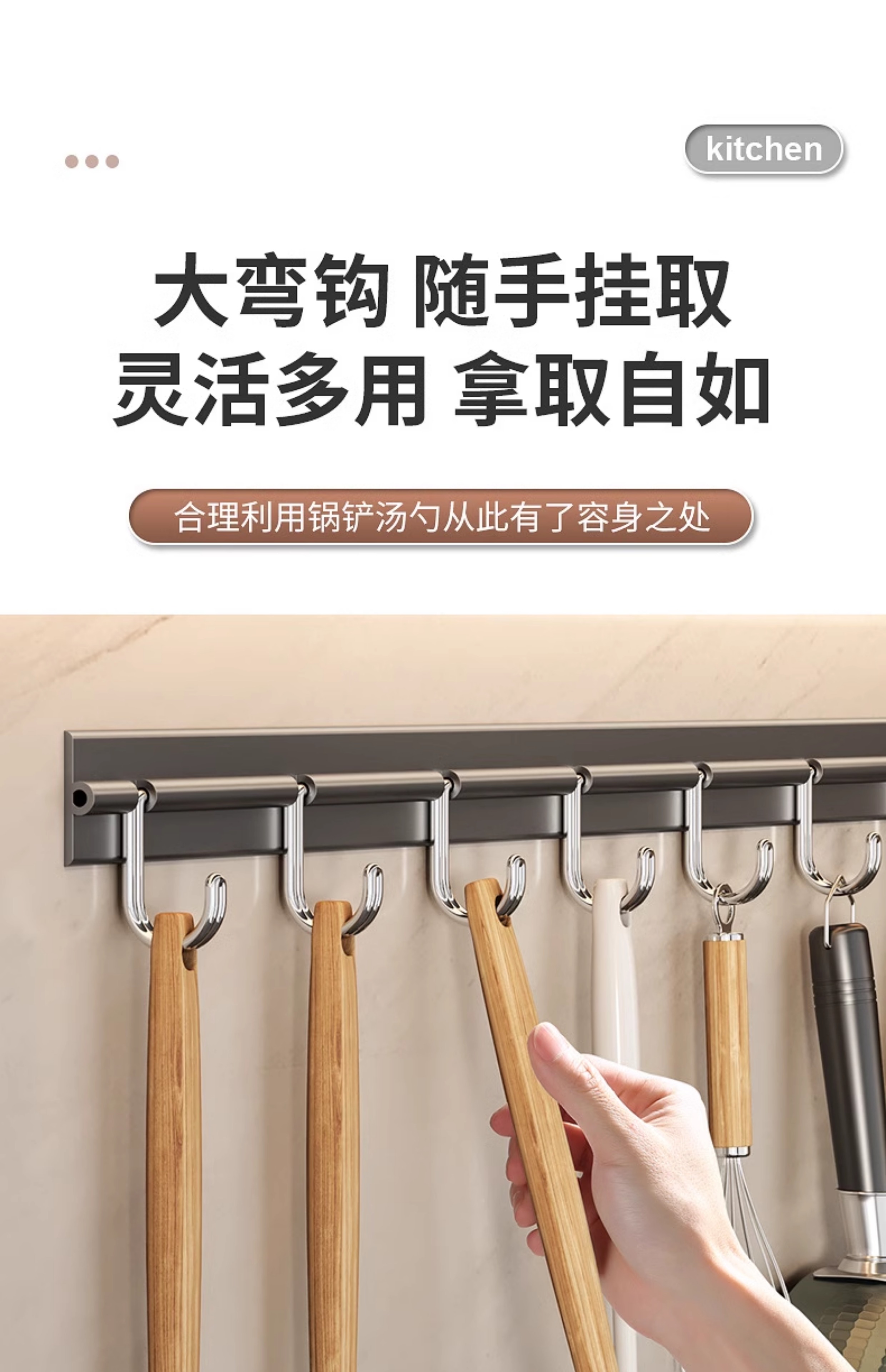 Multi-Functional Movable Rack Punch-Free Kitchen Hook Rack Hanging Rod Wall-Mounted Alumimum Kitchenware Rack Storage Rack