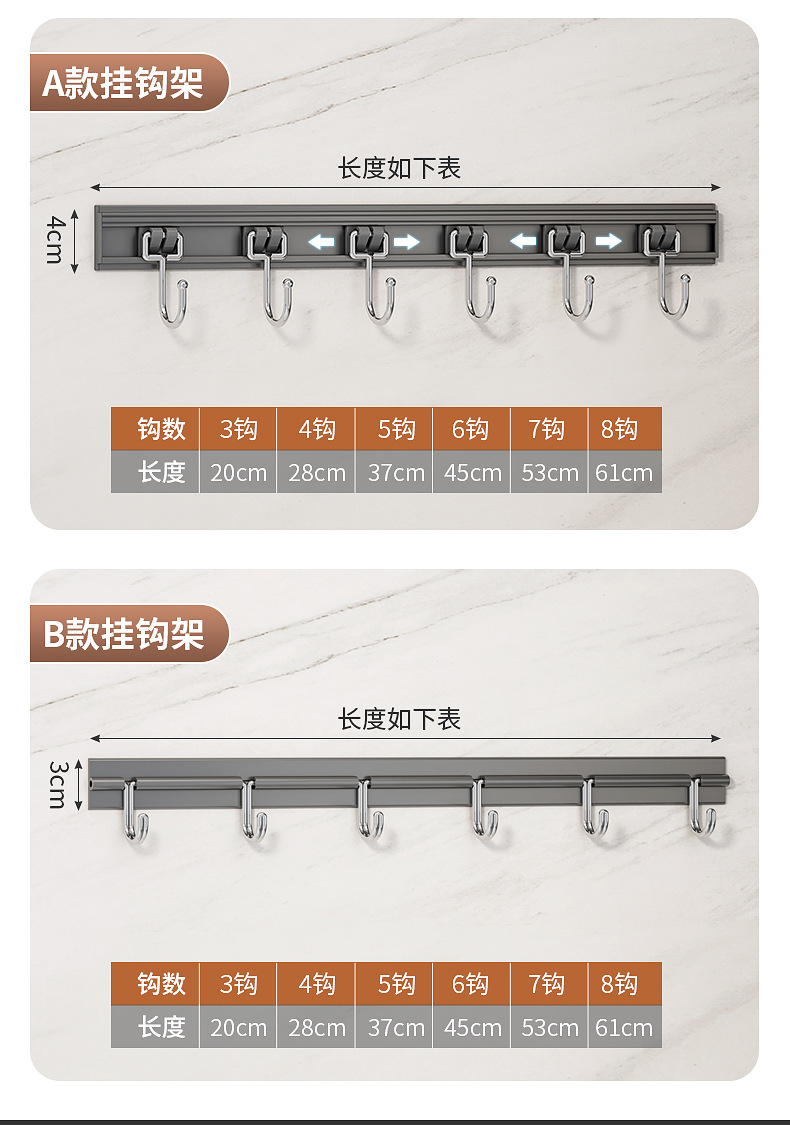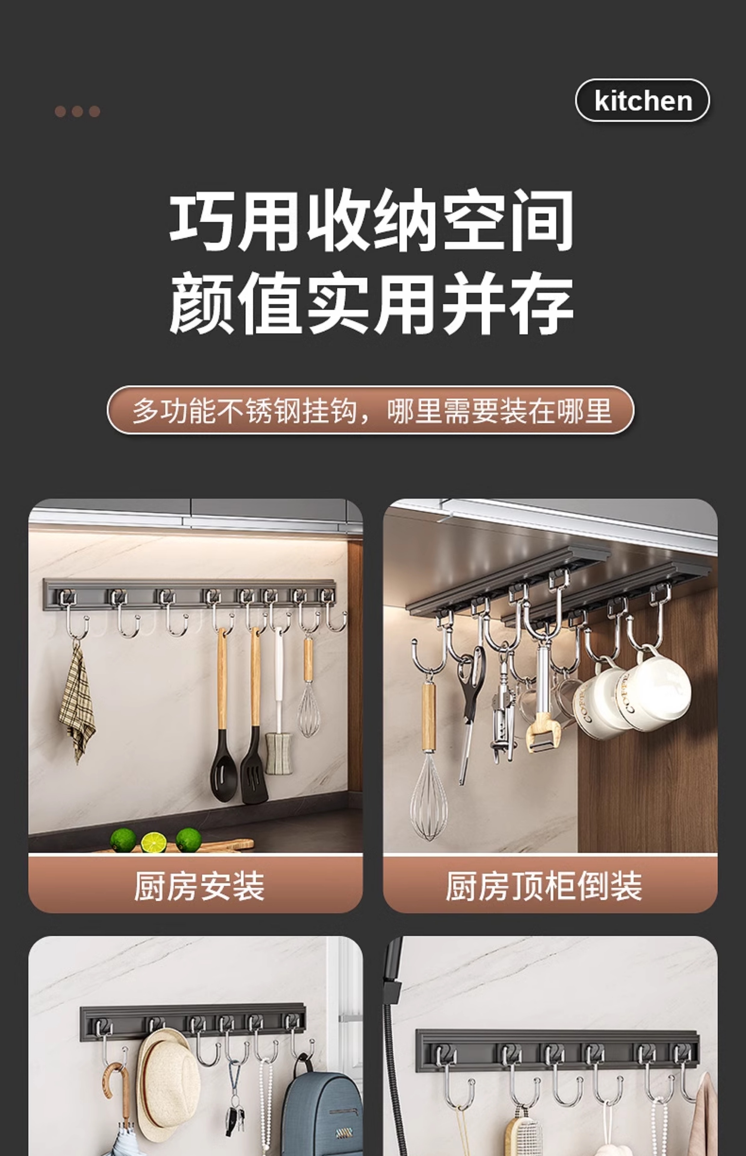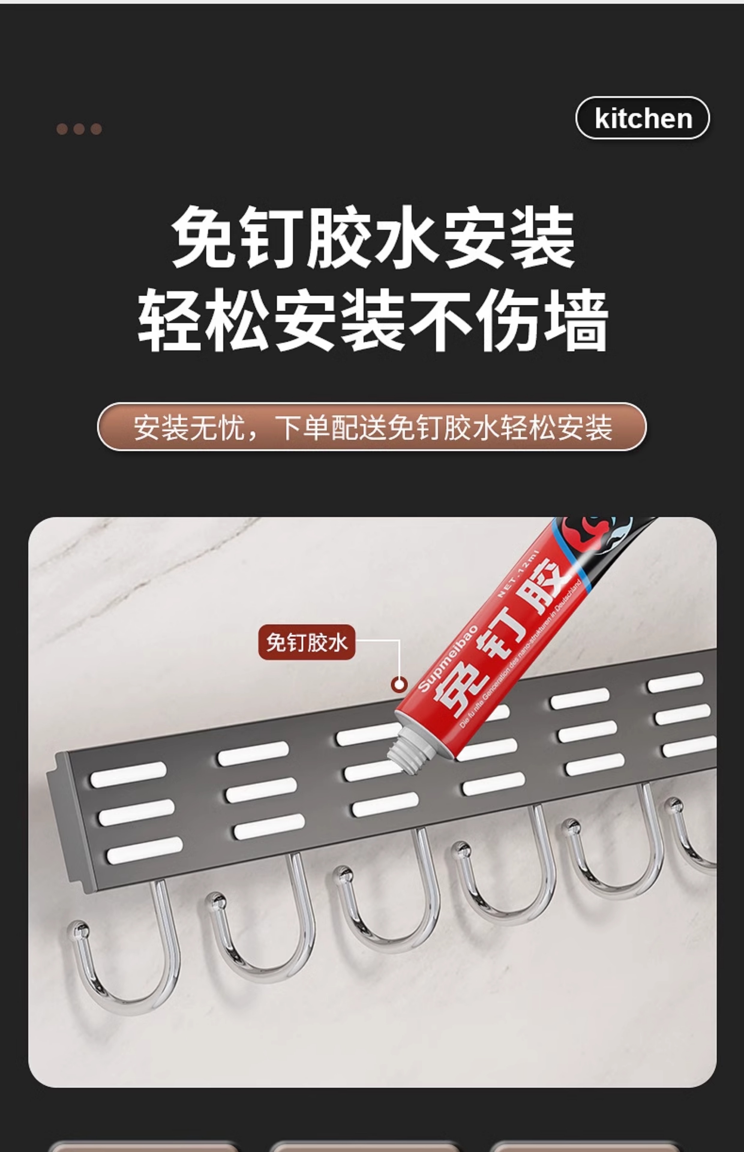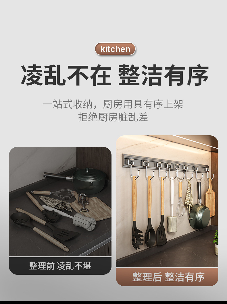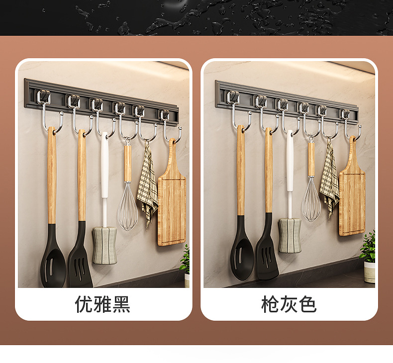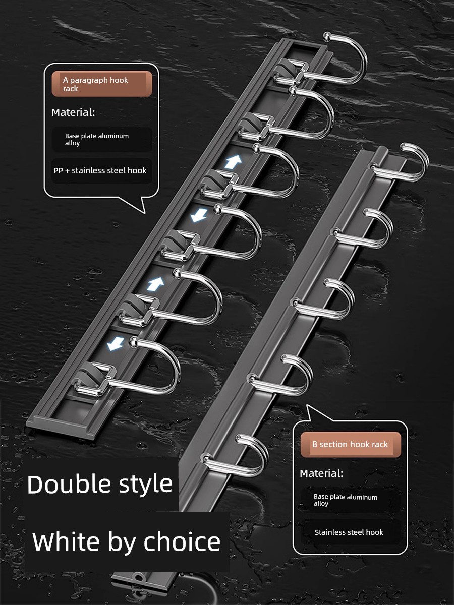 Multi-Functional Movable Rack Punch-Free Kitchen Hook Rack Hanging Rod Wall-Mounted Alumimum Kitchenware Rack Storage Rack