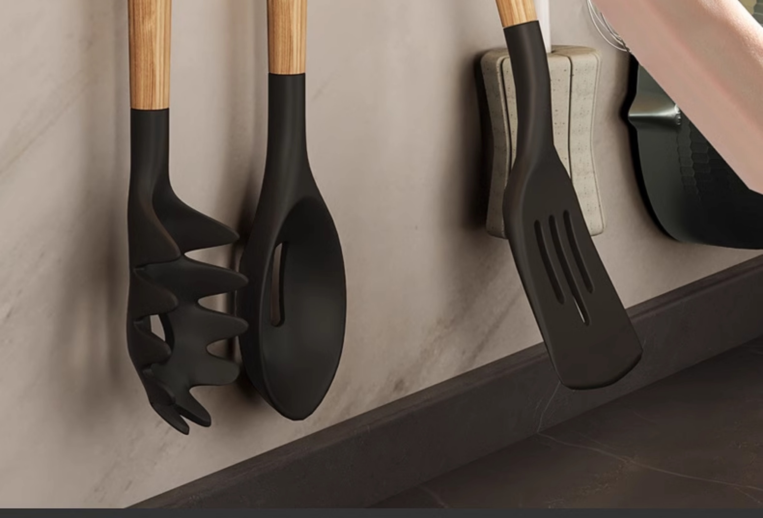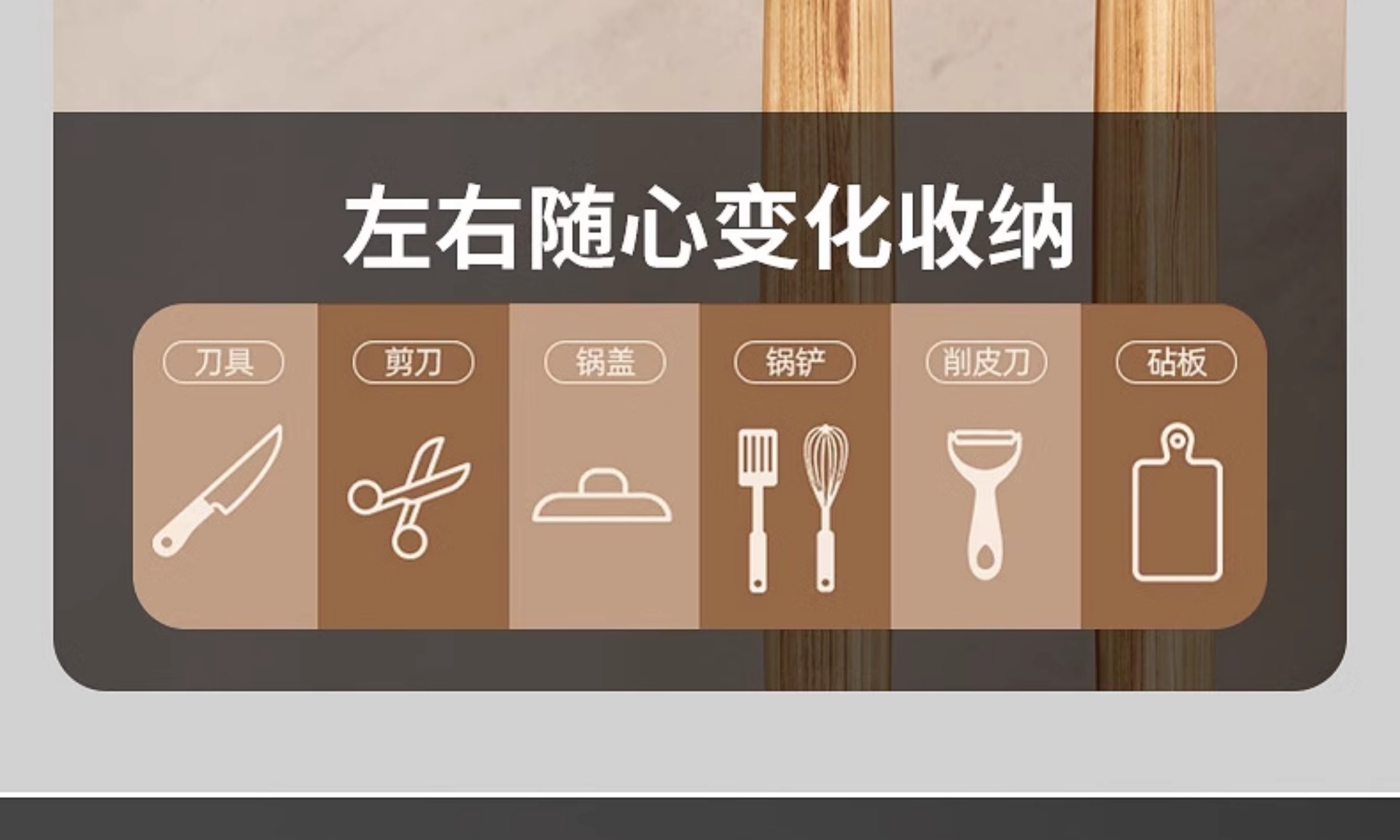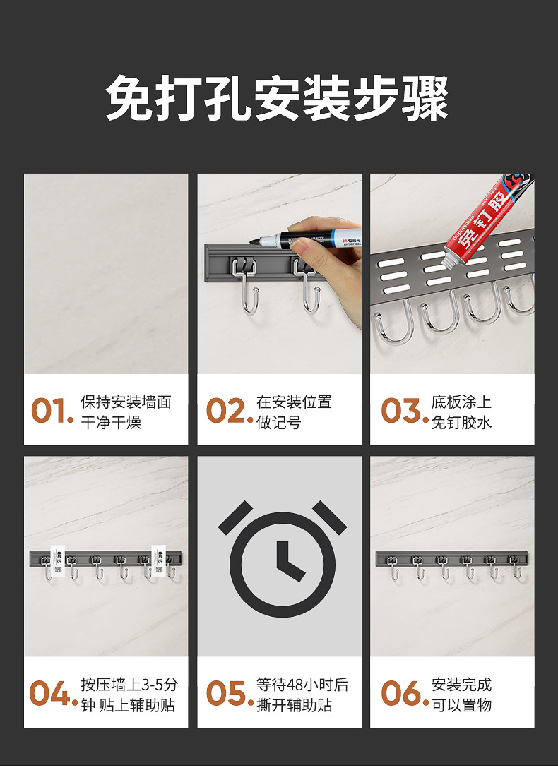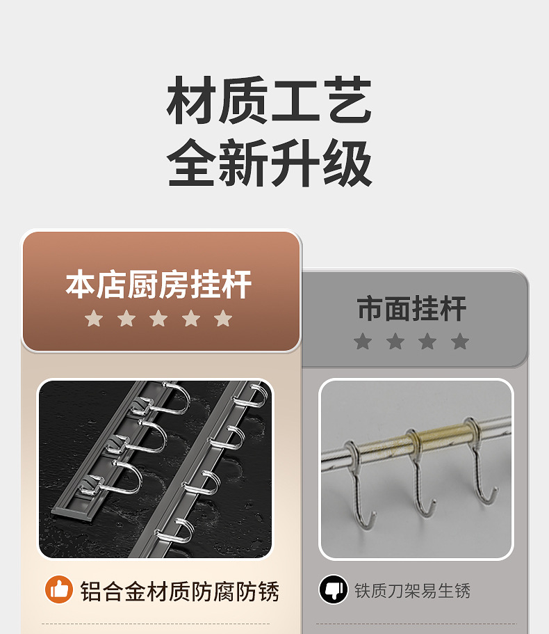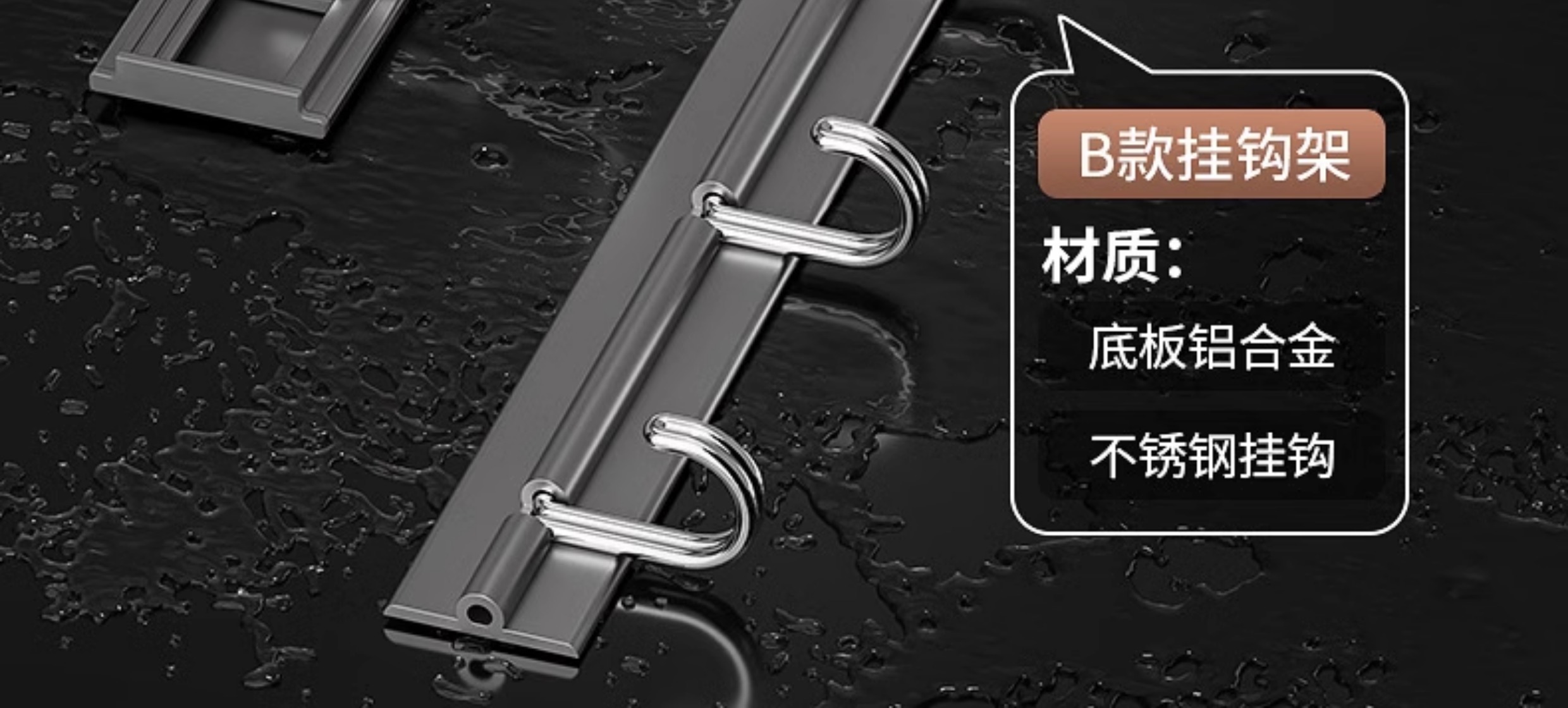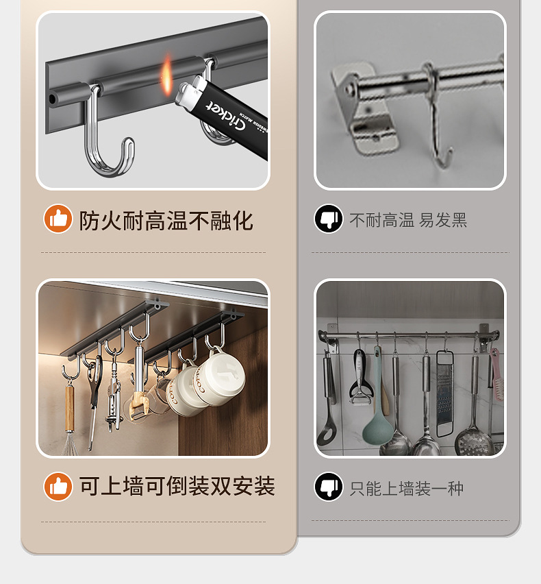 Multi-Functional Movable Rack Punch-Free Kitchen Hook Rack Hanging Rod Wall-Mounted Alumimum Kitchenware Rack Storage Rack