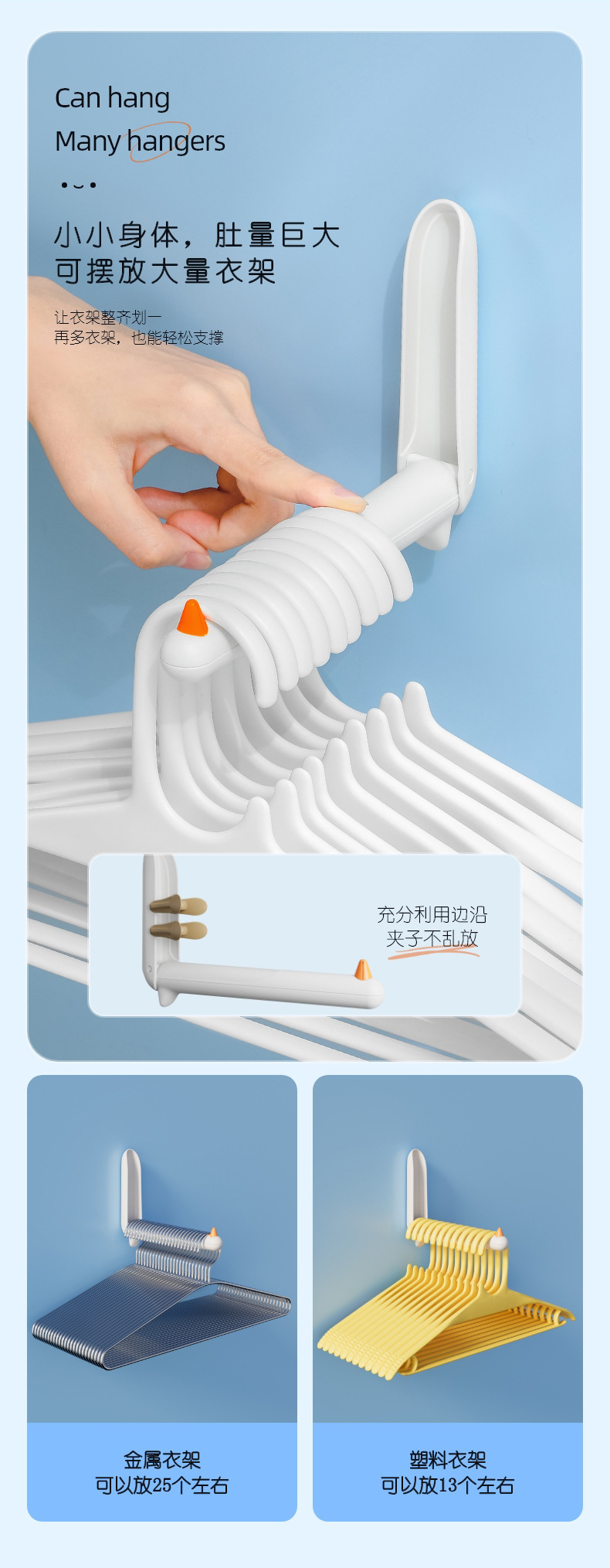 Multi-Functional Wall-Mounted Bird Hanger Storage Rack Balcony Foldable Hanger Clothes Clip Storage Rack Punch-Free
