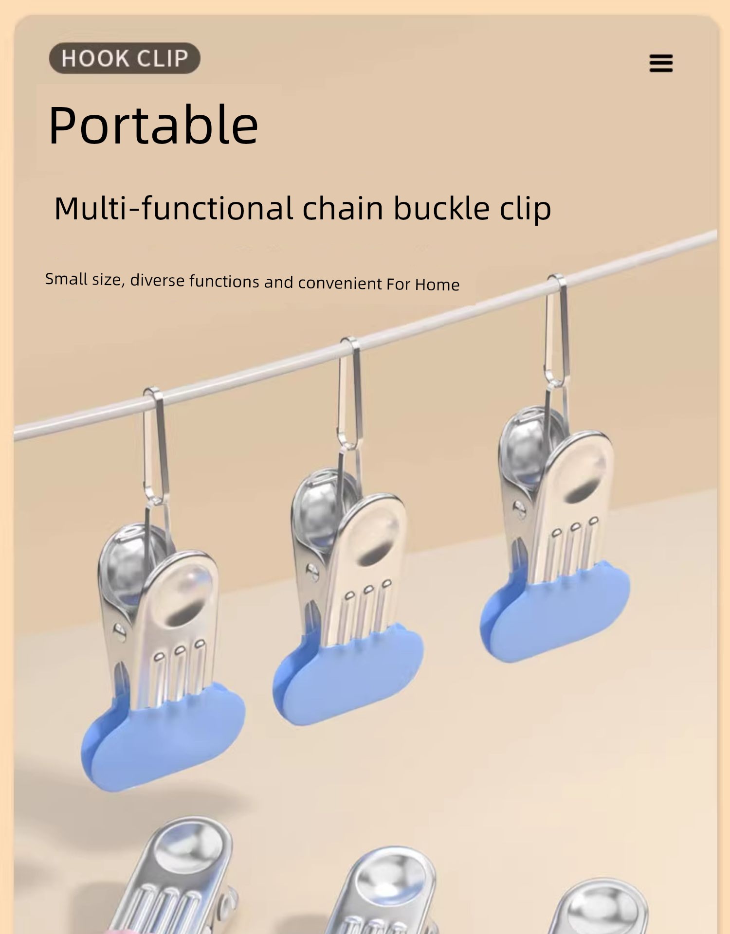 Multifunctional Connecting Shackle Wide Clip Flat Nozzle Clip Stainless Steel Flat Nozzle Clothes Pin For Home Storage Windproof Cotton-Padded Clothes Hat Clip