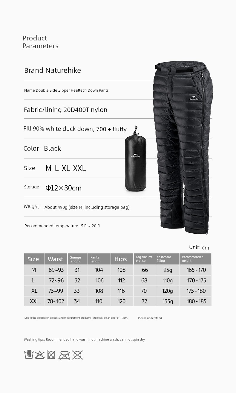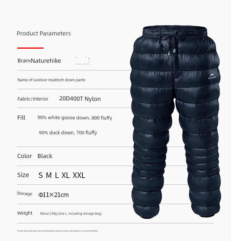 Naturehike Naturehike Waterproof down Wadded Trousers Winter Male Outdoor Casual Pants Waterproof White Duck down Pants Women