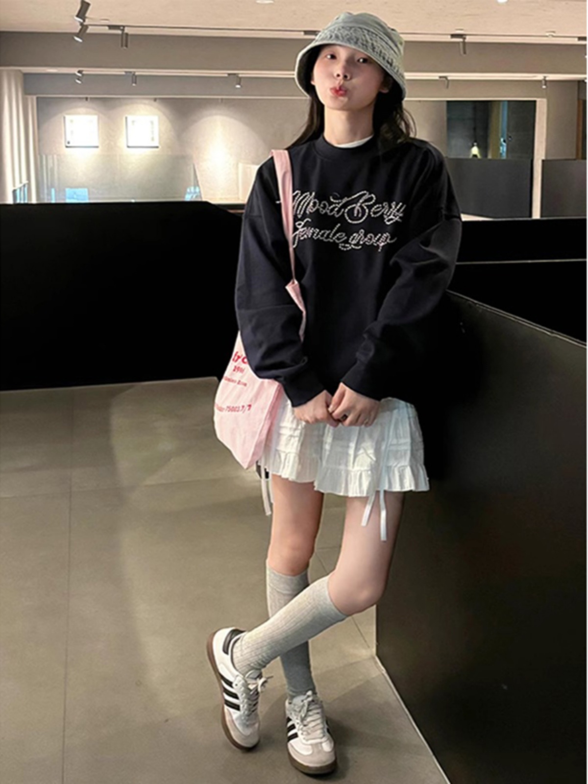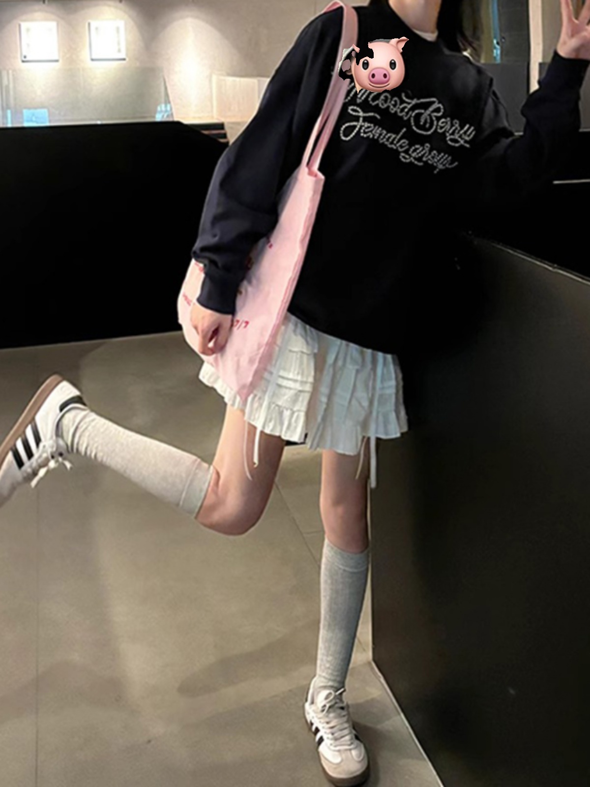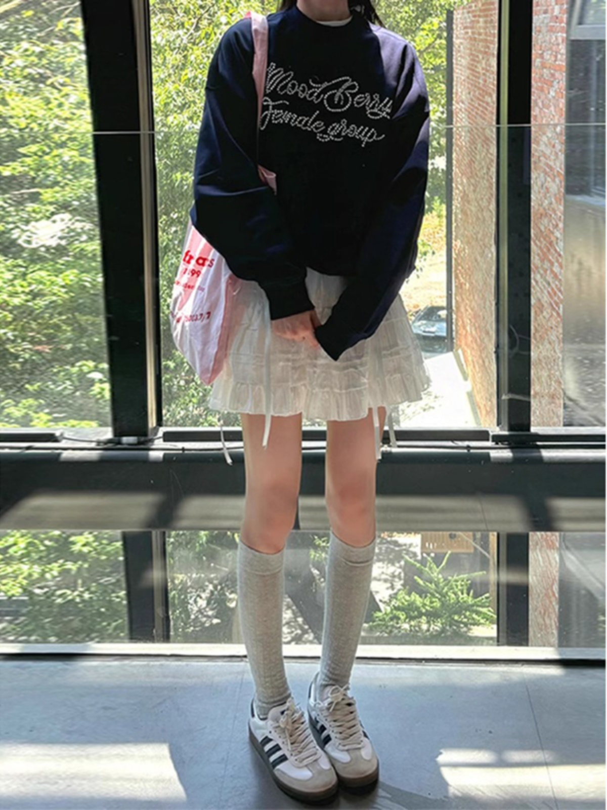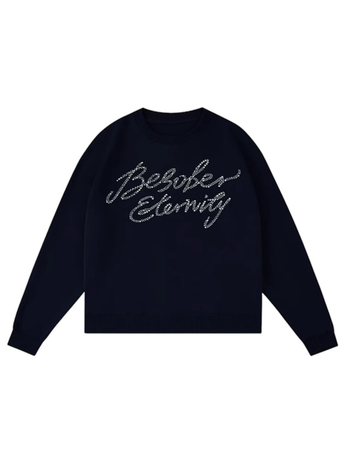 Navy Blue Classy Idle Style American Fashion Brand Loose Oversize Sweatshirt Women's 2025 New Arrival Best Selling Tops
