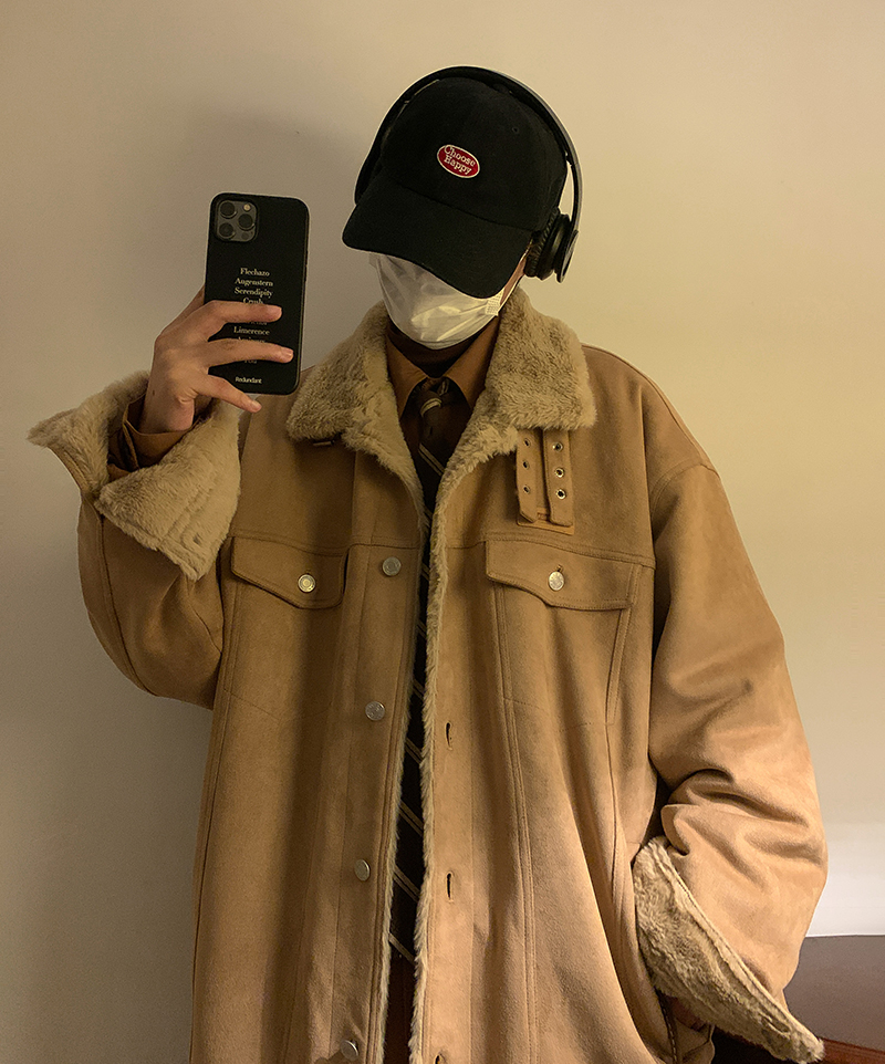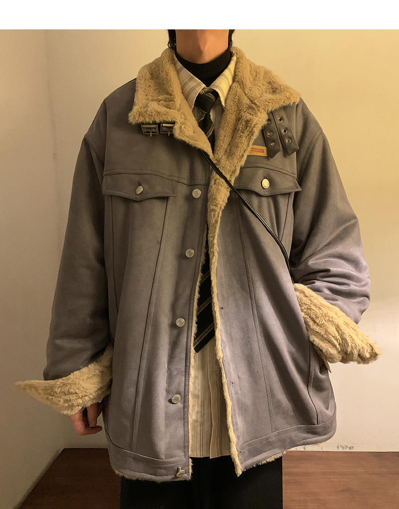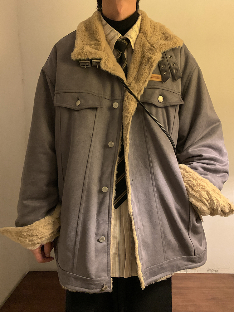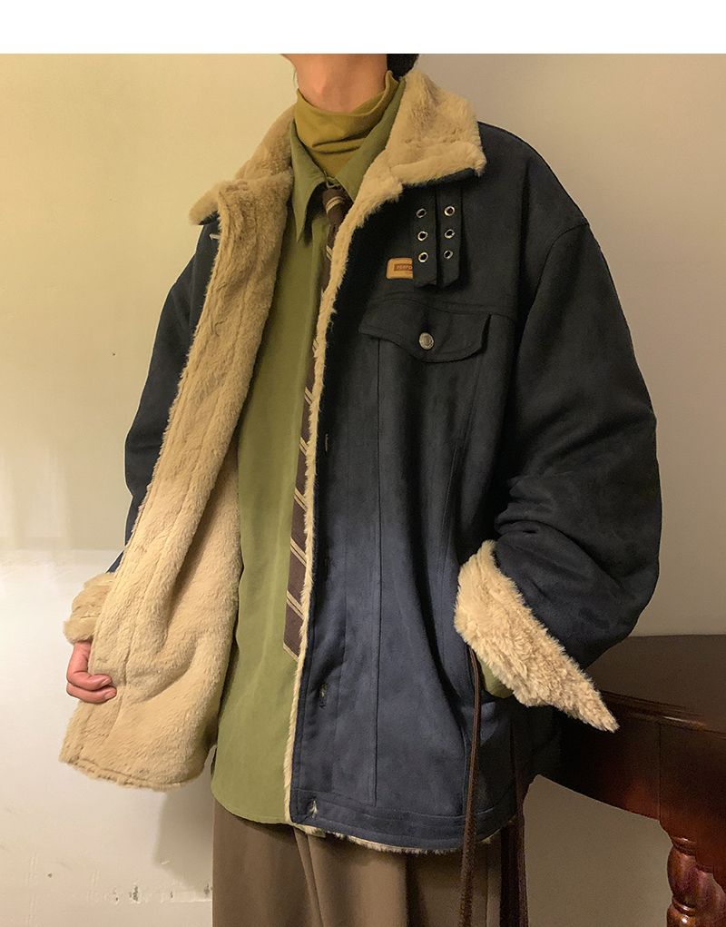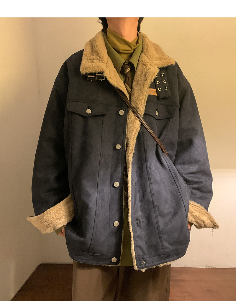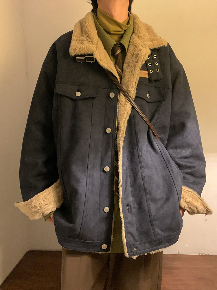 Navy Blue Fleece-lined Thickened Lamb Wool Outwear Women's Winter New Arrival Loose Casual Couple Heattech Cotton Coat Cotton Jacket