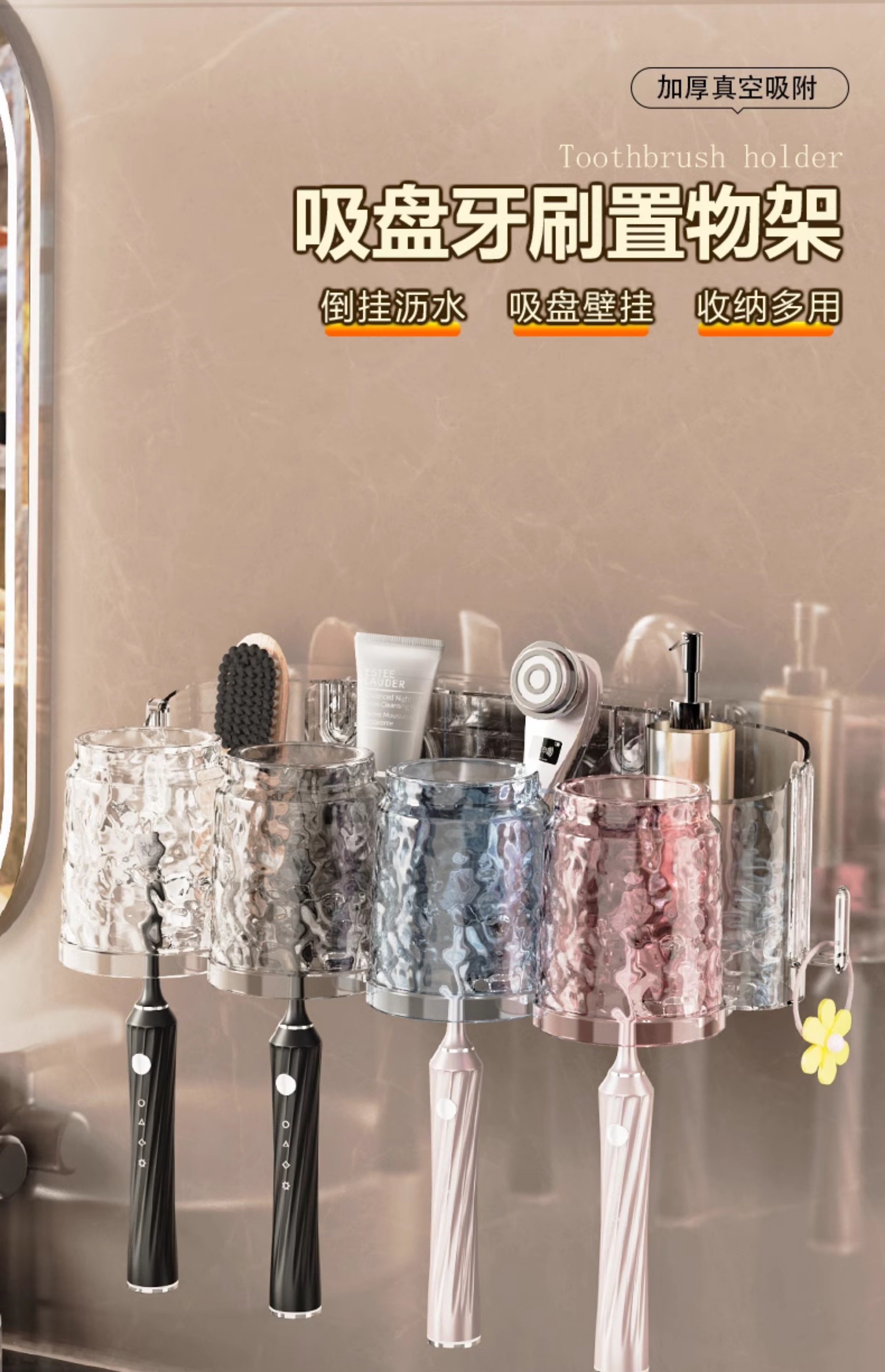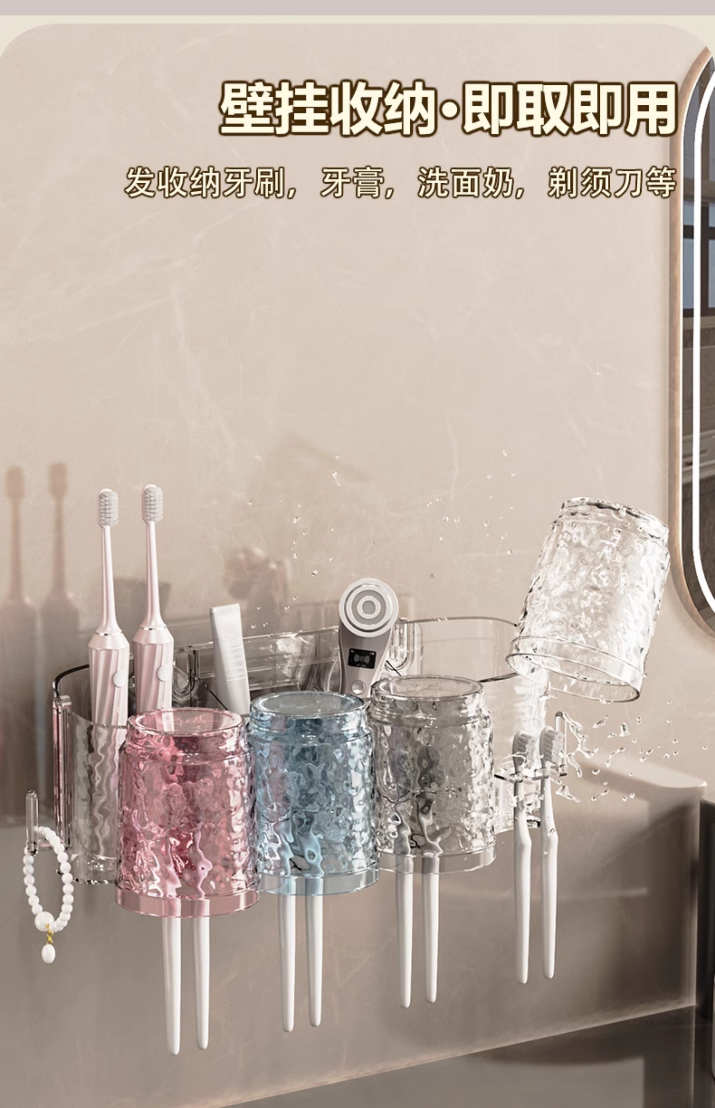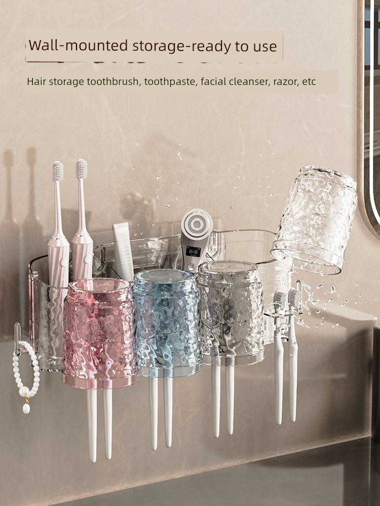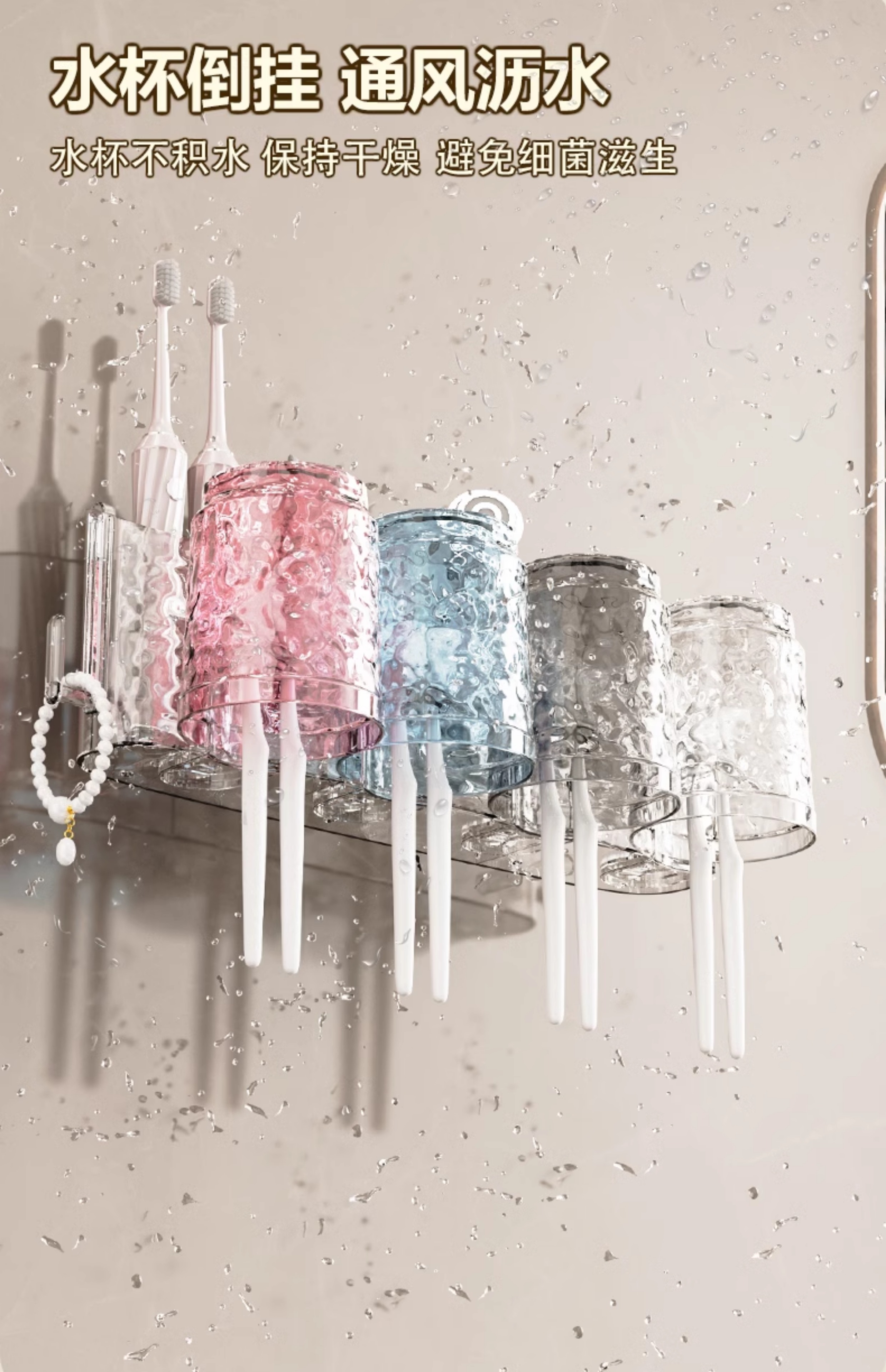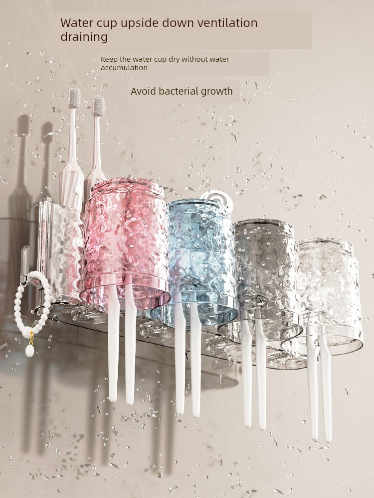 New Arrival Colorful Toothbrush Holder Punch-Free Toothbrush Rack Toilet Cup Tooth Cup Storage Rack Wall-Mounted