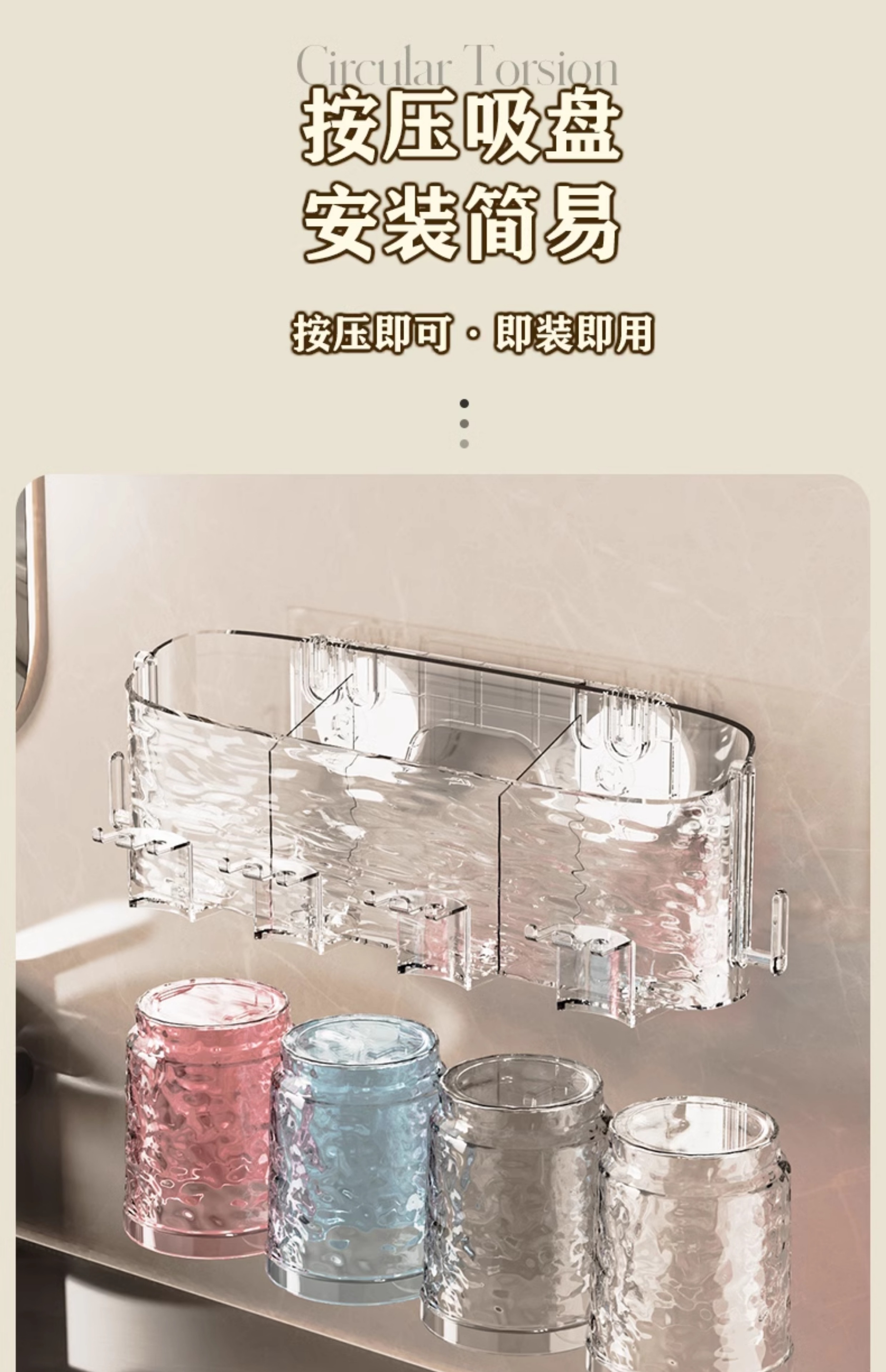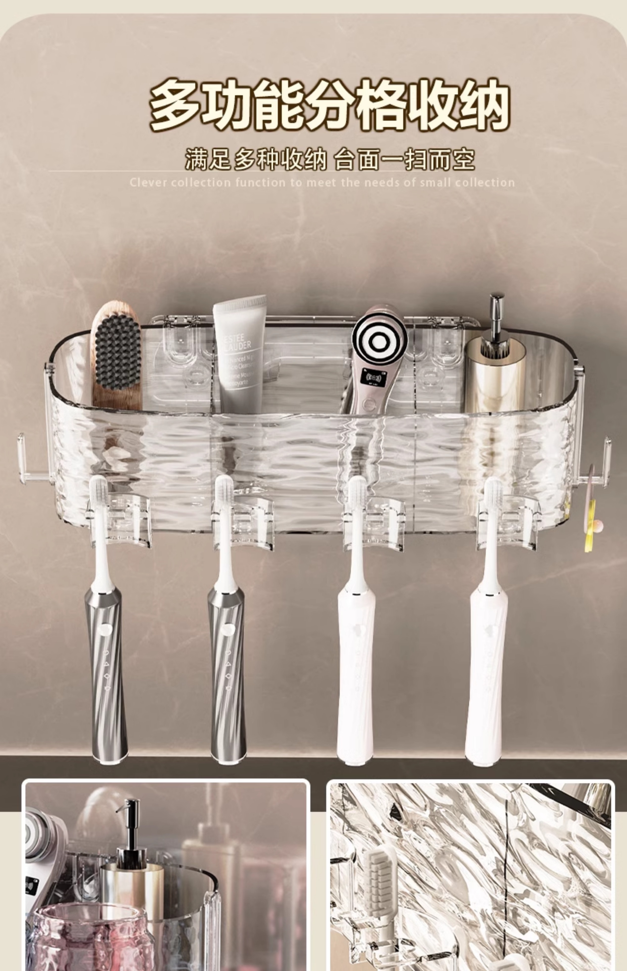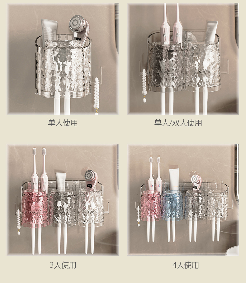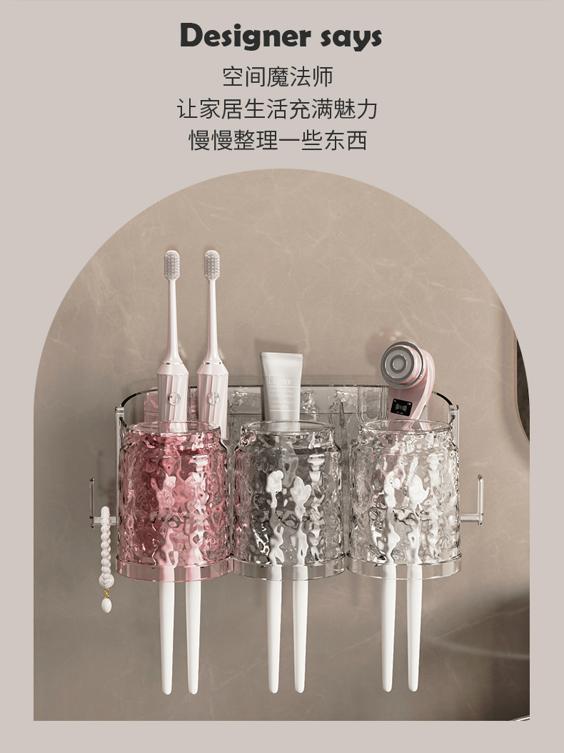 New Arrival Colorful Toothbrush Holder Punch-Free Toothbrush Rack Toilet Cup Tooth Cup Storage Rack Wall-Mounted