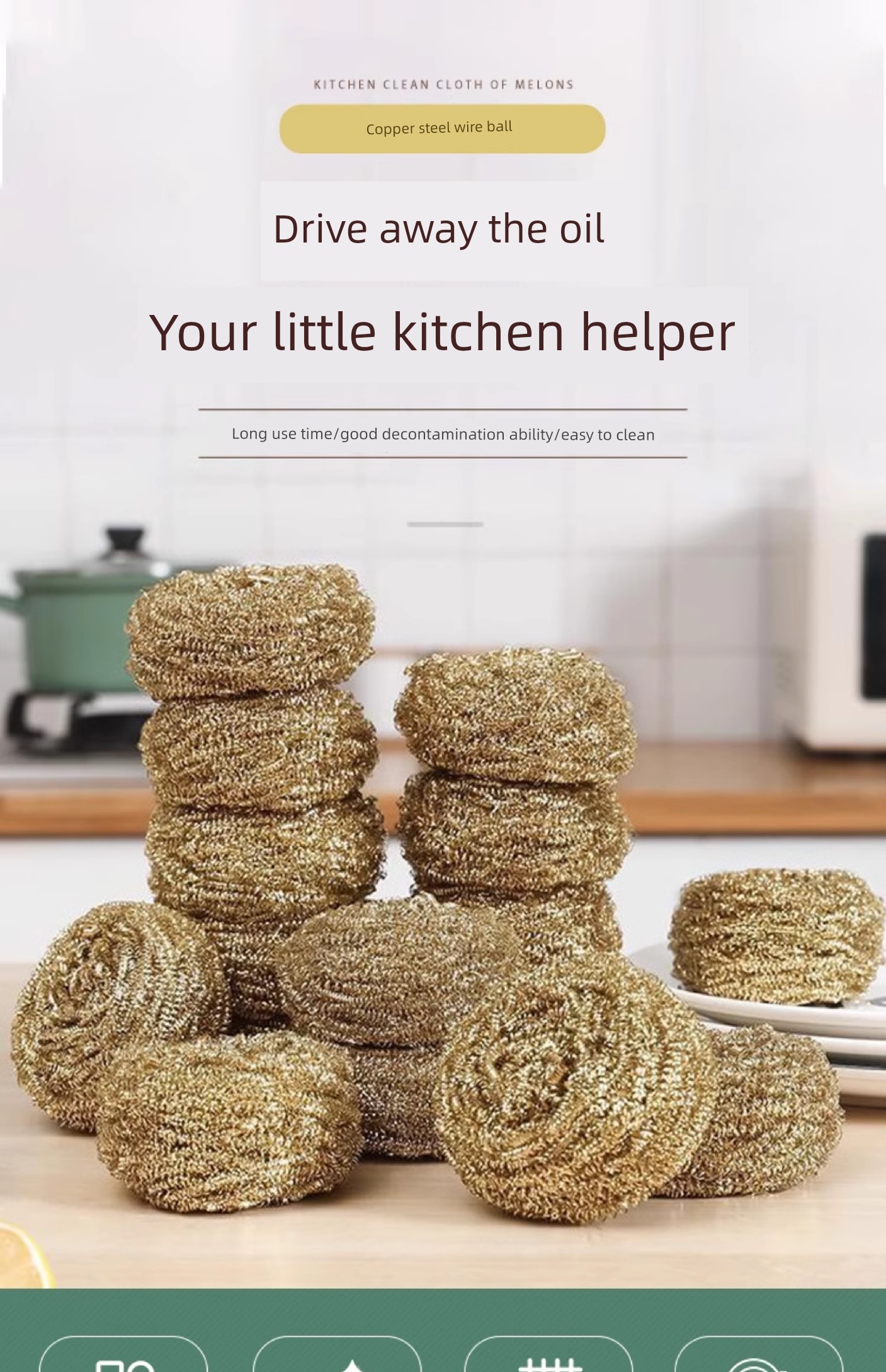 New Arrival Copper Wire Cleaning Ball Fabulous Pot Cleaning Tool Copper-Plated Steel Kitchen Supplies Non-Slag Large Decontamination Dishwashing Pot Ball