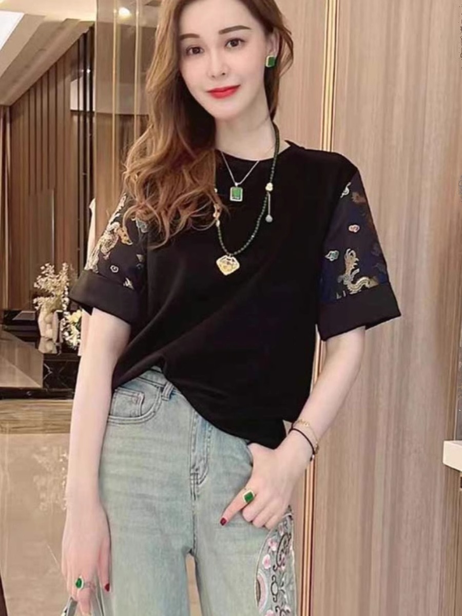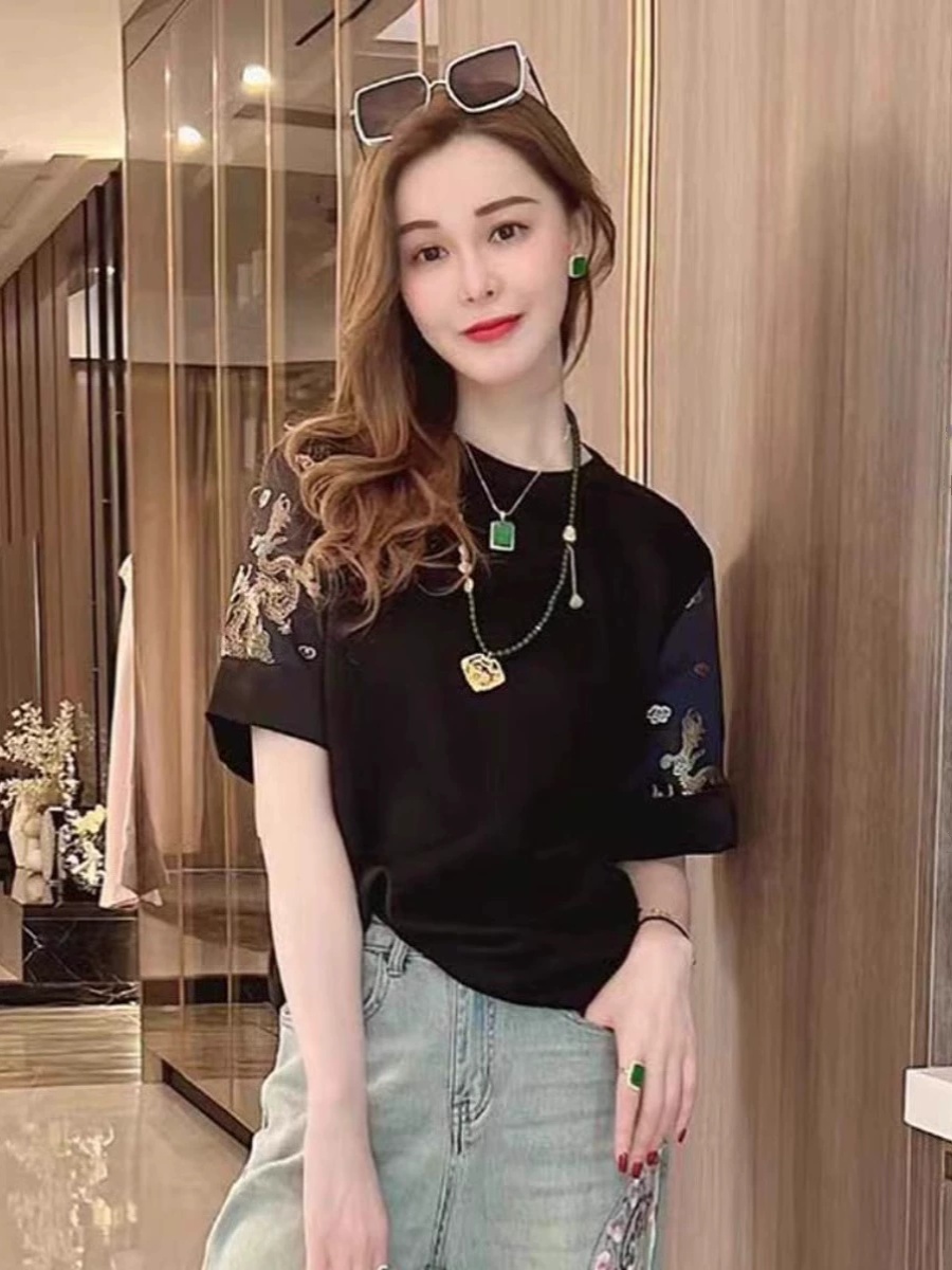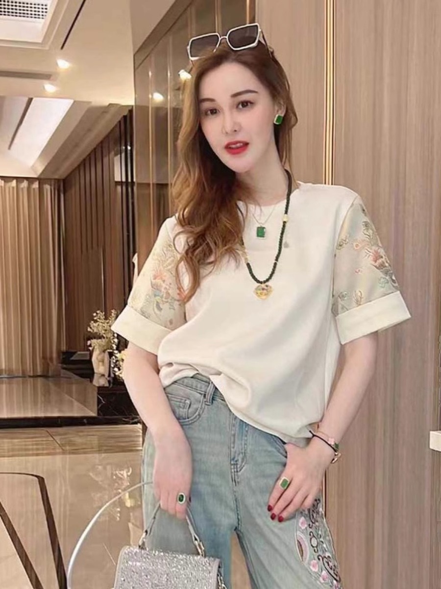 New Chinese Style Light National Style Short-Sleeved T-shirt Women's Summer 2025 New Design Sense Niche Style Embroidery Bottoming Inner Wear Blouse
