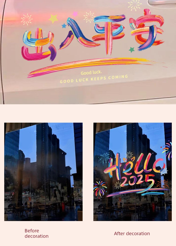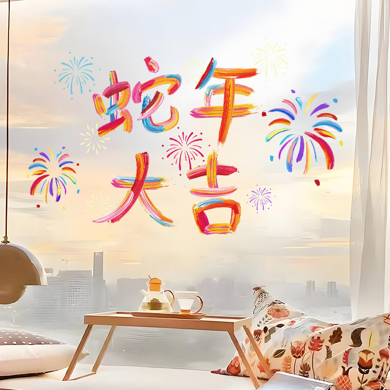 New Year Decoration Stickers 2025 Snake Year Rainbow Window with Paper-Cut Works Static Sticker Window Stickers Bumper Stickers Chinese New Year