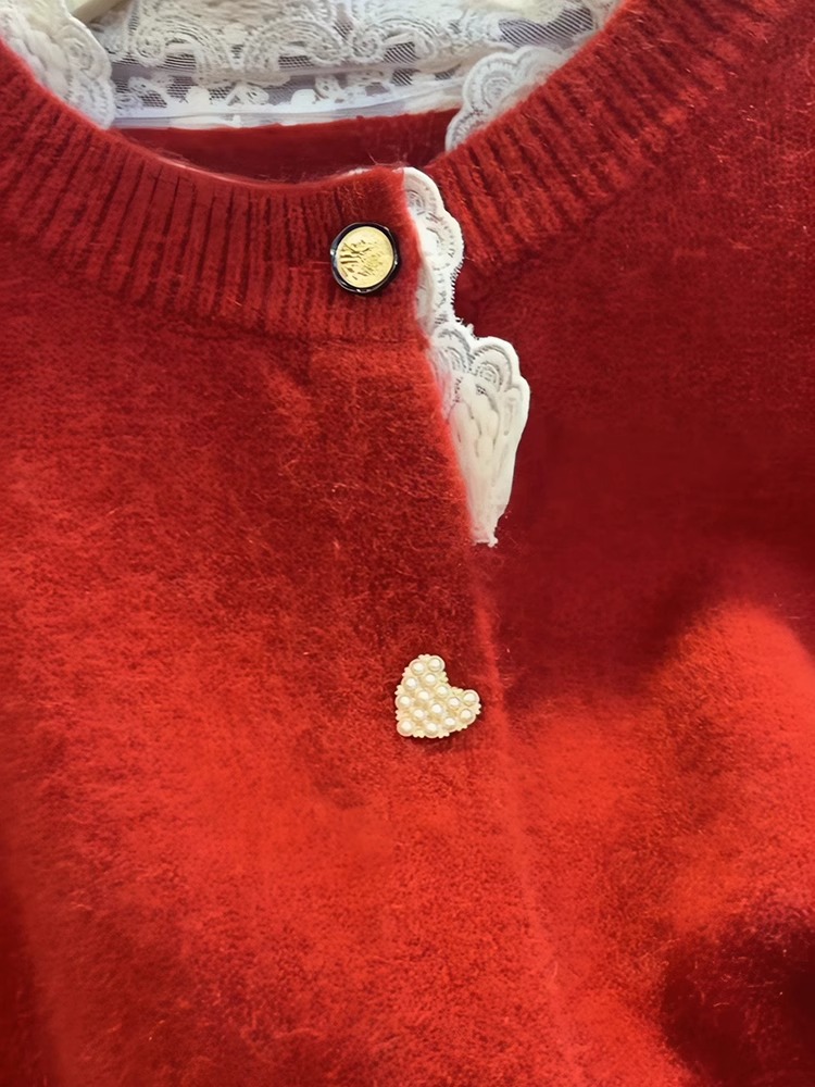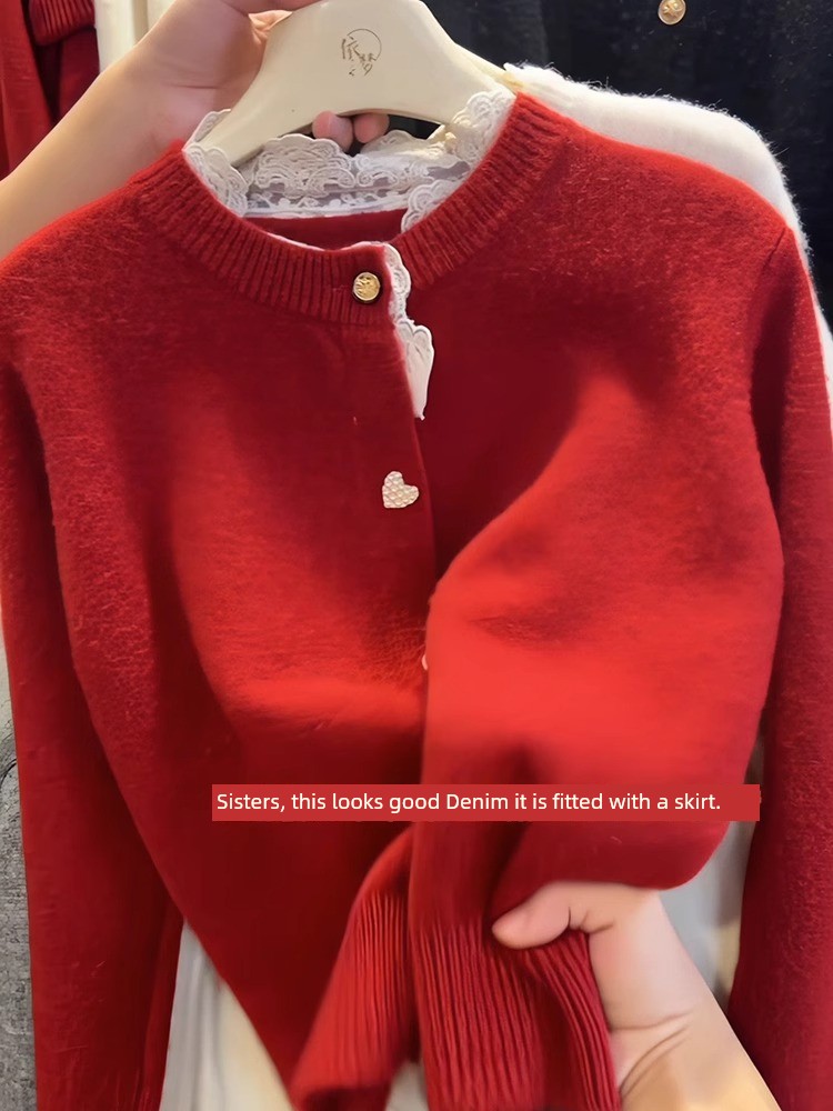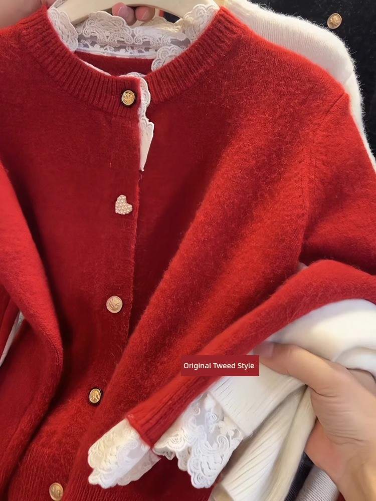New Year of Birth Year Sweater Women 2025 Women's Spring Clothing Classic Style Patchwork Lace Red Inner Wear Knitting Cardigan Women