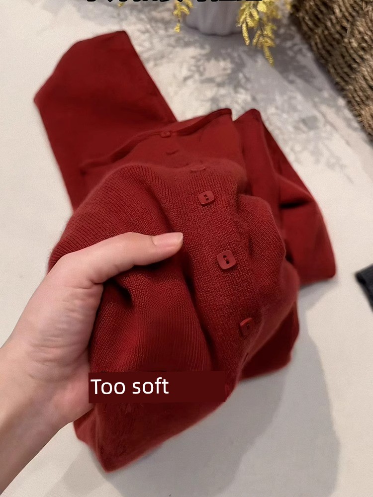 New Year Red Stand-up Collar Knitting Cardigan Outwear Female Spring and Autumn 2025 New Arrival Fashionable Anti-Aging Top