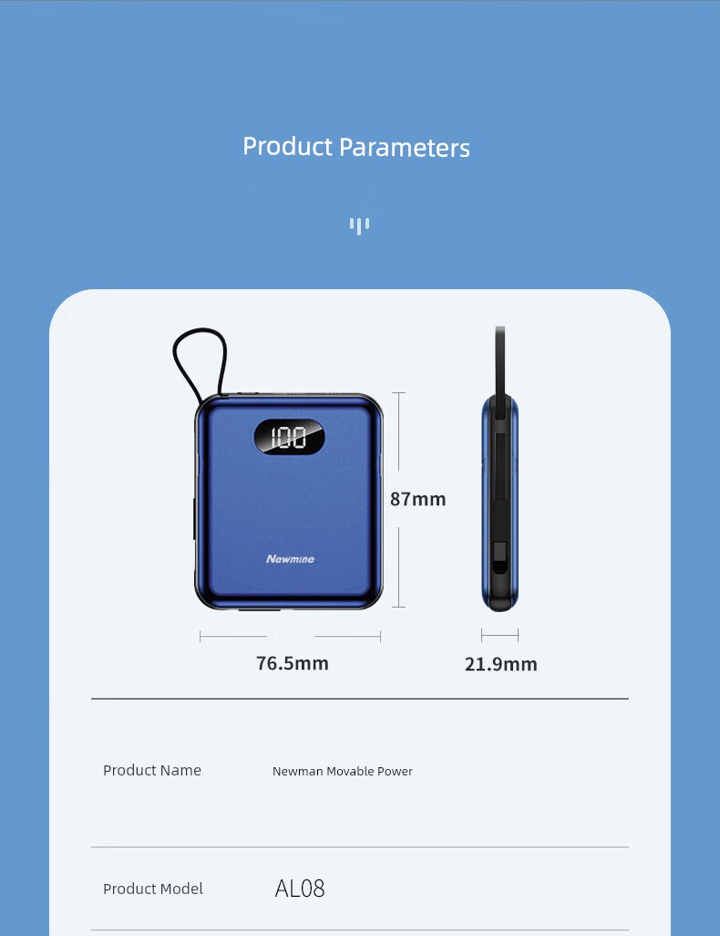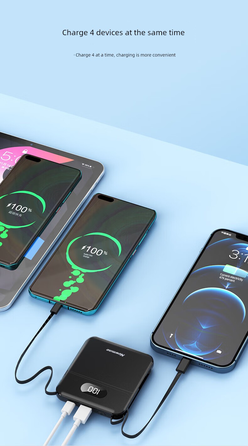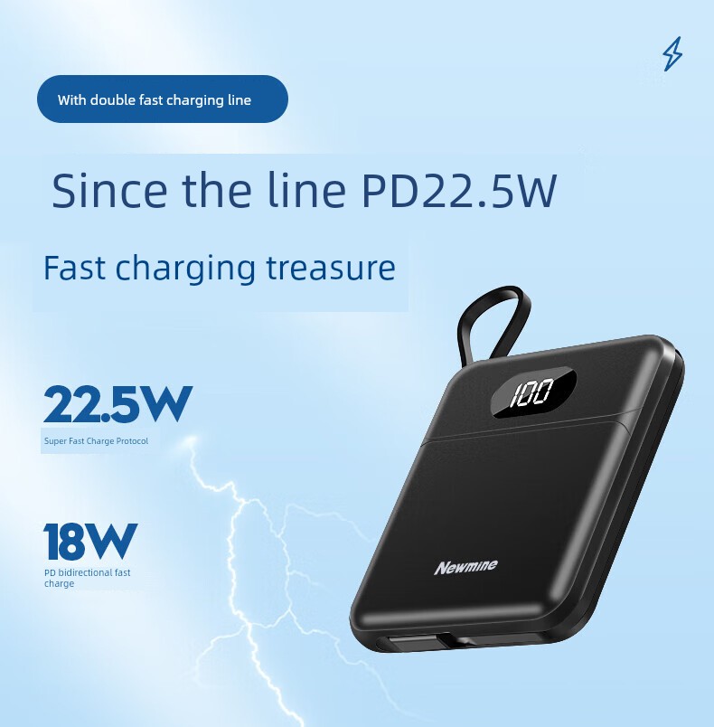 Newman Power Bank 10000 MA Hours with Cable 22.5W Fast Charge PD Large Capacity Compact Portable Power Source