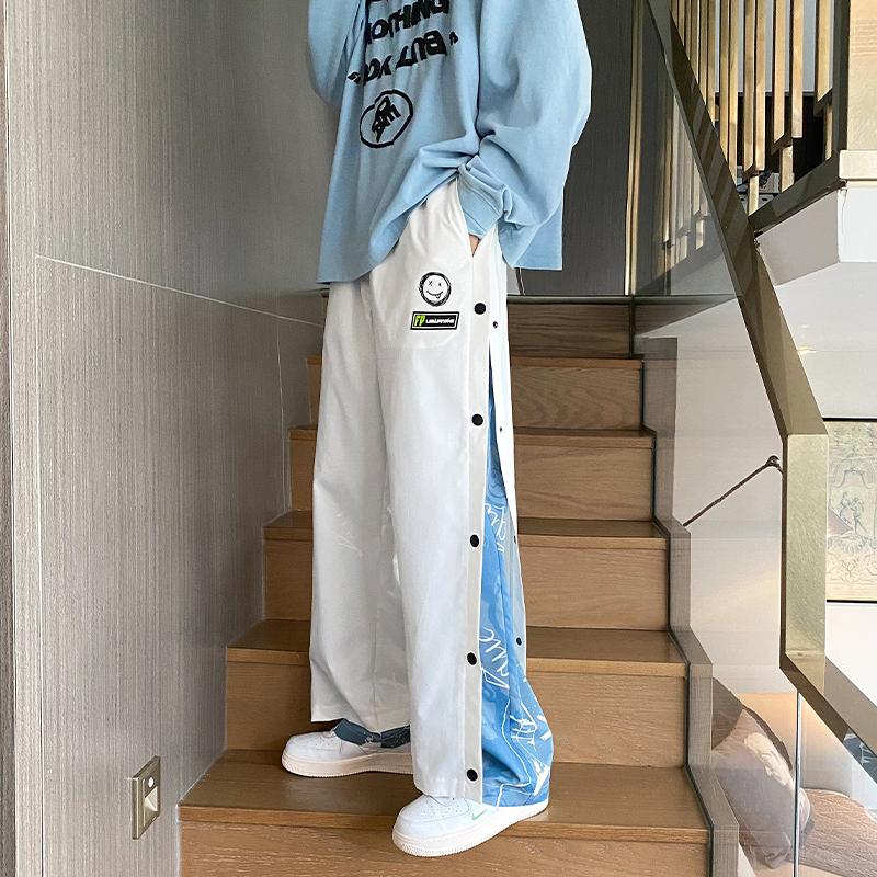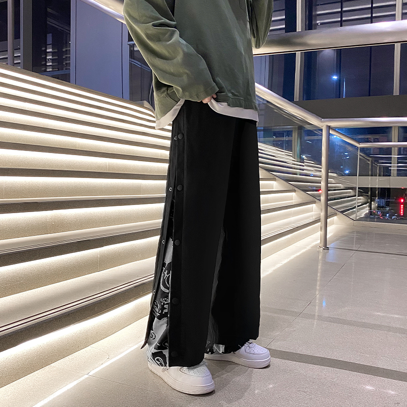 Niche Design Fake Two-Piece Breasted Casual Pants Women's Autumn High Street Vibe Loose Straight-leg All-Matching Wide Leg Pants