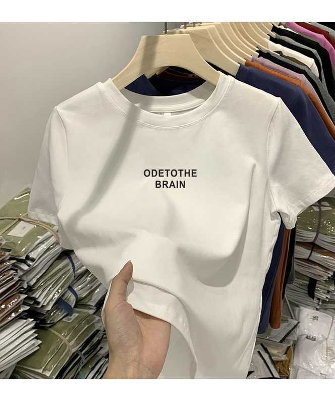 Niche Design Shoulder Brushed Short Sleeve White T-Shirt Female Loose plus Size Women's Clothing Plus Size Ladies 100% Cotton Coat Fall and Winter