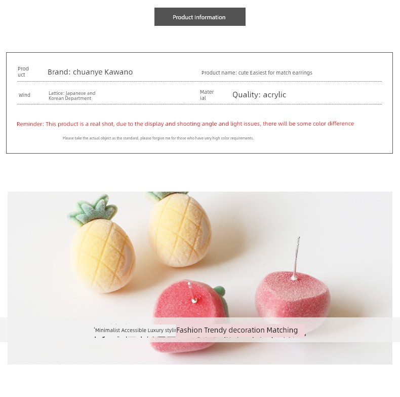 Niche Style Kawano Flocking Fruit Female Online Influencer Cute Earrings