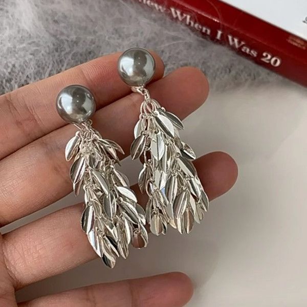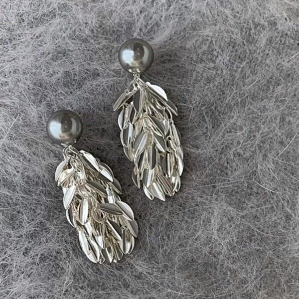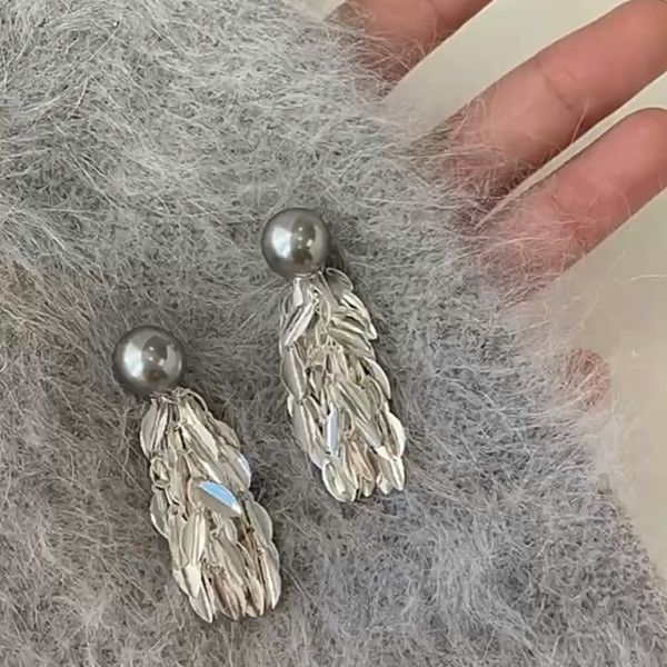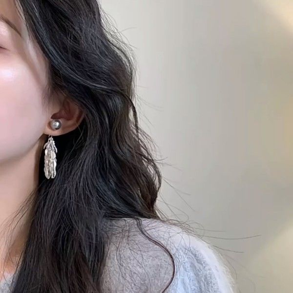 Niche Style Tassel Earrings One Style for Dual-Wear Mosquito Coil Pearl