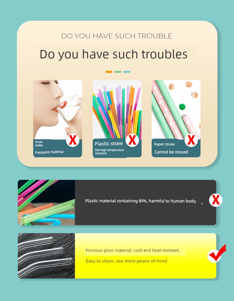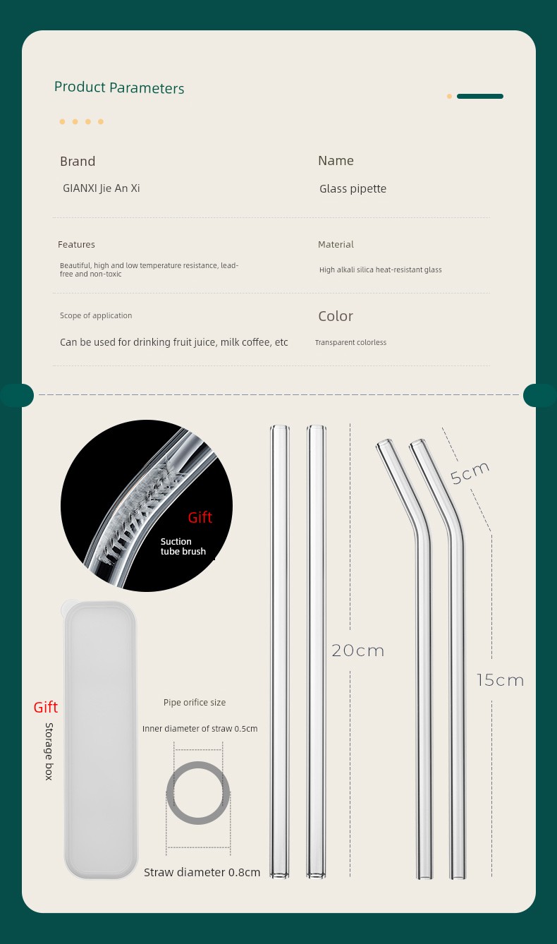 Non-Disposable Heat-Resistant Maternal Long Glass Straw