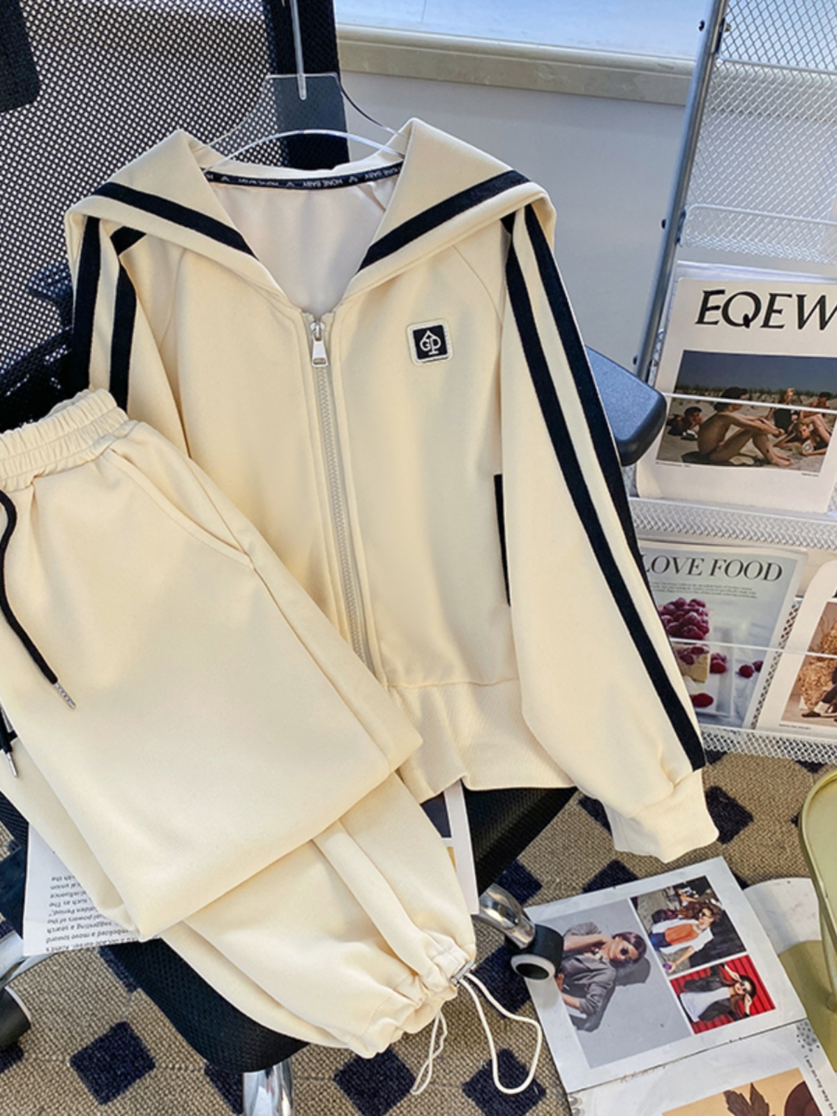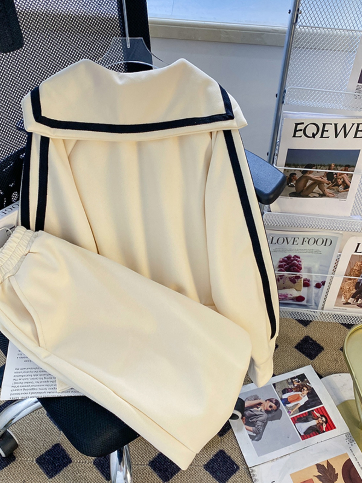 Oversize Fall and Winter New Arrival Sailor Collar Sweatshirt Women Niche Temperament Women Loose Slimming Sense of Design Two-piece Set