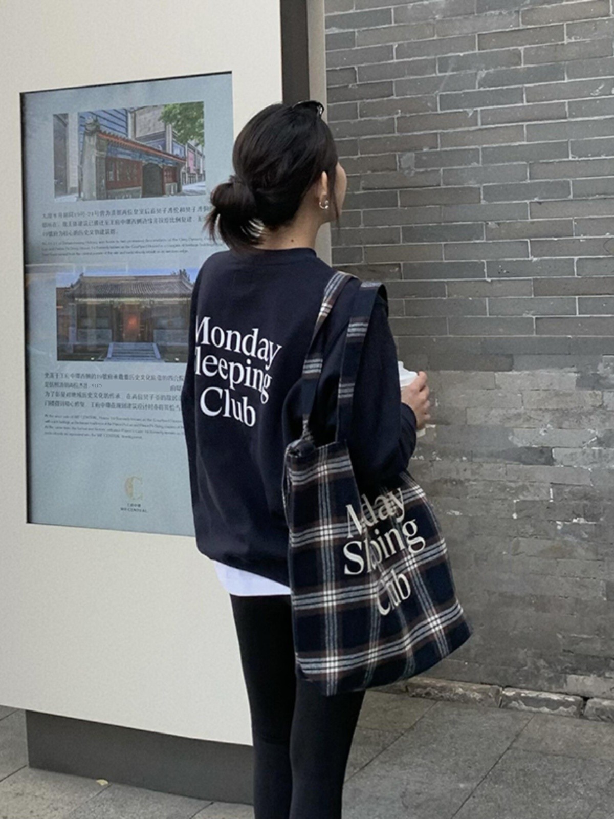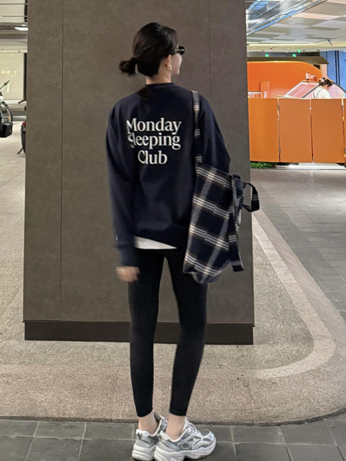 Oversize Letter Print round Neck Long Sleeve Top 2025 Fall New Arrival Best Selling Idle Style Hoodless Sweater Female