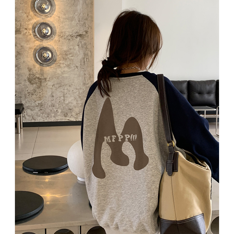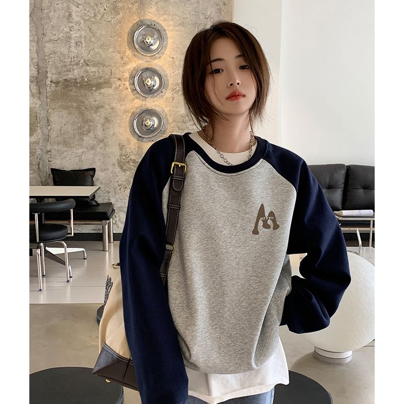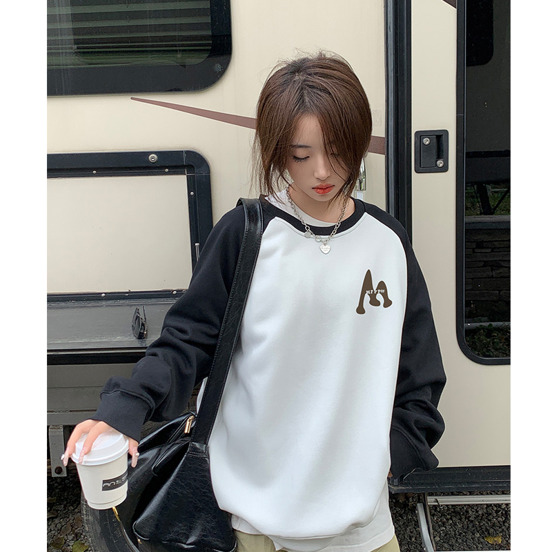 Patchwork Raglan Long Sleeves T-shirt Female Fall and Winter New Arrival Pure Cotton Plus Size Stylish Special-Interest Fashion Brand American Contrast Color Tops