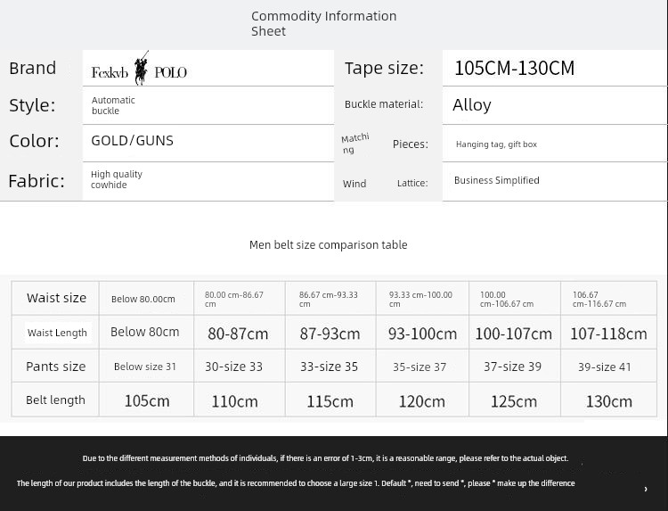 Paul Automatic Buckle High-End Inner Wear Toothless Men's Leather Belt