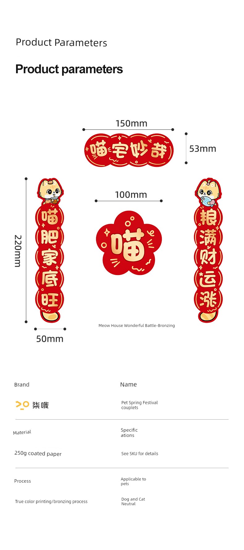 Pet Cat and Dog Mini Small Antithetical Couplet Cat Nest New Year Decoration Cat Festive New Year Couplet Fun Chinese New Year Small Gatepost Couplet