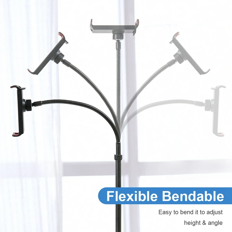 Sturdy & Durable: Made of ABS and metal material, the tripod floor phone holder is study yet durable, flexible to be bent any shape, safe to hold your phones and tablets.
