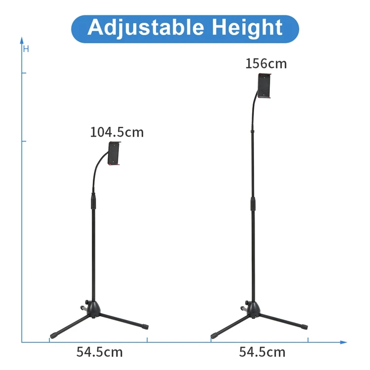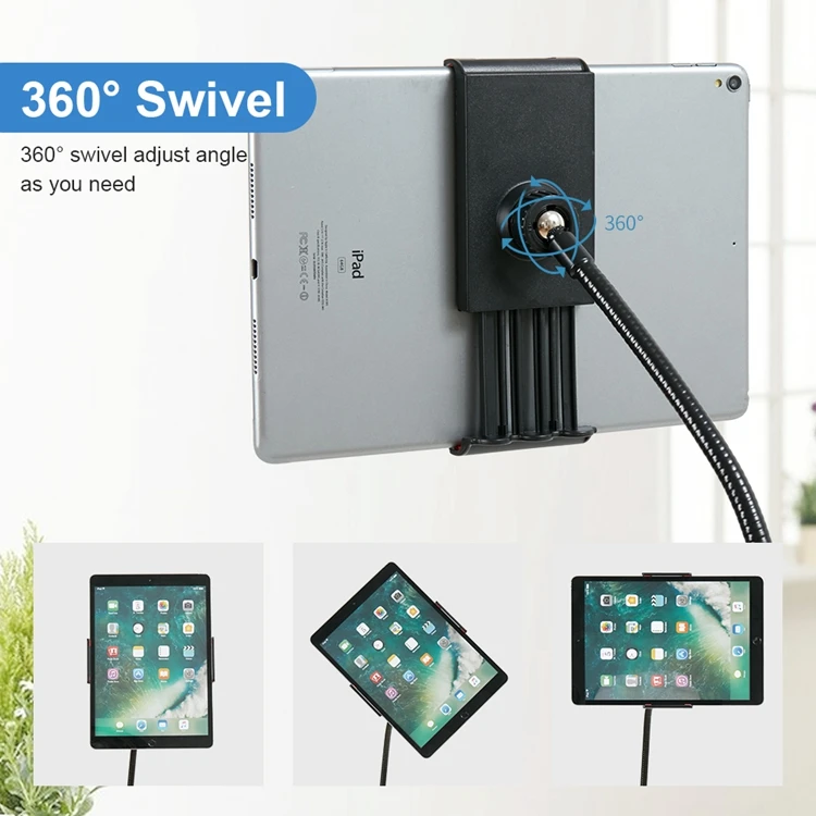 Flexible: This tablet floor stand features 360 degree rotation, enables you to rotate any orientation to suit your personal needs. Flexible long arm and hose allow to adjust the height freely. The maximum height can be reached to 170cm.