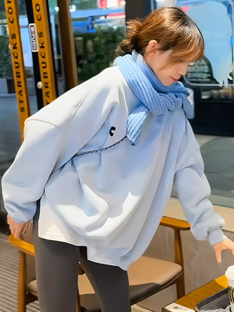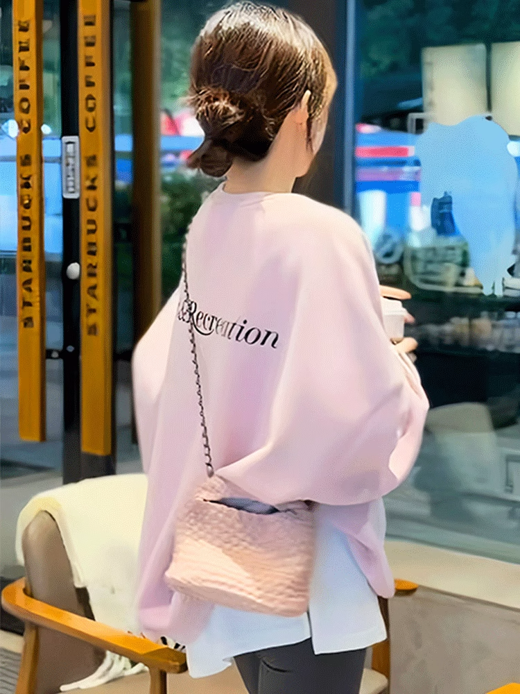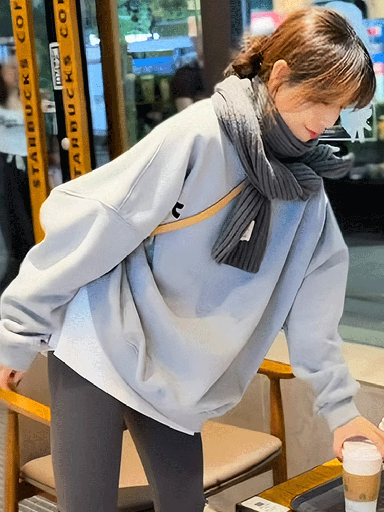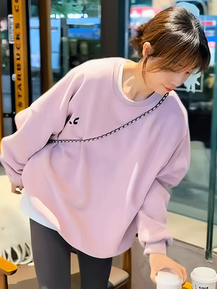 Pink Capless round Neck Padded Fleece Sweater Female Spring & Fall 2025 New Arrival Best Selling Fashionable Stylish Lazy Style Top