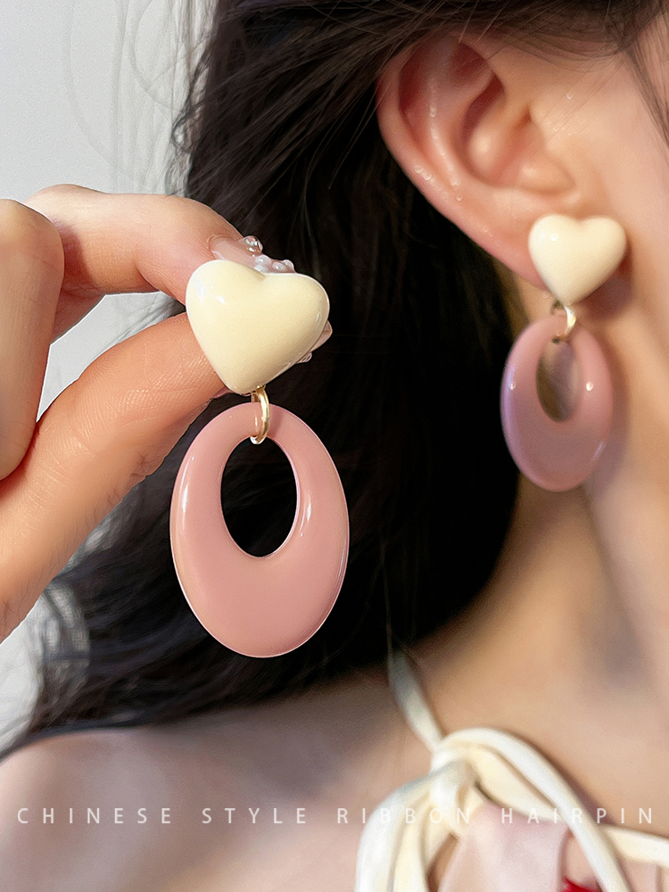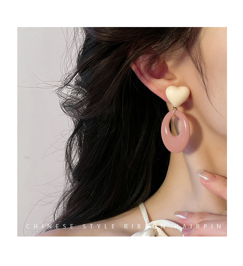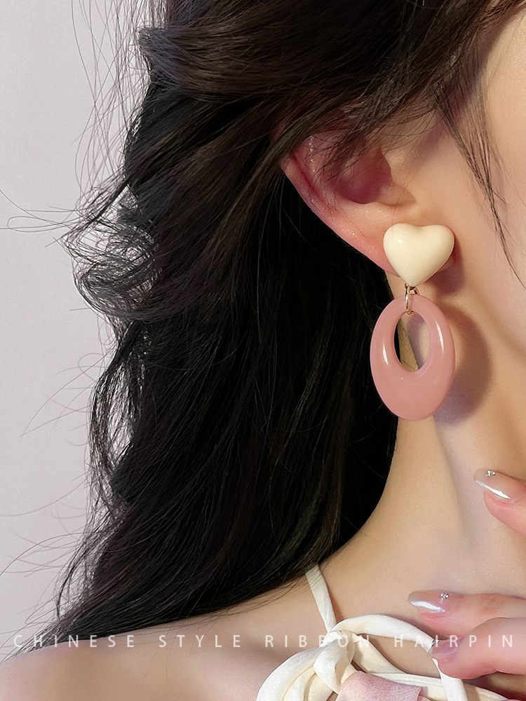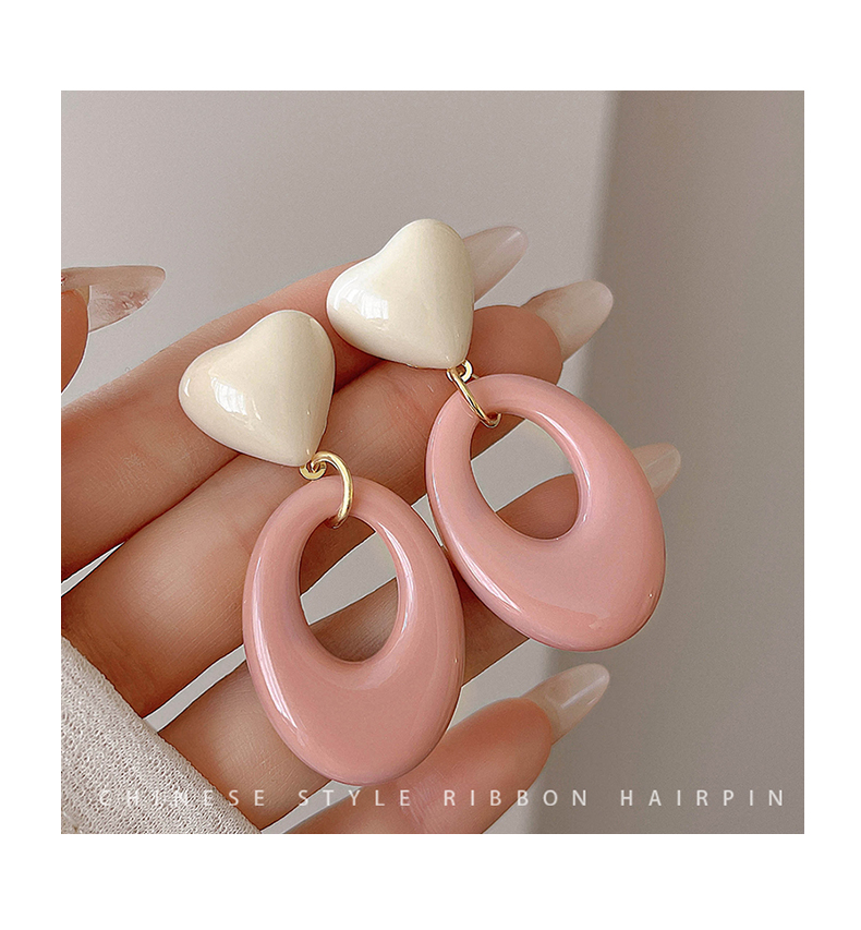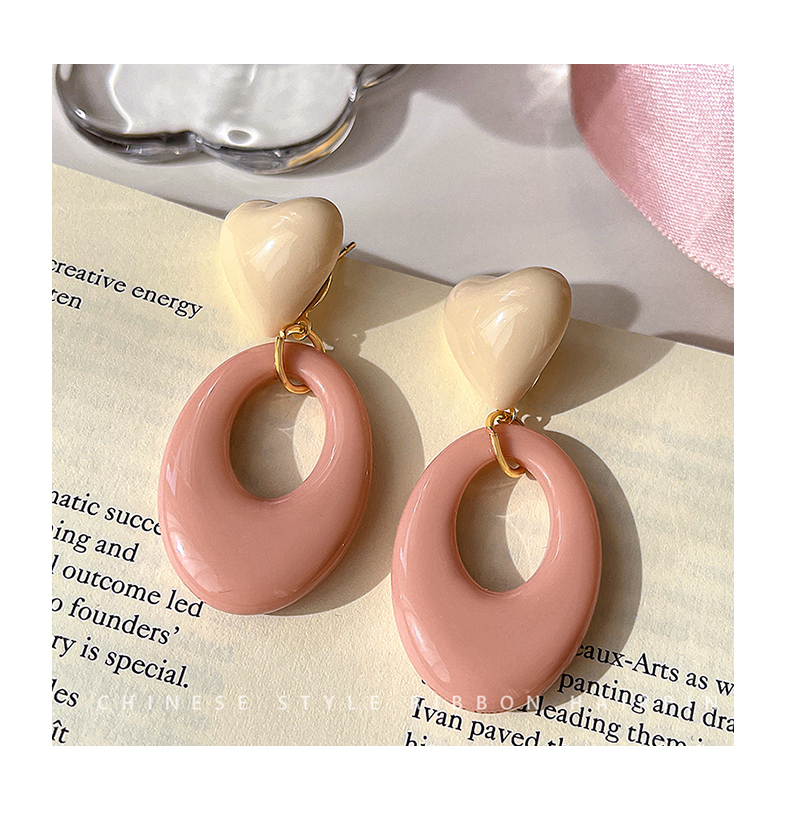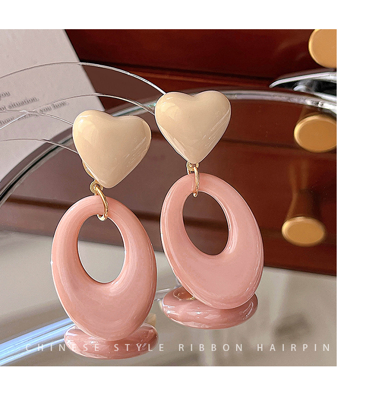 Pink Resin Love Heart Earrings Fashion All-Match Sweet Earrings Graceful Geometric Eardrops Fancy New Earrings