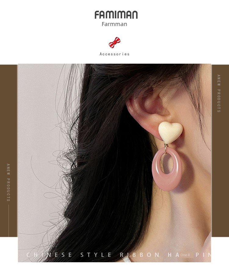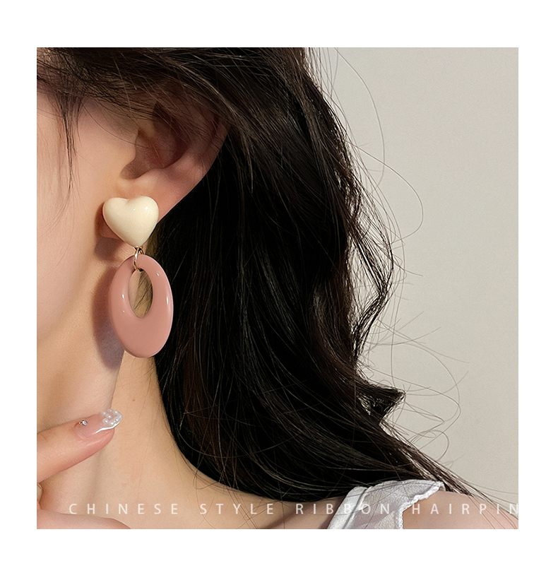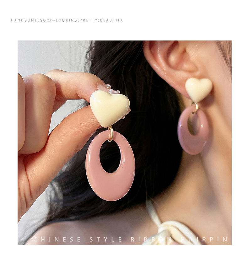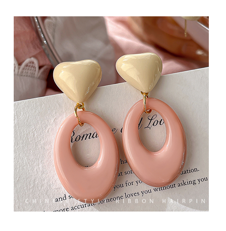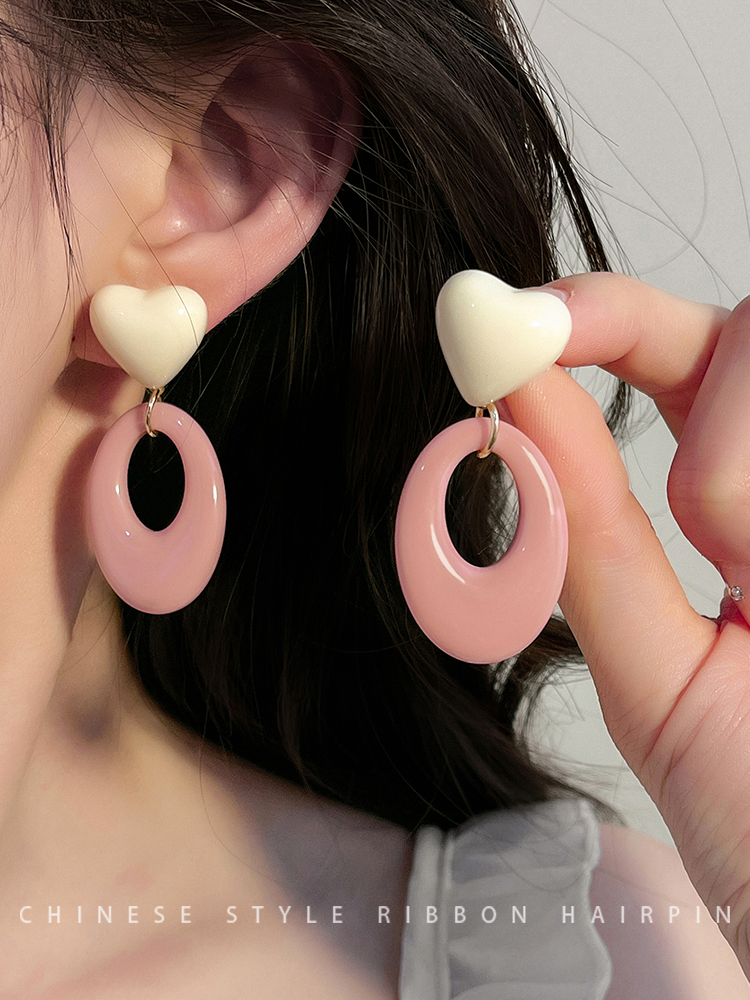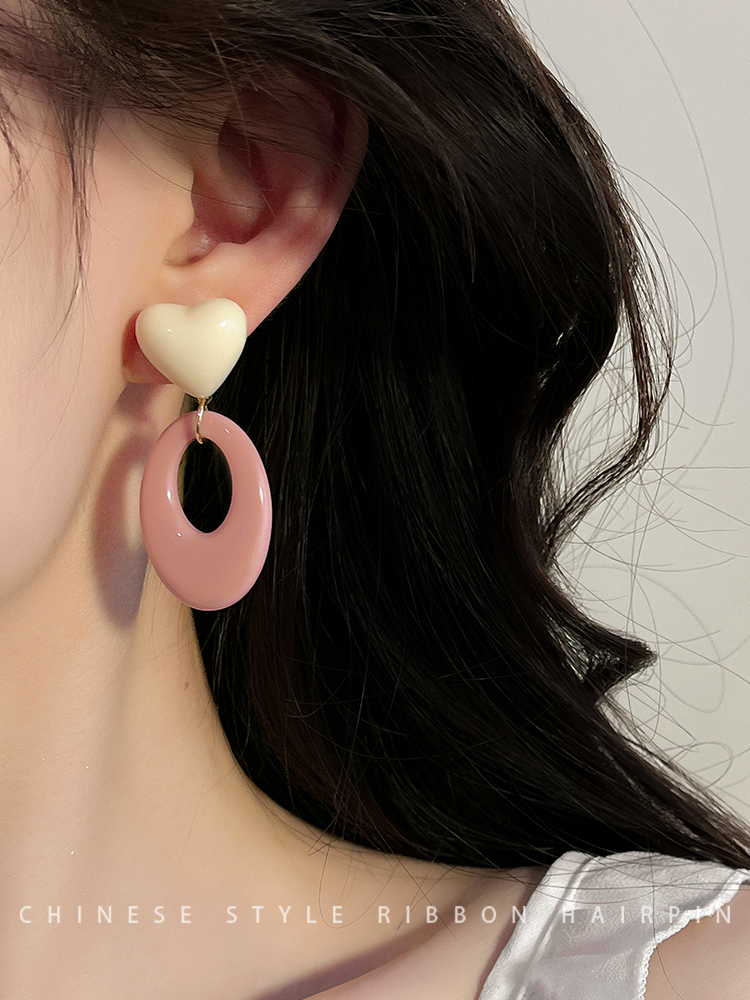 Pink Resin Love Heart Earrings Fashion All-Match Sweet Earrings Graceful Geometric Eardrops Fancy New Earrings