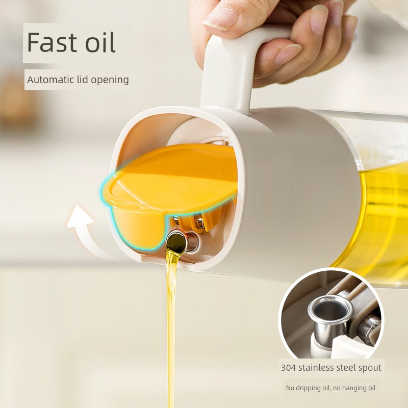 Pinqi Design Automatic Opening and Closing Oiler Leak-Proof Glass Oiler Kitchen For Home Non-Oil-Stick Soy Sauce and Vinegar Seasoning