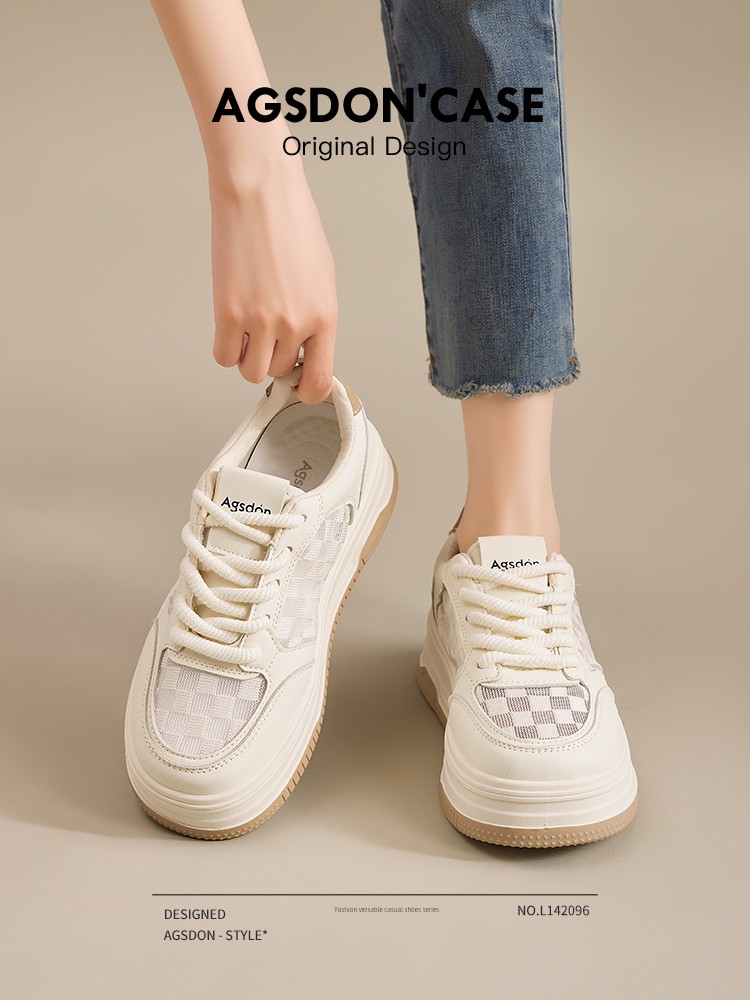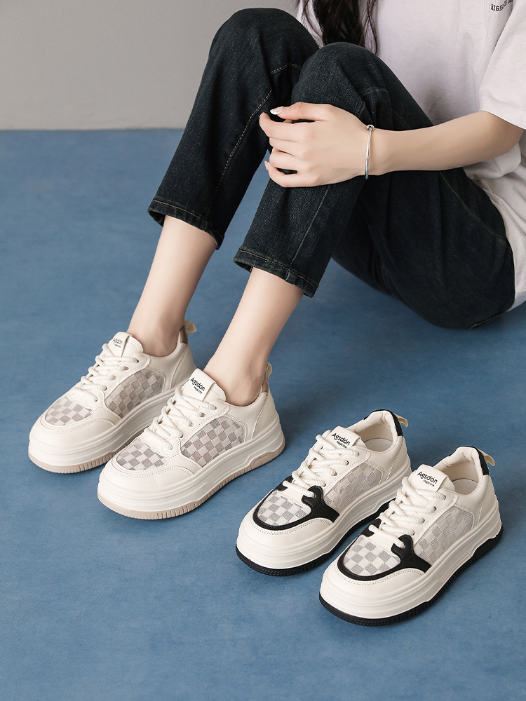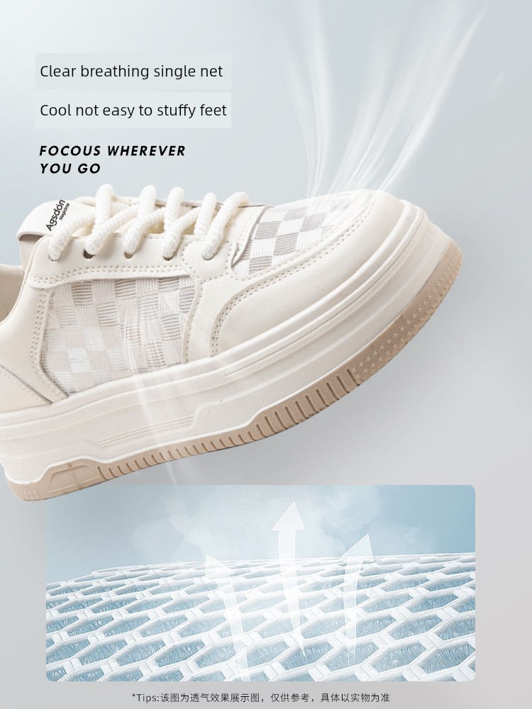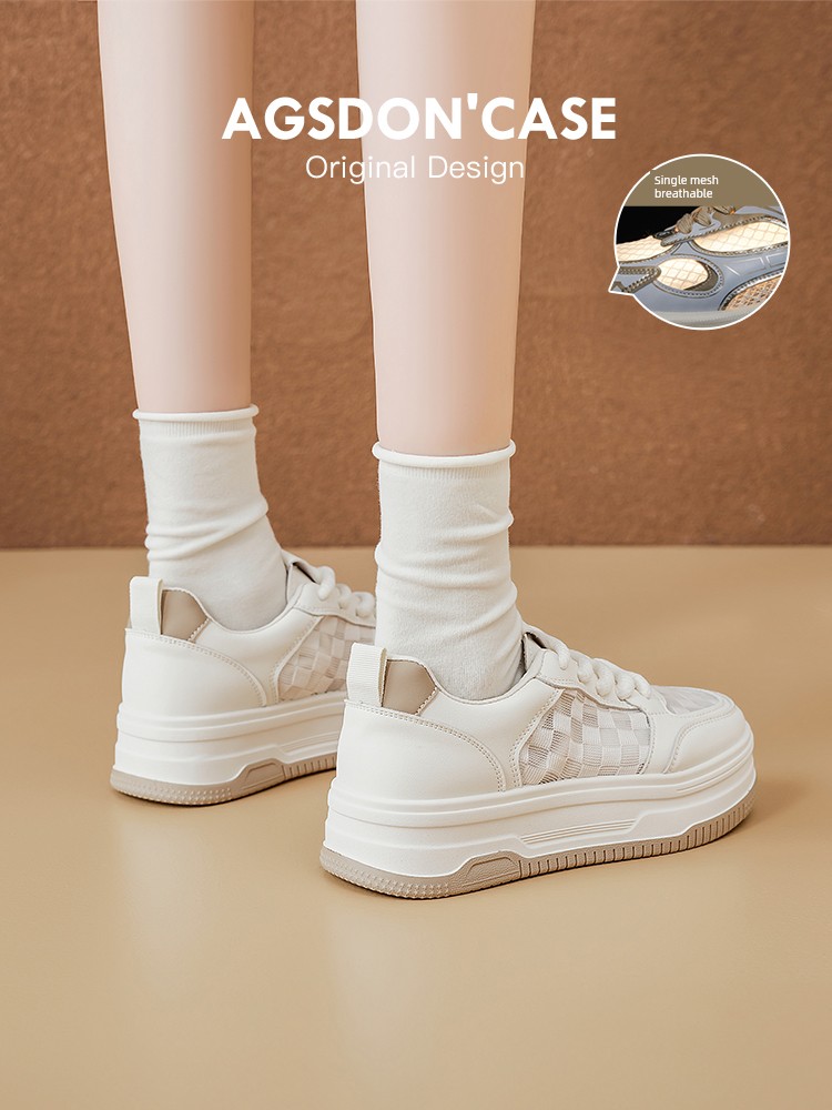 Platform Mesh Surface Increased Casual Thin Low Ankle White Shoes