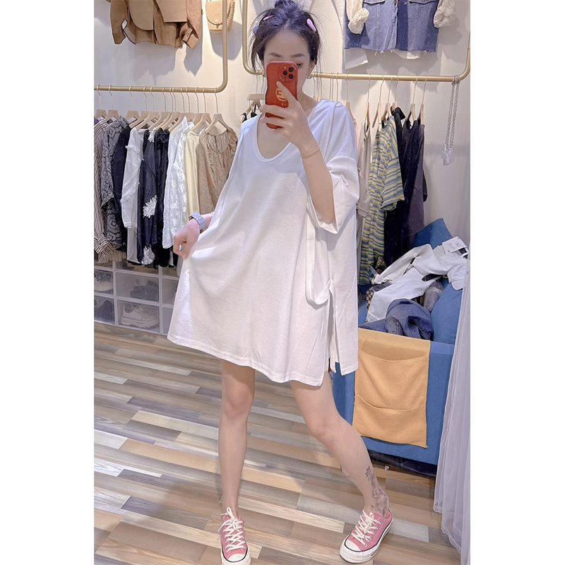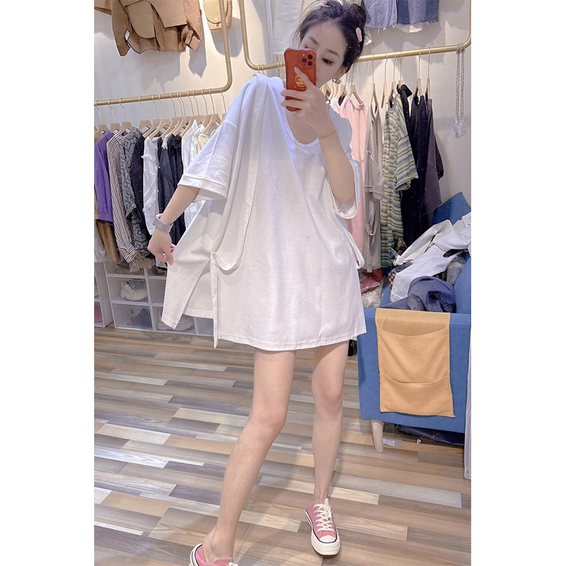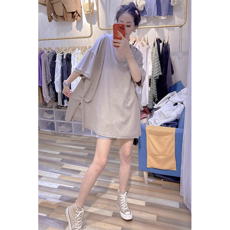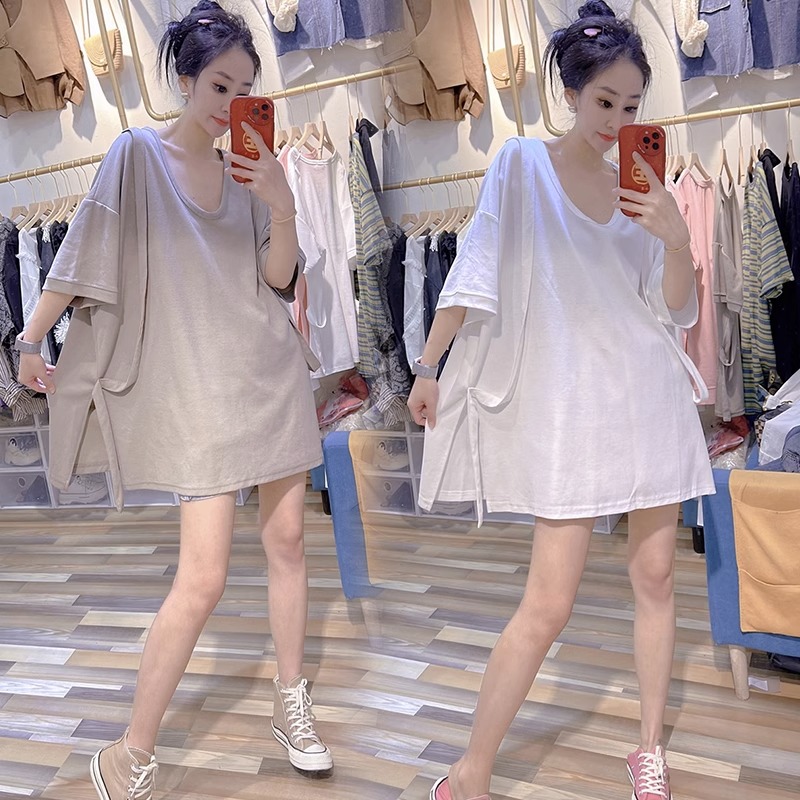 Plus Size 2-300 Split Strap Stylish Shoulder Short Sleeve T-Shirt Women's Plus Size Ladies Loose Chic Half Sleeve Slim Looking Tops