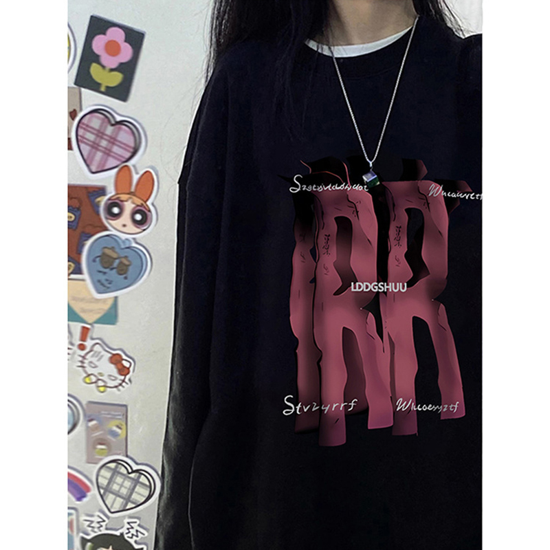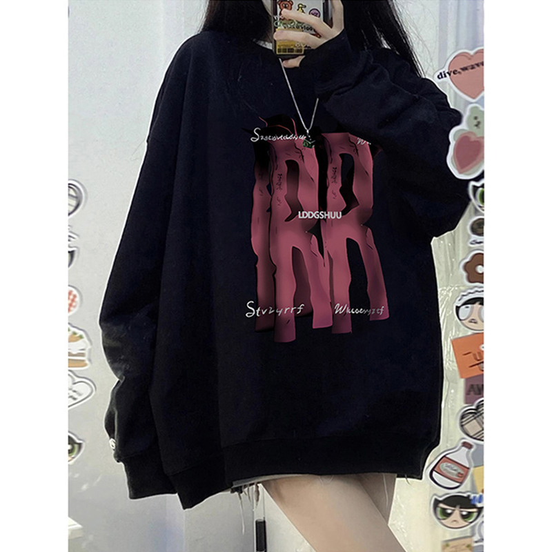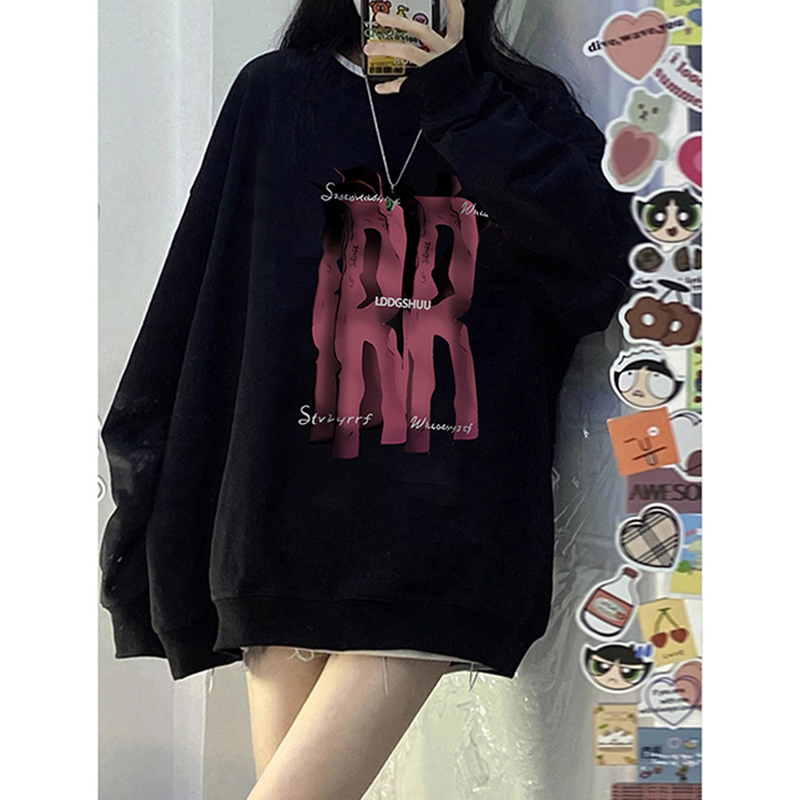 Plus Size American Retro Niche Style Sweatshirt Women's 2024 Autumn and Winter Thin Fleece-lined Oversize Loose Tops Trendy