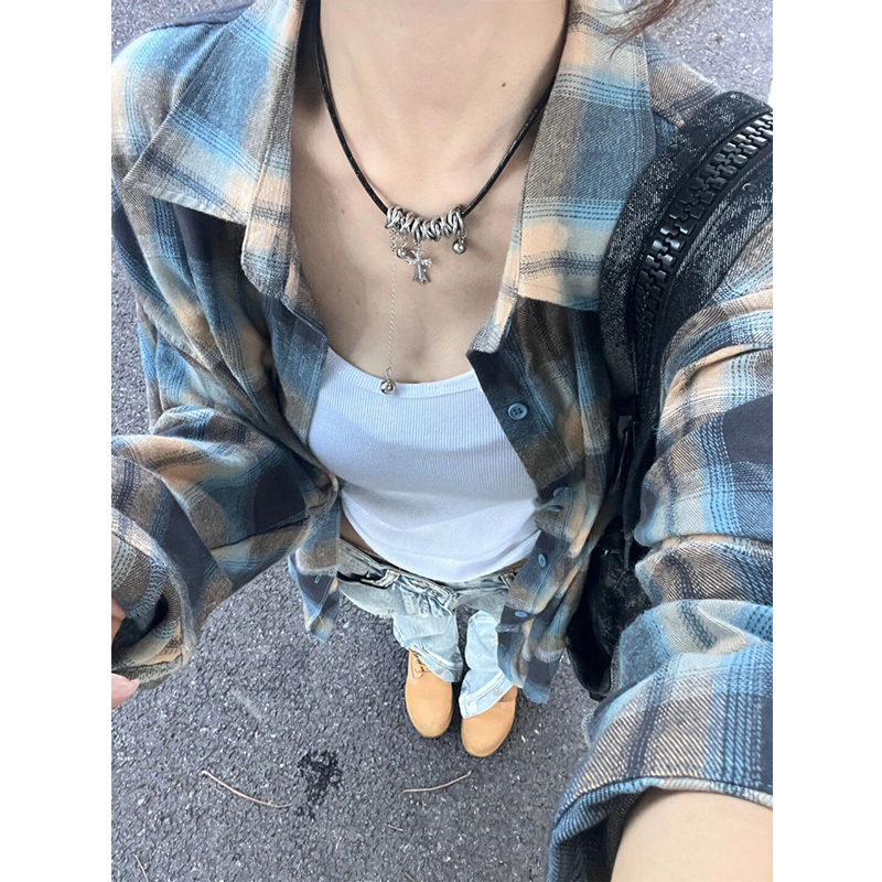Plus Size American Retro Plaid Shirt Men's and Women's Same Spring & Fall Long Sleeves Shirt Thin Loose Versatile Casual Top